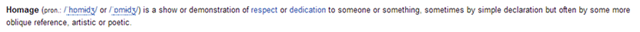 Homage is the perfect term for the tribute band scene.  Here’s the definition for the die-hard Metallica fans (just kidding!):