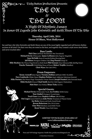 50 years ago today, The Who had a gig. 20 years ago this week, the House of Blues on Sunset opened its doors. Tonight, at the House of Blues, Brian Tichy created a marvelous show that paid tribute to Keith Moon and John Entwistle – the powerhouse rhythm section of The Who. Like any Tichy show, this was a lot of great music to digest at once. It was another historic event of great jamming by some top musicians.