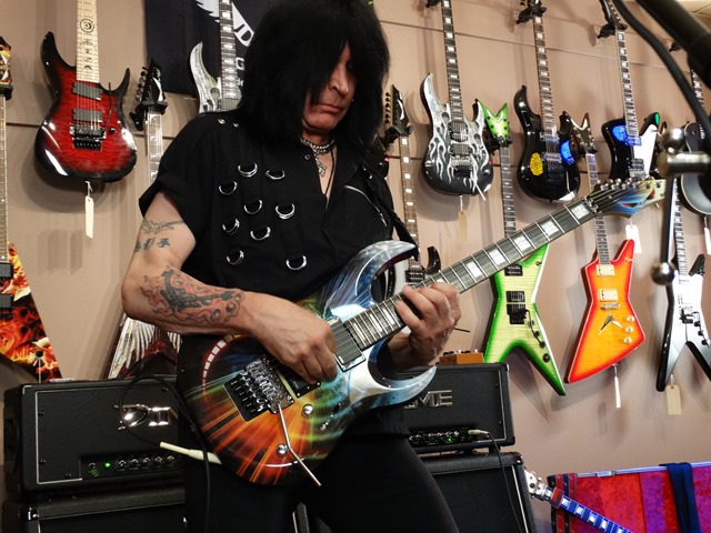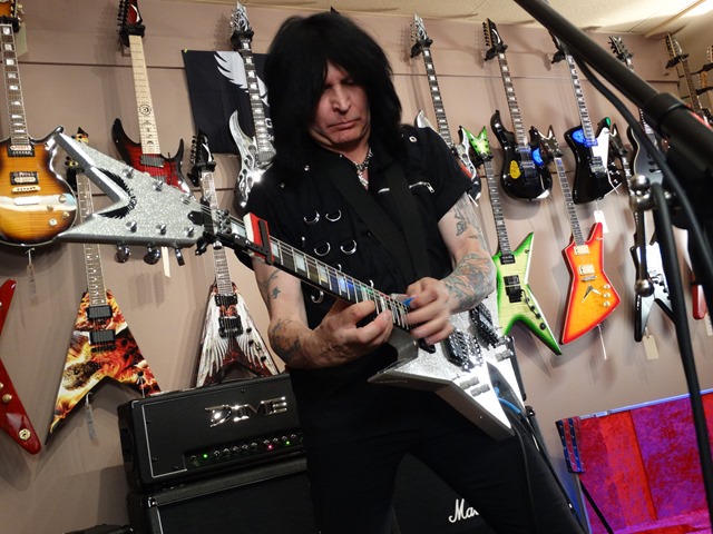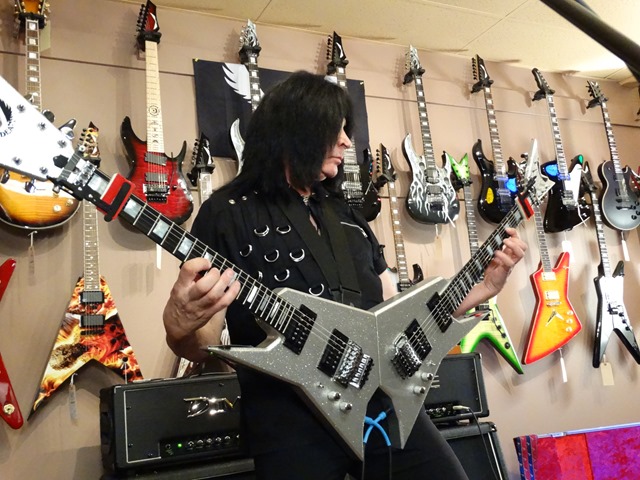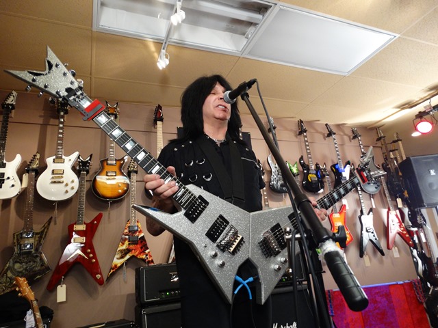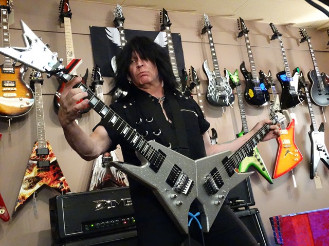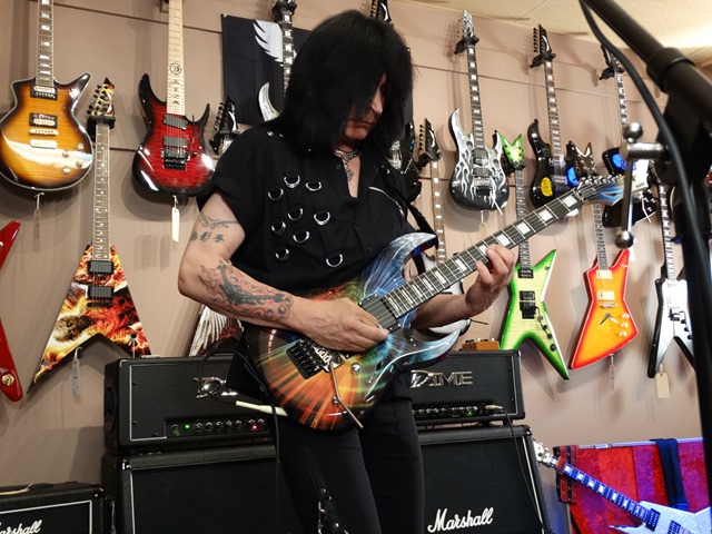 MAB’s total mastery of the guitar was again on full display this evening. He gave his first clinic at GoDPS last year and vowed not to repeat the same songs. He shredded, told stories, answered questions and played some more. He kept grabbing stock guitars off the wall and played them through a DIME head that was given to a lucky kid at the end of the performance. Here’s the Dean flagship MAB 1 (aptly named the Speed of Light Guitar). He started by playing a condensed version “8 Pillars of Steel” from the Intermezzo album (sans the bass solo recorded by Elliott Dean Rubinson – who happens to be CEO of Dean Guitars).