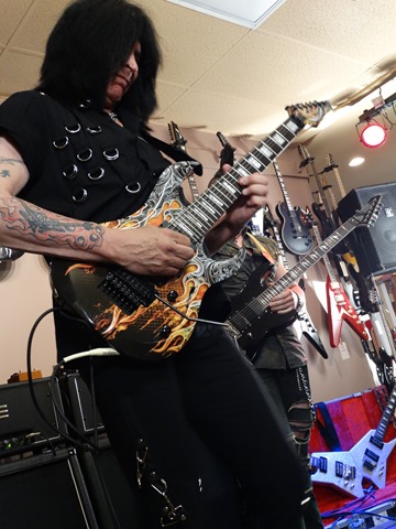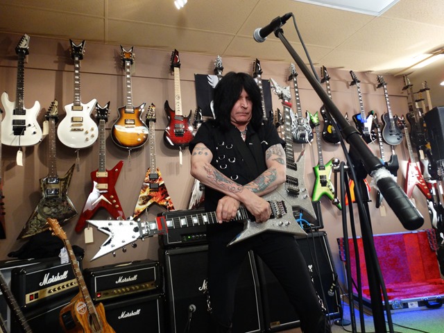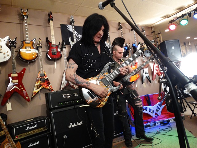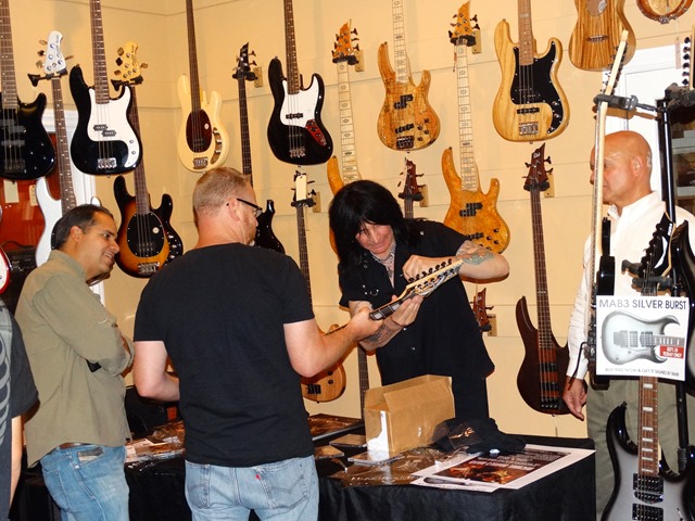 Towards the end of the show, MAB grabbed a seven string (the MAB 7 Warrior– this guitar has a low “B” instead of his old school high “A”) and was joined by Maxxxwell Carlisle of Hellion (who also appeared on MAB’s Hands “Without Shadows II – Voices” and his Intermezzo album, along with fellow shredders George Lynch, Rusty Cooley, Jeff Loomis, Guthrie Govan, Joe Stump and several other guitar heroes) for a ripping version of “Nuclear Blues”, where they rocked out to a metal/blues-type jam. It was a great way to end the clinic and obviously a very impressive evening of guitar.