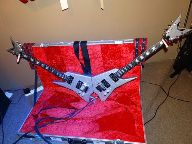 He also busted out his sparkly Double Guitar (a special double neck he invented with a 110 degree angle between necks for ergonomic playing) and he rocked it left handed, right handed, over/ under and upside down. He explained that it’s two guitars that are connected in the back with a latch.