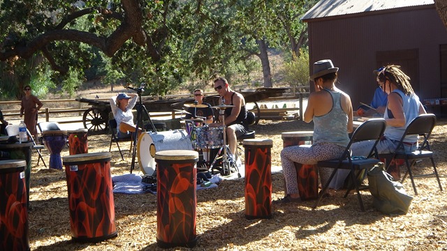 Starting with a Yoga-type warm up and some stretching, and chair massages, participants really got into the jam. The therapeutic value of a good massage and joining in a happy drum circle is quite the feel good experience.