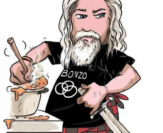 Why is he called His “ROCKIN’” Highness? For the last three decades when he wasn’t in the kitchen creating fabulous dishes for dignitaries, nobility and rock stars such as Charlie Watts of The Rolling Stones, you could find him rockin’ on stage as a freelance guitar tech/stage manager or in the audience as an avid fan. He’s been part of literally hundreds of shows at many legendary venues including The Marquee, The Hammersmith Odeon, The O2 Arena and The Astoria in London. Of the innumerable shows he’s worked on, of note is his work for Smallwood Taylor Enterprises, now known as Sanctuary Group (The Who, Iron Maiden, Guns ‘N’ Roses and Beyonce) as well as Rammstein’s first appearance in the UK. Most recently he was called in as crew on Bonzo Bash & Randy Rhoads Remembered.