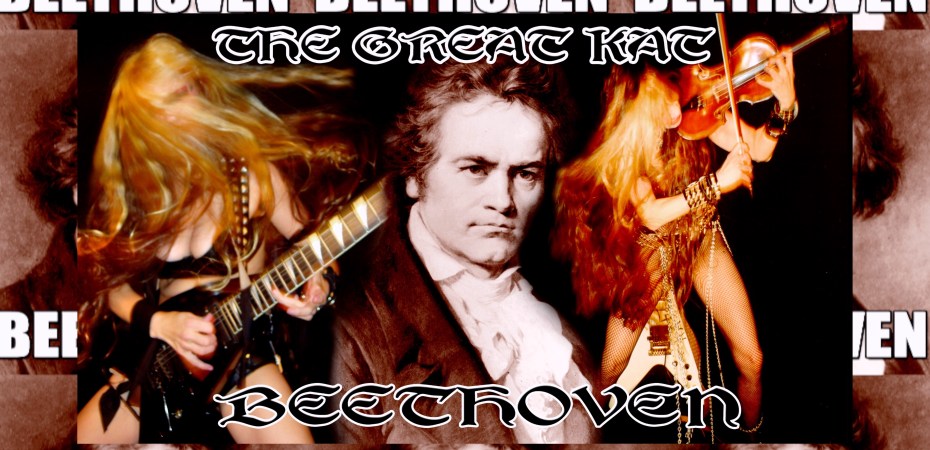 Legendary Guitar/Violin Shredder, The Great Kat is the world-famous Juilliard graduate Classical Violin Virtuoso/Carnegie Recital Hall Violin Soloist/Winner of “Artists International Competition”, “TOP 10 FASTEST SHREDDERS OF ALL TIME” (Guitar One Magazine)/ “FAMOUS JUILLIARD SCHOOL ALUMNI” (Ranker)/“50 SENSATIONAL FEMALE GUITARISTS” (Guitar Player Magazine)/Reincarnation of Beethoven and the ONLY Guitar-Violin Double Virtuoso since Niccolo Paganini, UPDATING Classical Music for the future with virtuosity, speed, power and outrageous persona. The New York Times declared: “The wave of the future might well be heavy-metal Beethoven by way of Juilliard. Ms. Kat’s ‘Beethoven on Speed’ album elevates furiousness to a would-be world view.”