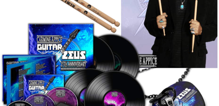 Deko Entertainment has teamed up with Goldmine Magazine to create a one of a kind Guitar Zeus 25th Anniversary Limited Edition bundle that includes not only the Box Set but a special Guitar Zeus necklace, Autographed picture from Carmine and a pair of his signature drum sticks. This is limited to only 100 so head over to the Goldmine Magazine store and check it out.