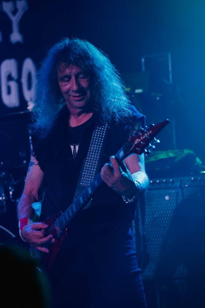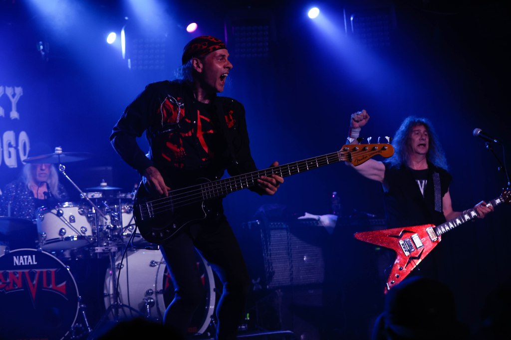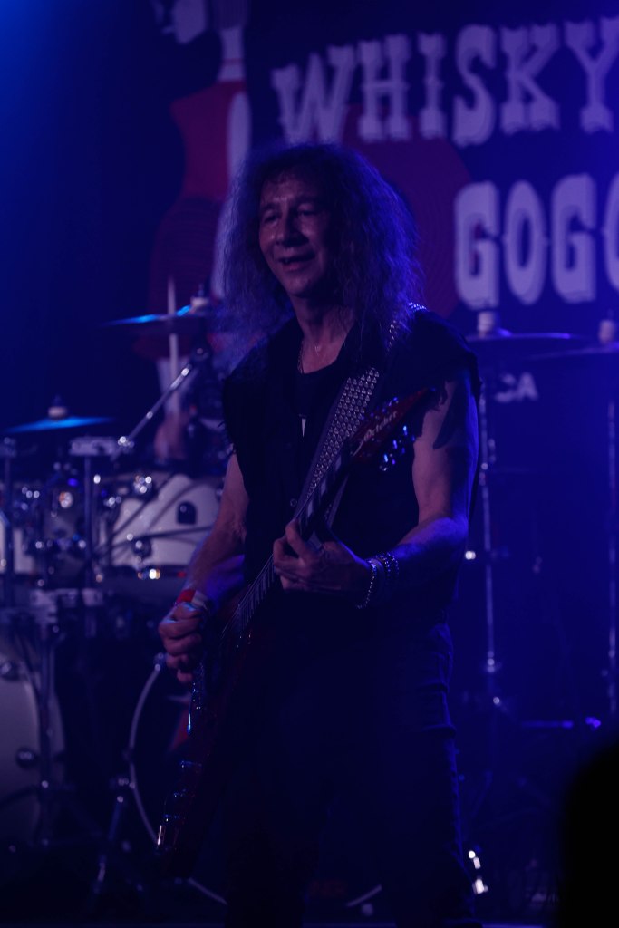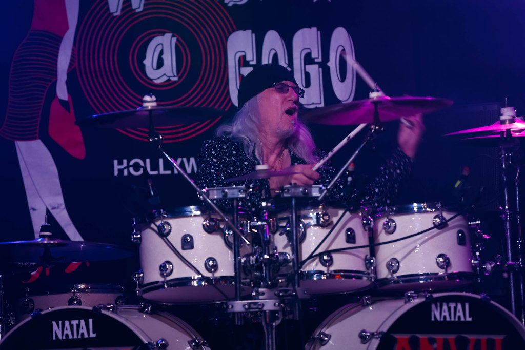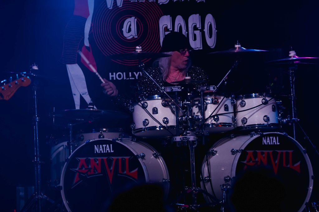 Anvil played the Whisky a Go Go or as I’d like to call them the Mighty Anvil. Anvil formed in Toronto, Canada in 1978 by guitarist/singer Steve ‘Lips’ Kudlow and drummer Robb Reiner. Their current bassist Chris Robertson has been a member since 2014. In the 80’s they were a key part of Heavy Metal. Anvil influenced all bands that make up the Big 4 (Metallica, Slayer, Anthrax, Megadeth) but when the 80’s ended, Anvil continued to tour and make albums but became less known. Finally in 2008 when the documentary on the band Anvil! The Story of Anvil revived the band’s career and brought their music to a new generation of metalheads. The documentary won several awards at various film festivals. A year after the release of the documentary Anvil made their first TV appearance with a performance on The Tonight Show while Conan was host. Anvil were also guests on That Metal Show in 2009. In 2010 Anvil toured across the U.K. and Europe selling out many shows and made a few major festival appearances like Download and Hellfest. Last month Anvil released their 20th studio album Impact is Imminent. Anvil has been called the real life Spinal Tap. I’d also like to think of them a bit as the original Steel Panther with all the humor and certain song titles. Anvil was a 4-piece band until 2007 and has been a trio since then.