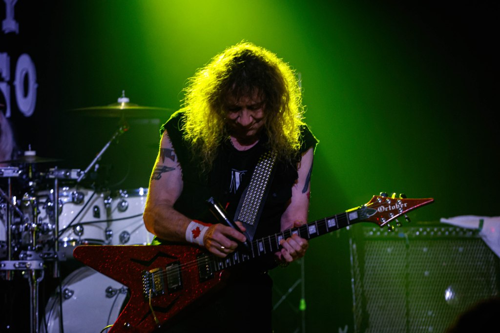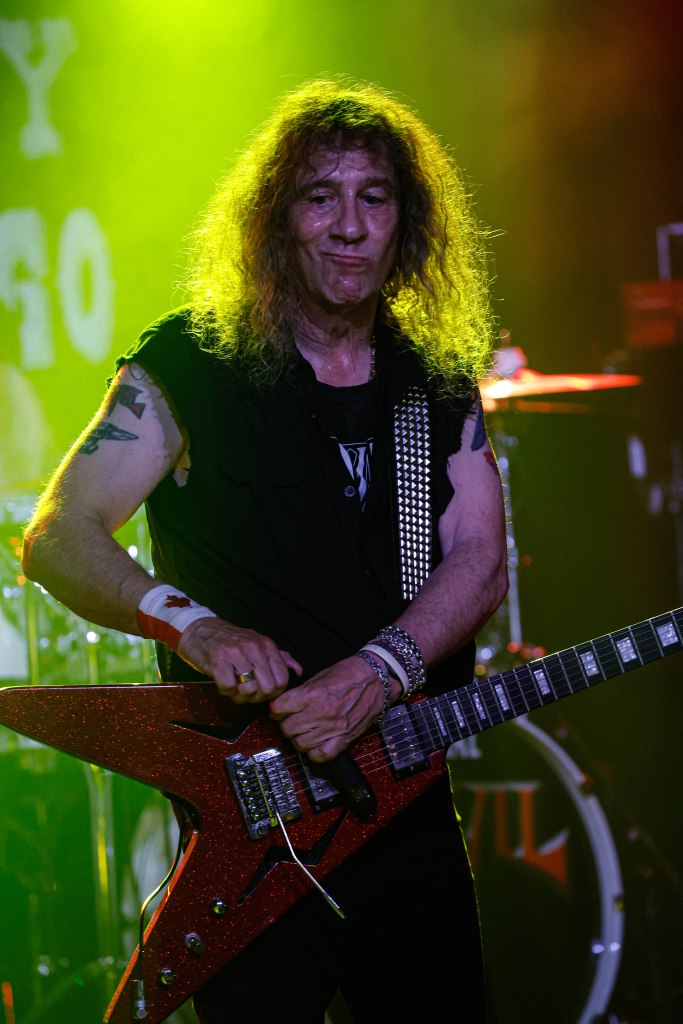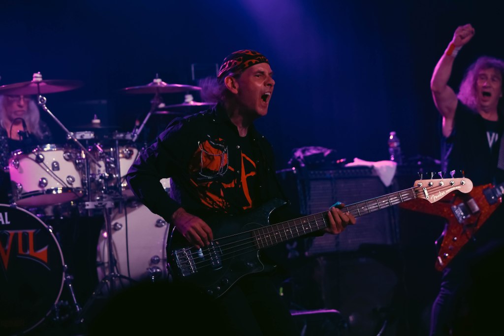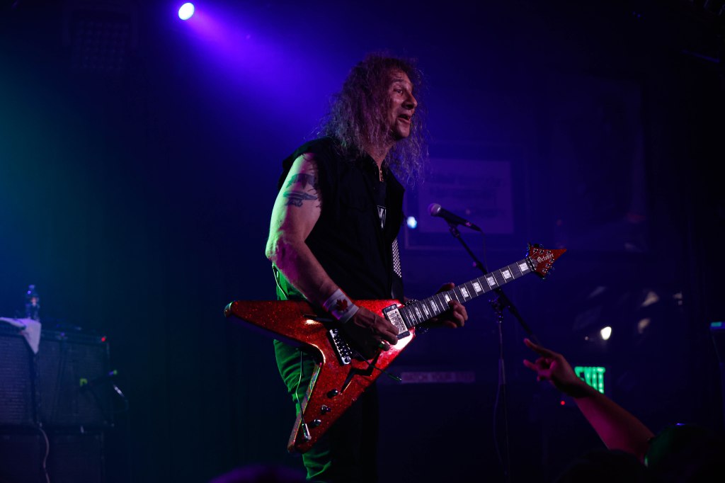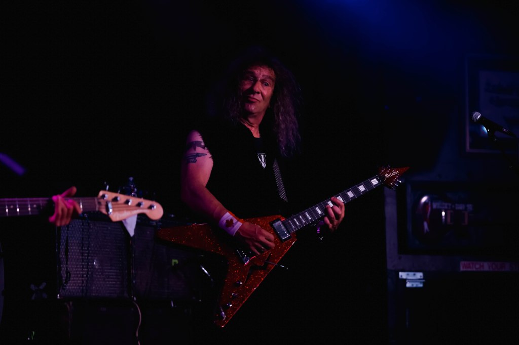 Anvil played the Whisky a Go Go or as I’d like to call them the Mighty Anvil. Anvil formed in Toronto, Canada in 1978 by guitarist/singer Steve ‘Lips’ Kudlow and drummer Robb Reiner. Their current bassist Chris Robertson has been a member since 2014. In the 80’s they were a key part of Heavy Metal. Anvil influenced all bands that make up the Big 4 (Metallica, Slayer, Anthrax, Megadeth) but when the 80’s ended, Anvil continued to tour and make albums but became less known. Finally in 2008 when the documentary on the band Anvil! The Story of Anvil revived the band’s career and brought their music to a new generation of metalheads. The documentary won several awards at various film festivals. A year after the release of the documentary Anvil made their first TV appearance with a performance on The Tonight Show while Conan was host. Anvil were also guests on That Metal Show in 2009. In 2010 Anvil toured across the U.K. and Europe selling out many shows and made a few major festival appearances like Download and Hellfest. Last month Anvil released their 20th studio album Impact is Imminent. Anvil has been called the real life Spinal Tap. I’d also like to think of them a bit as the original Steel Panther with all the humor and certain song titles. Anvil was a 4-piece band until 2007 and has been a trio since then.
