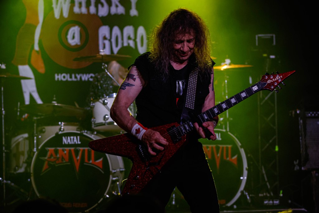Anvil is just an incredible band to see and they even started a mosh pit at the Whisky, something you don’t see too often these days. A few songs performed were “This Is Thirteen,” “Mothra,” “B*tch in the Box,” and of course “Metal on Metal” which I remember from the documentary trailer years ago. Lips even did a vibrator solo, something I’ve never seen any guitarist do and it was also used as a guitar slide. Next year will mark 50 years of Kudlow and Reiner making music together. Anvil has tour dates through July 31st in the U.S.