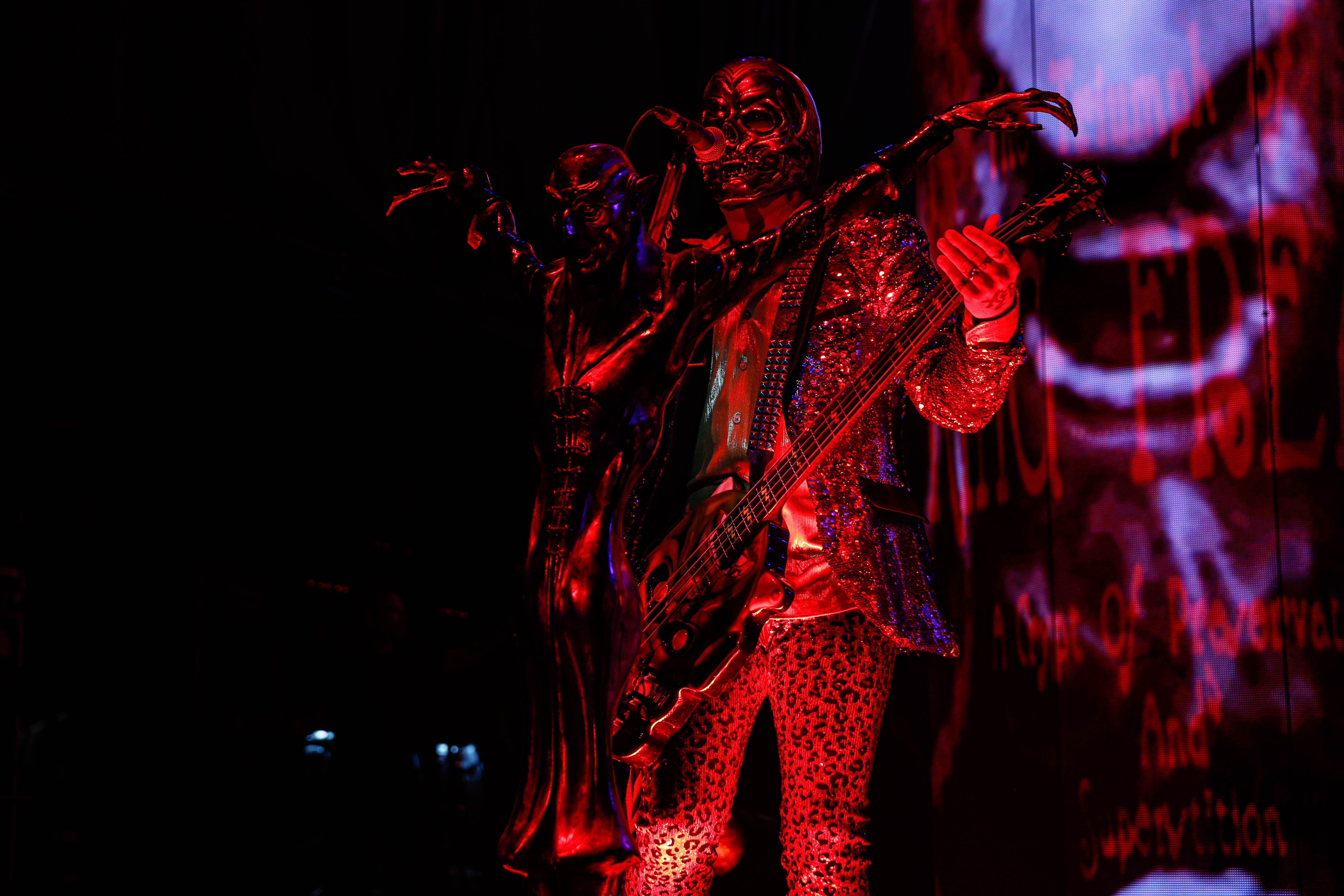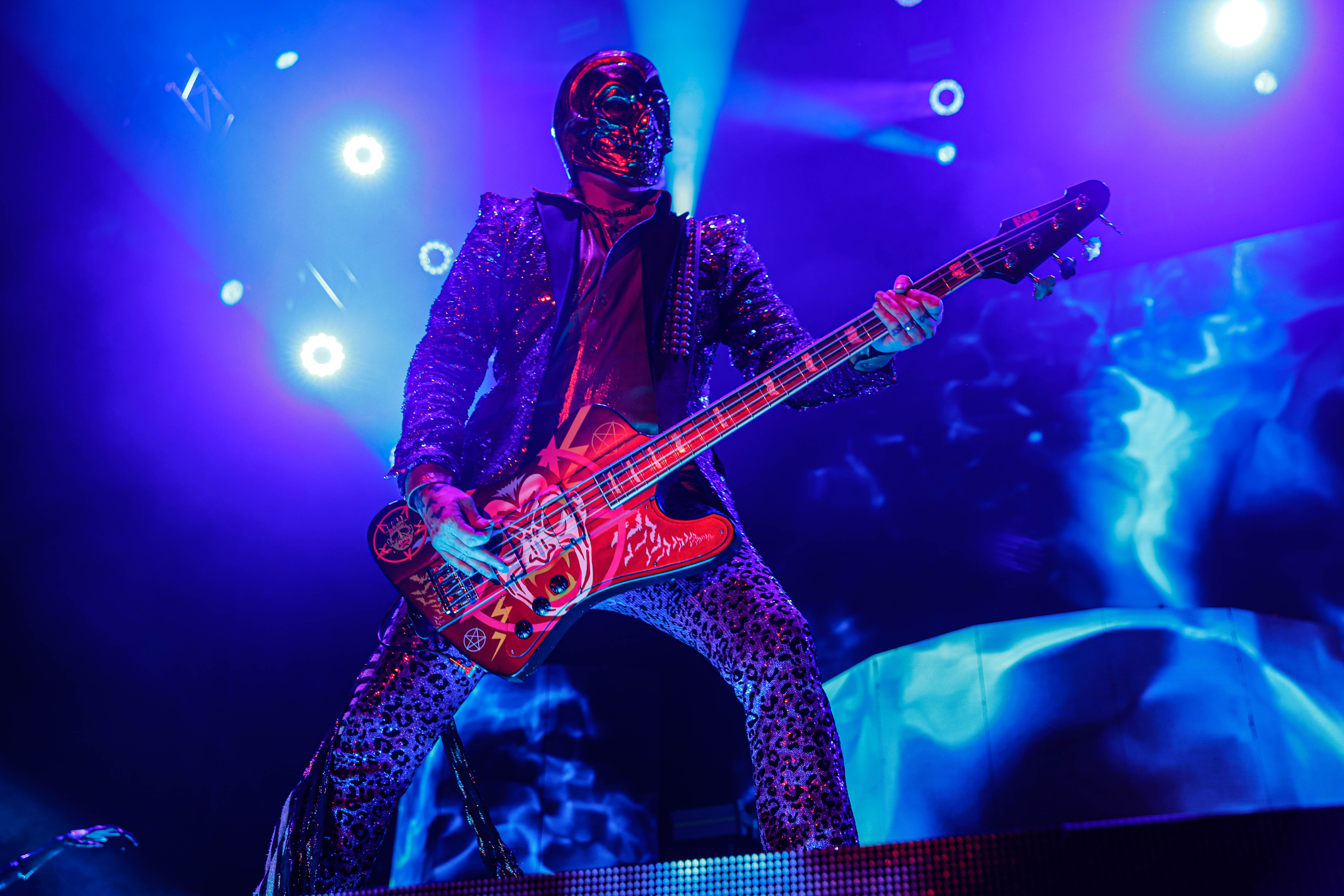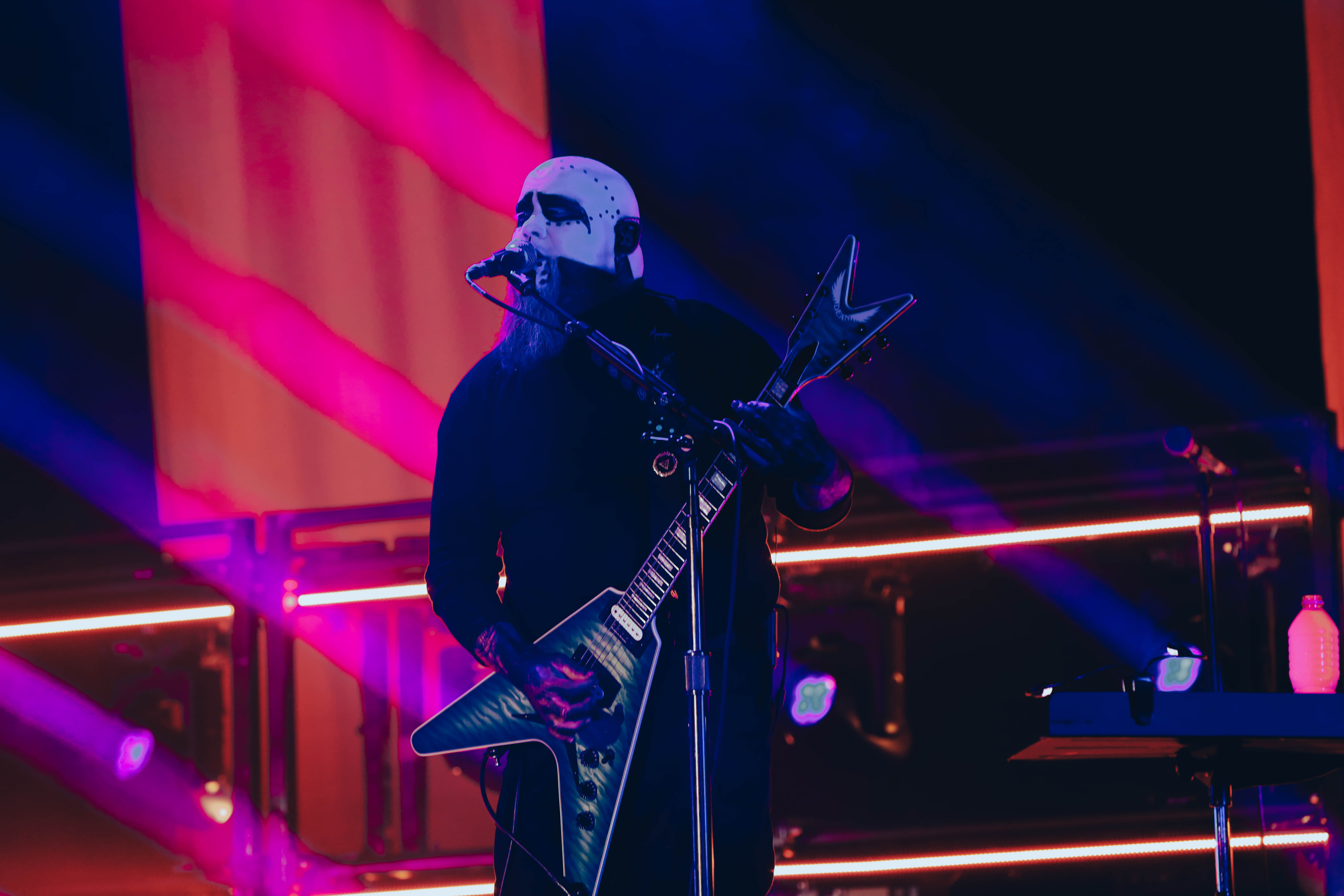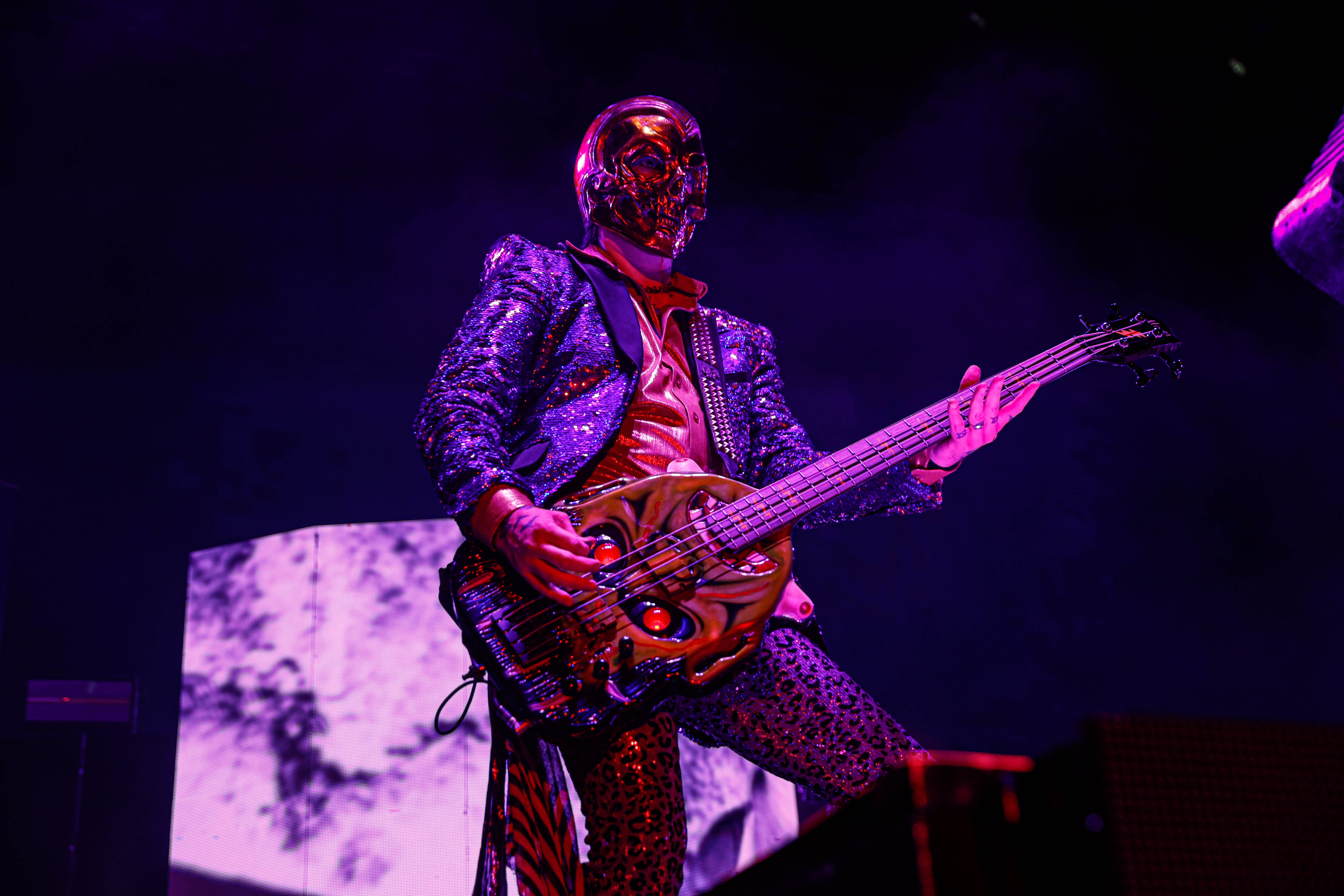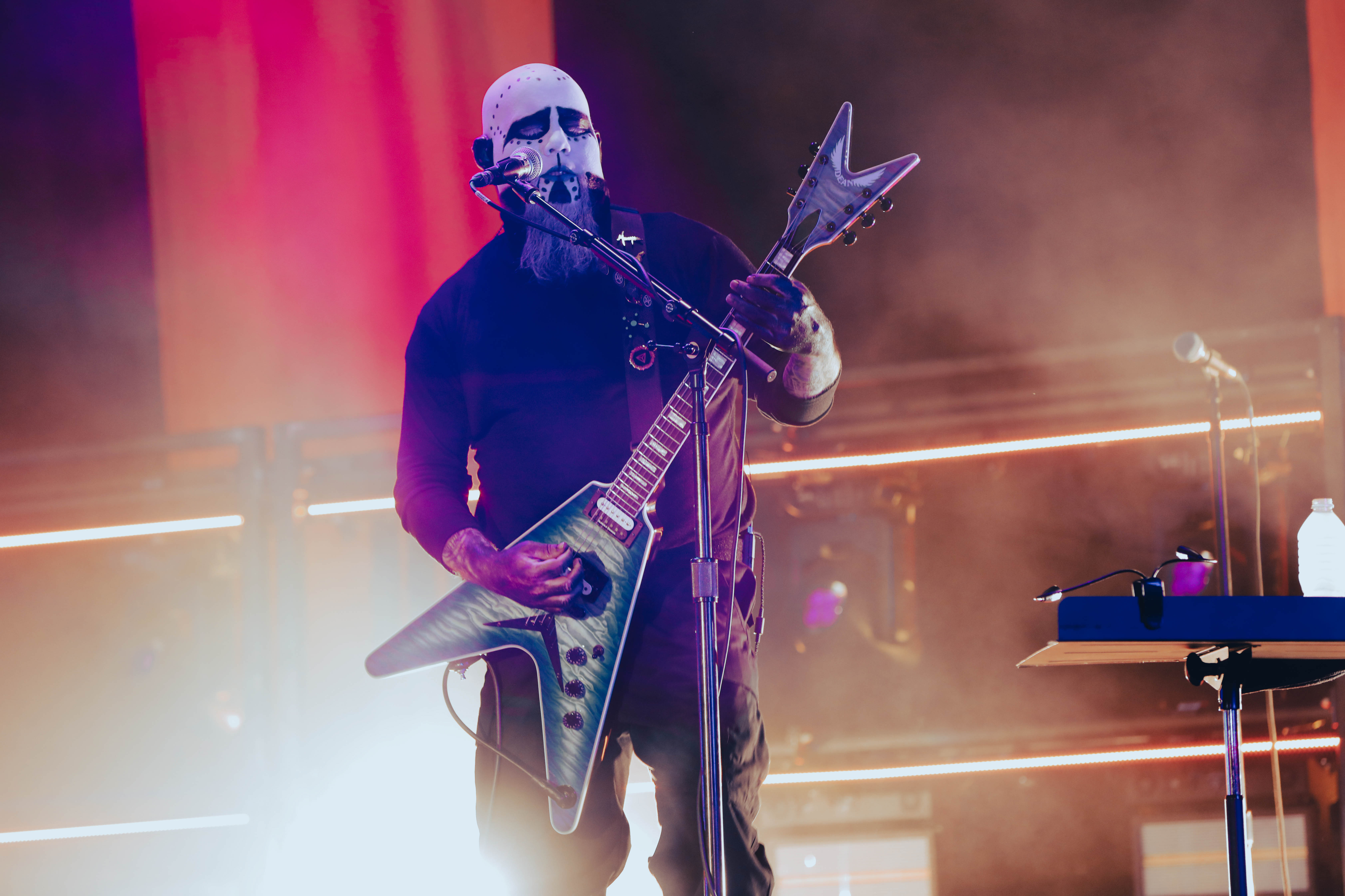 Second to last was the highly anticipated performance from Mudvayne for their first L.A. show in 12 years. Mudvayne were together for 14 years before taking a hiatus in 2010. Frontman Chad Gray and guitarist Greg Tribbett went on to continue with Hellyeah with former Pantera/Damageplan drummer Vinnie Paul of which they had joined when the group formed in 2006. Tribbett left the group in 2014/ With Paul’s passing in 2018, Hellyeah did one more tour with Stone Sour drummer Roy Mayorga honoring Paul’s life and legacy before disbanding in 2021 when Mudvayne reunited. Mudvayne is still three founding members Gray, Tribbett, drummer Matthew McDonough, however bassist Ryan Martinie joined in 1997 replacing original bassist Shawn Barclay who left just a year after the group formed. Also on guitar is touring member Marcus Rafferty who joined last year when the group reunited.