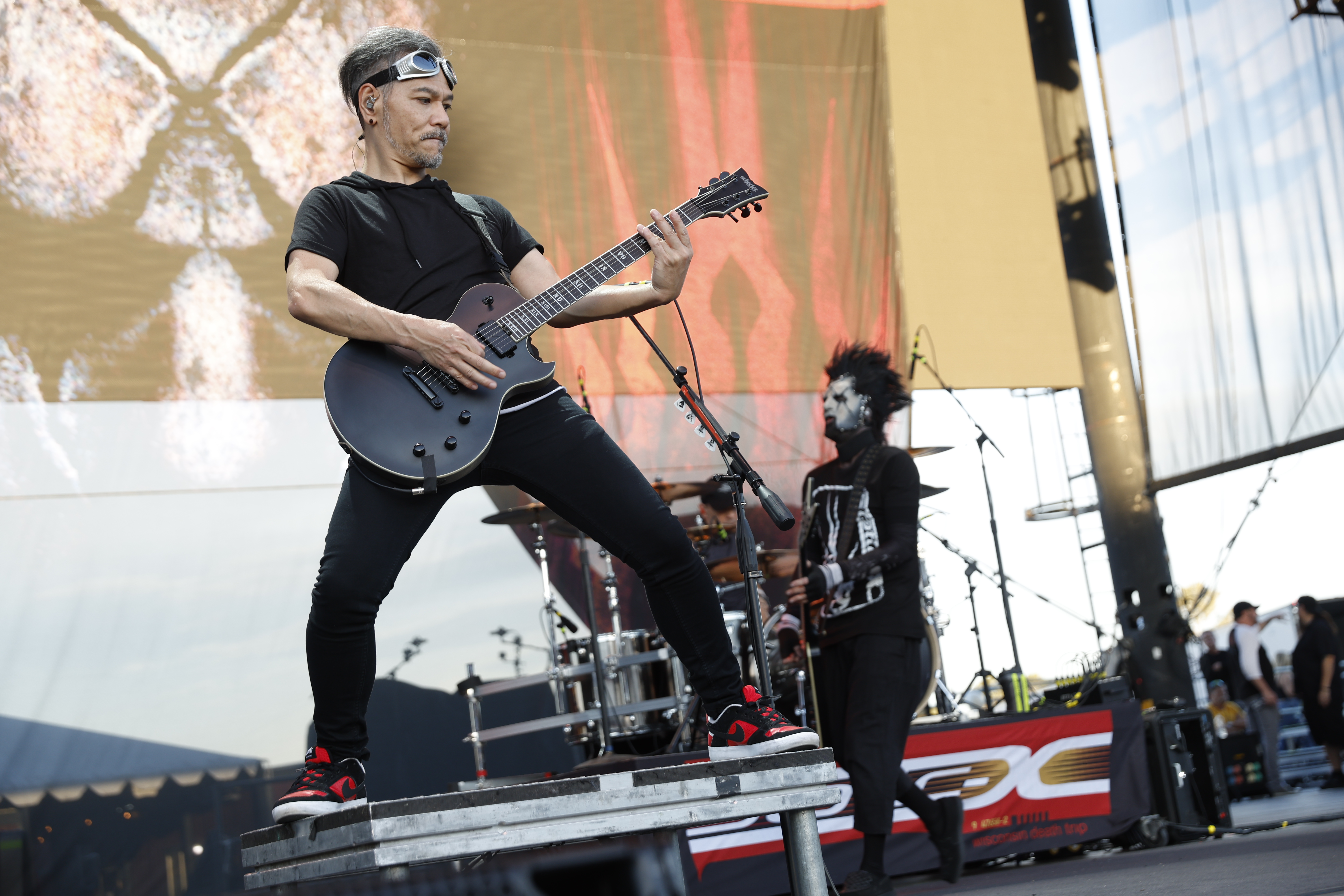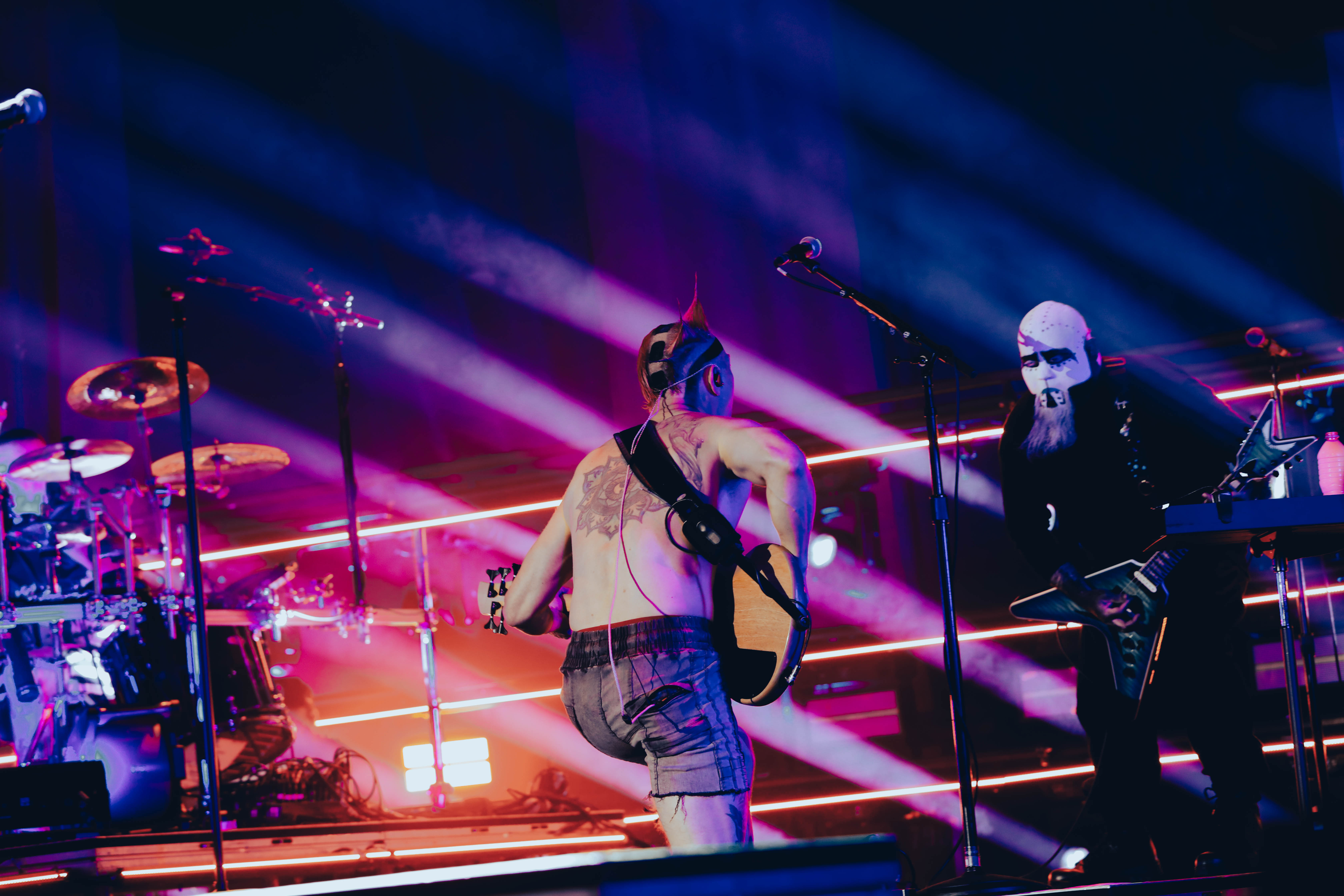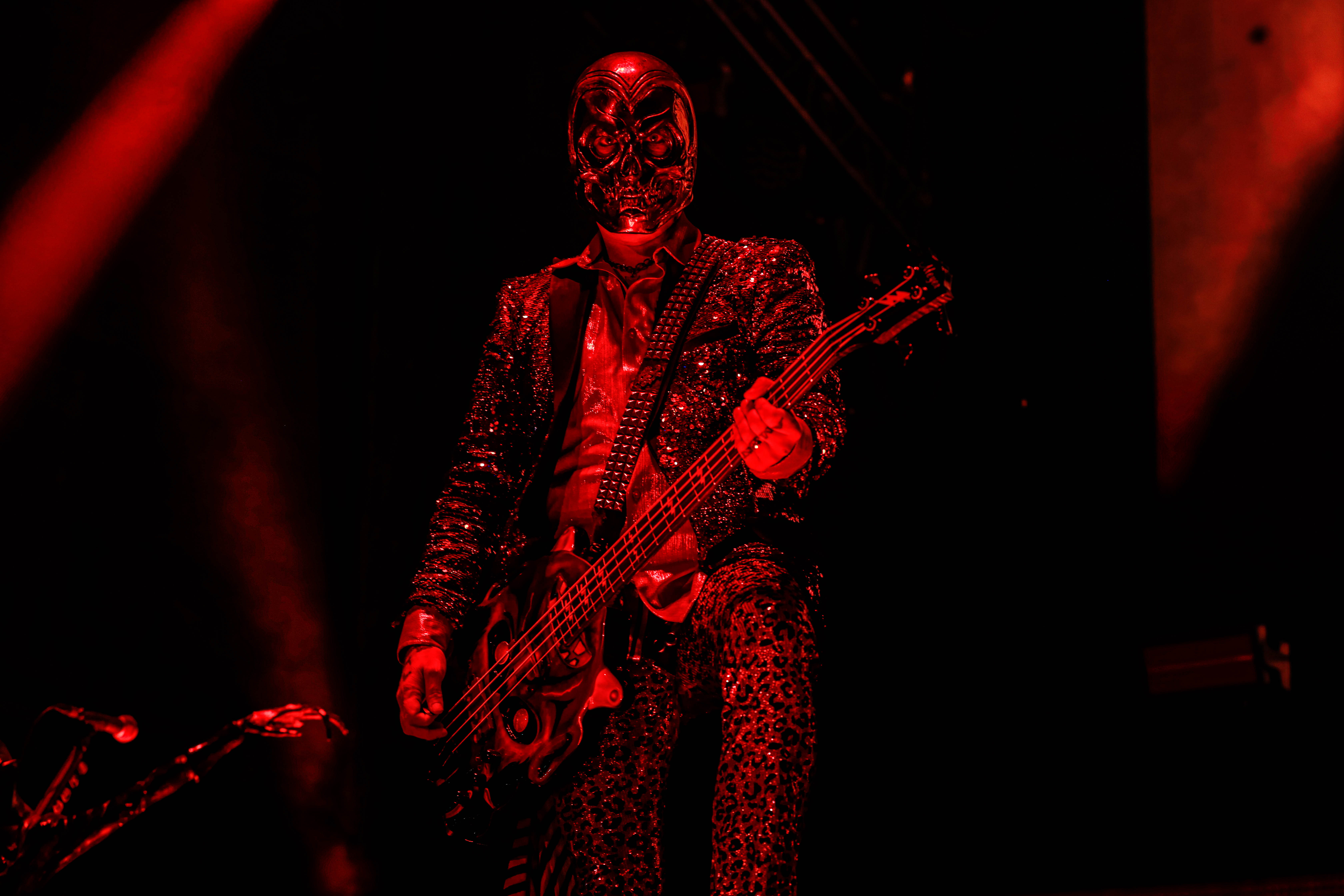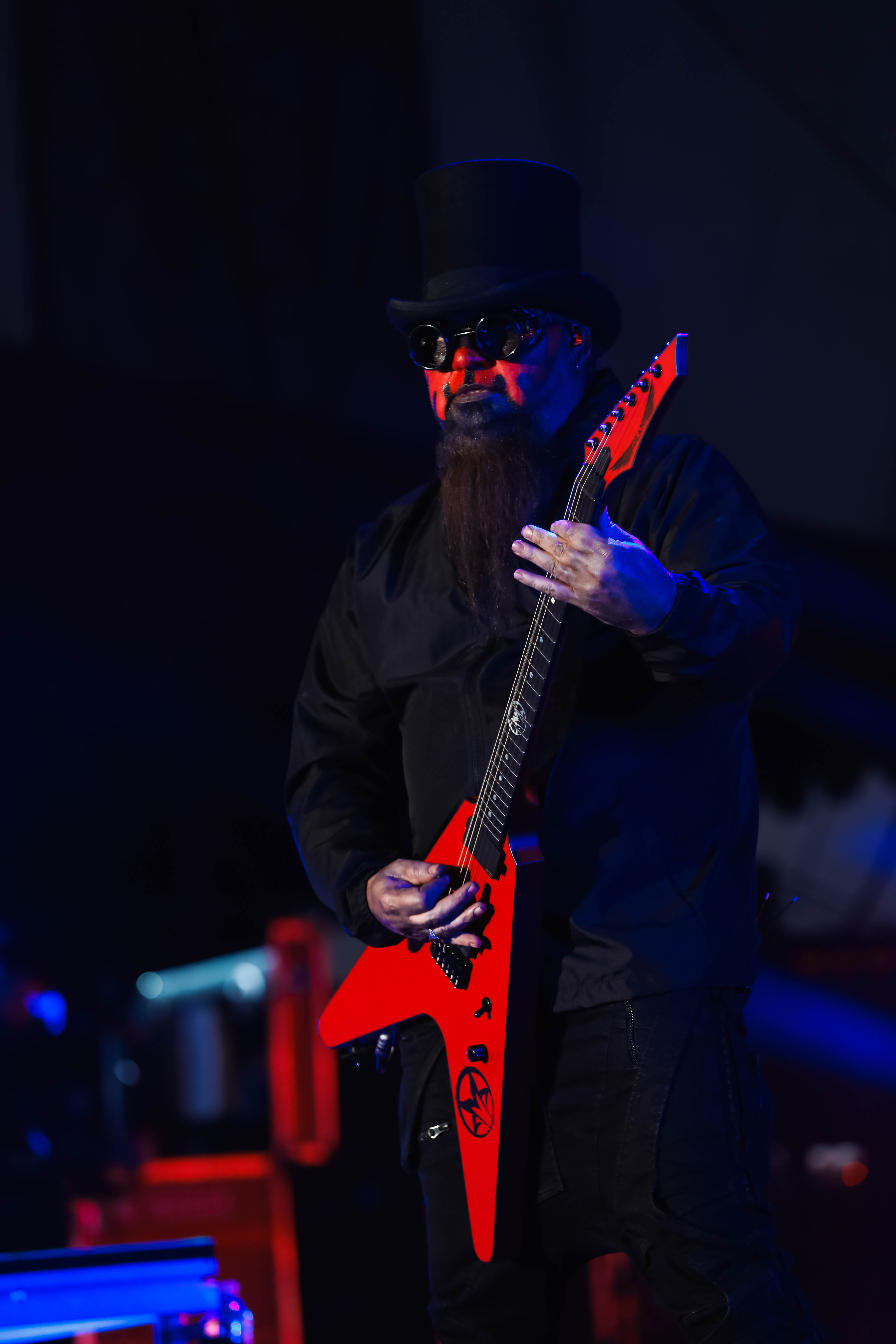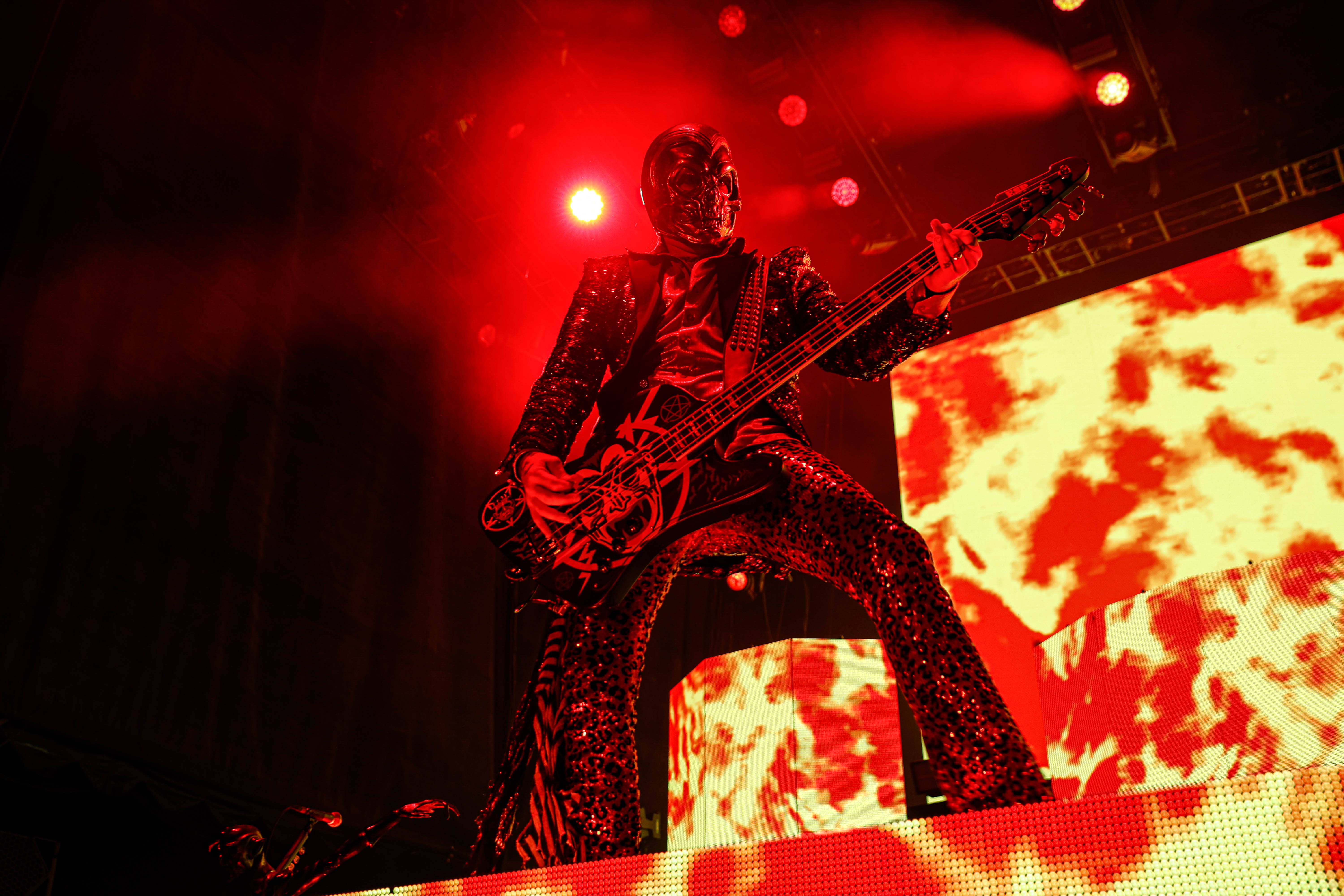 Second to last was the highly anticipated performance from Mudvayne for their first L.A. show in 12 years. Mudvayne were together for 14 years before taking a hiatus in 2010. Frontman Chad Gray and guitarist Greg Tribbett went on to continue with Hellyeah with former Pantera/Damageplan drummer Vinnie Paul of which they had joined when the group formed in 2006. Tribbett left the group in 2014/ With Paul’s passing in 2018, Hellyeah did one more tour with Stone Sour drummer Roy Mayorga honoring Paul’s life and legacy before disbanding in 2021 when Mudvayne reunited. Mudvayne is still three founding members Gray, Tribbett, drummer Matthew McDonough, however bassist Ryan Martinie joined in 1997 replacing original bassist Shawn Barclay who left just a year after the group formed. Also on guitar is touring member Marcus Rafferty who joined last year when the group reunited.