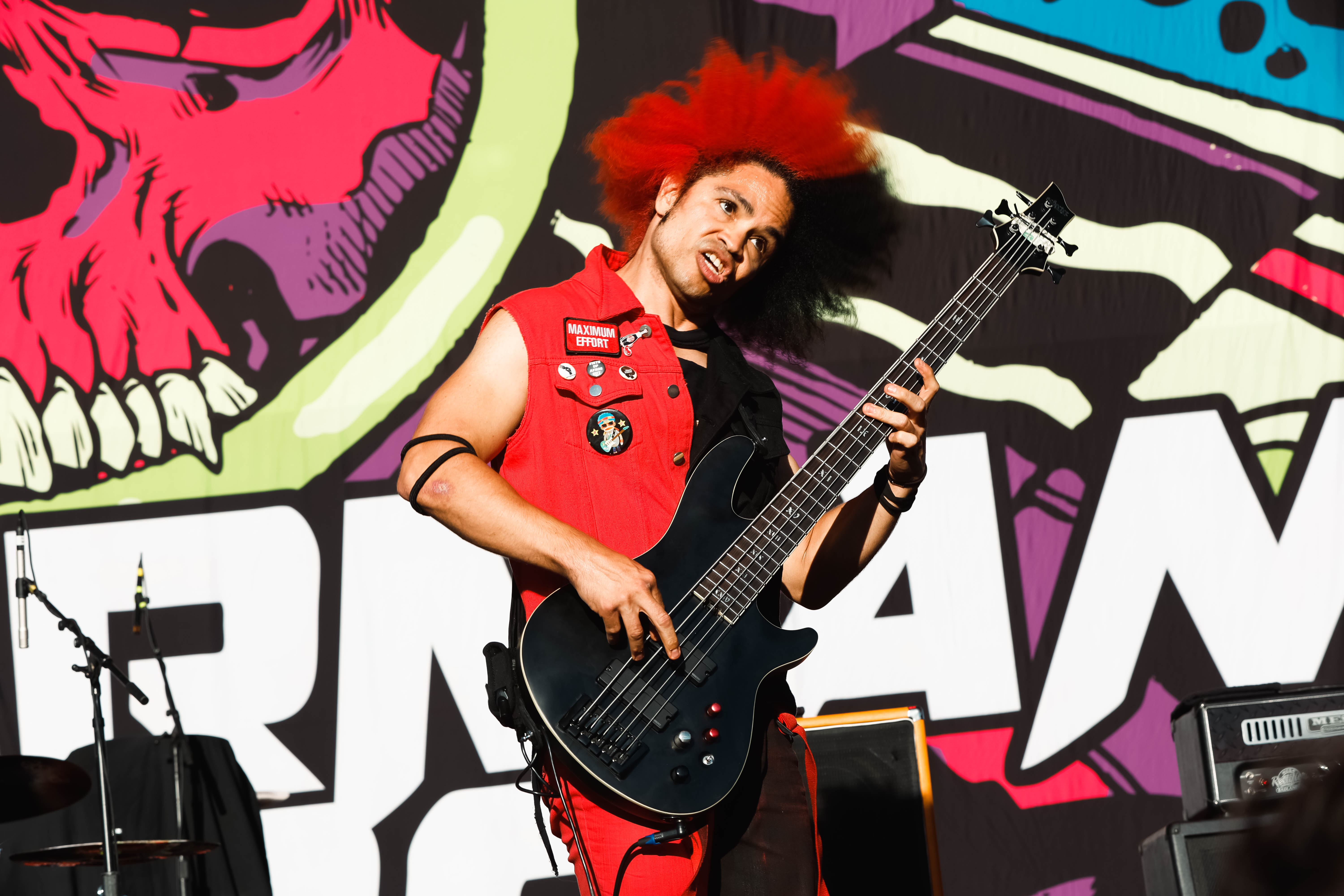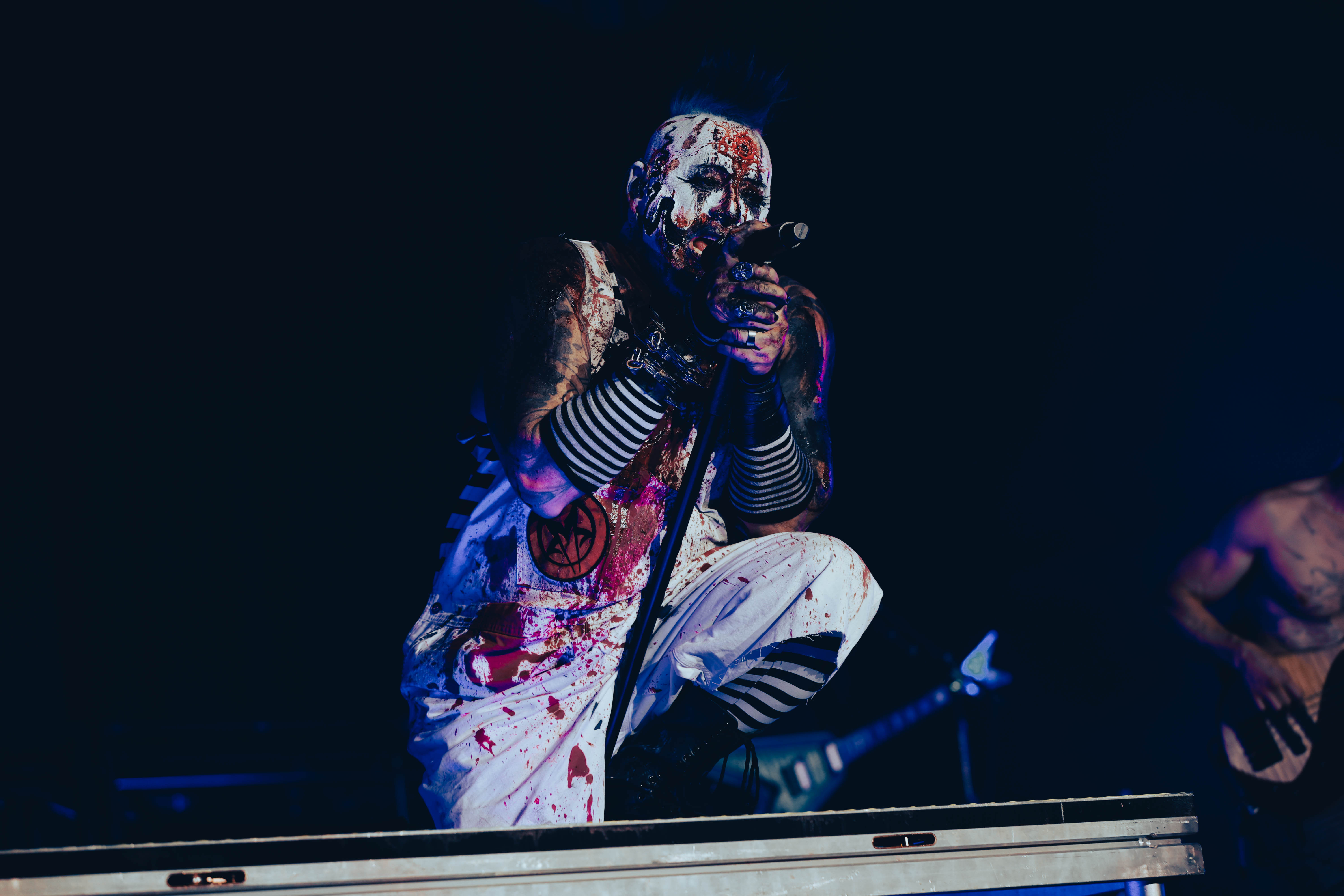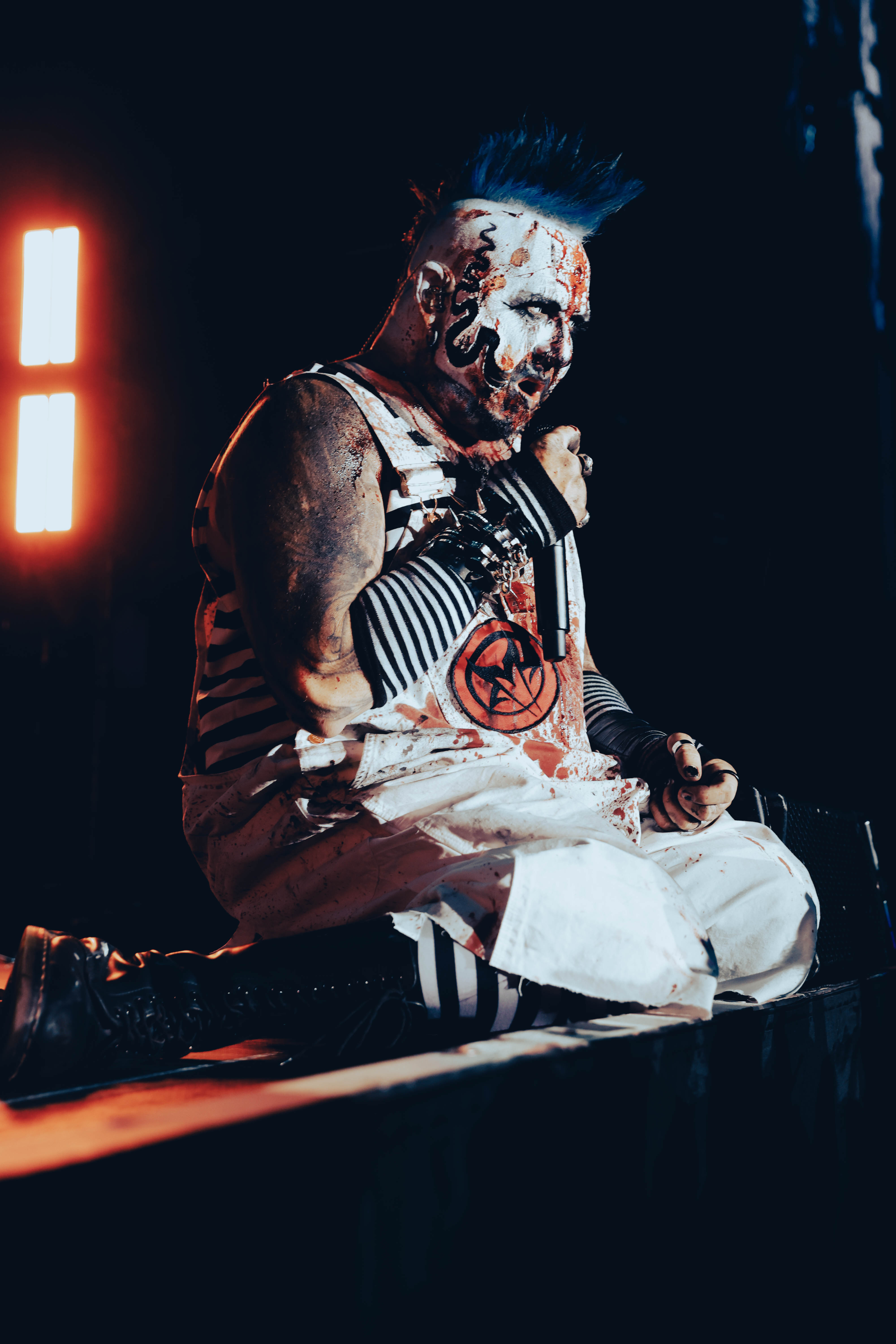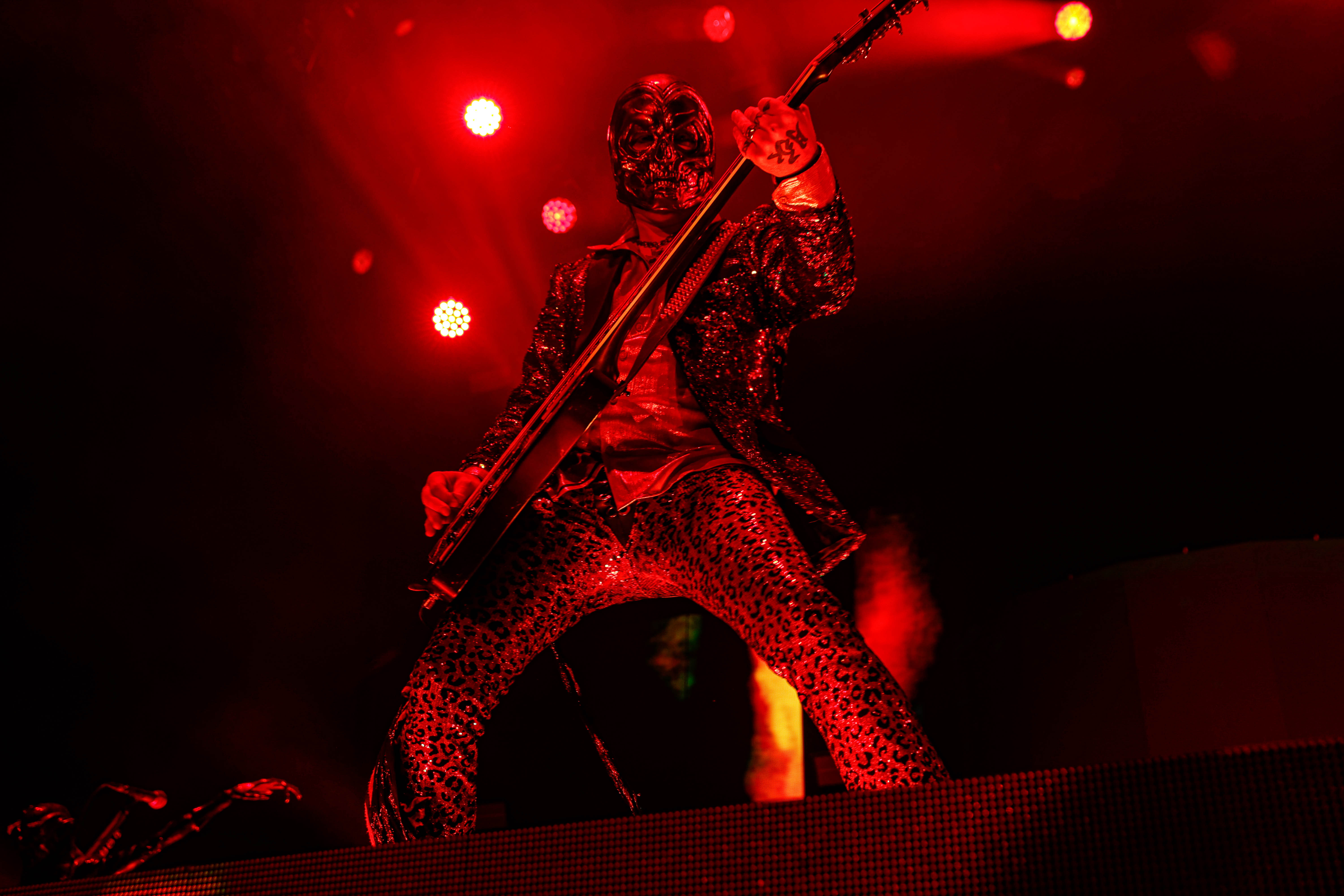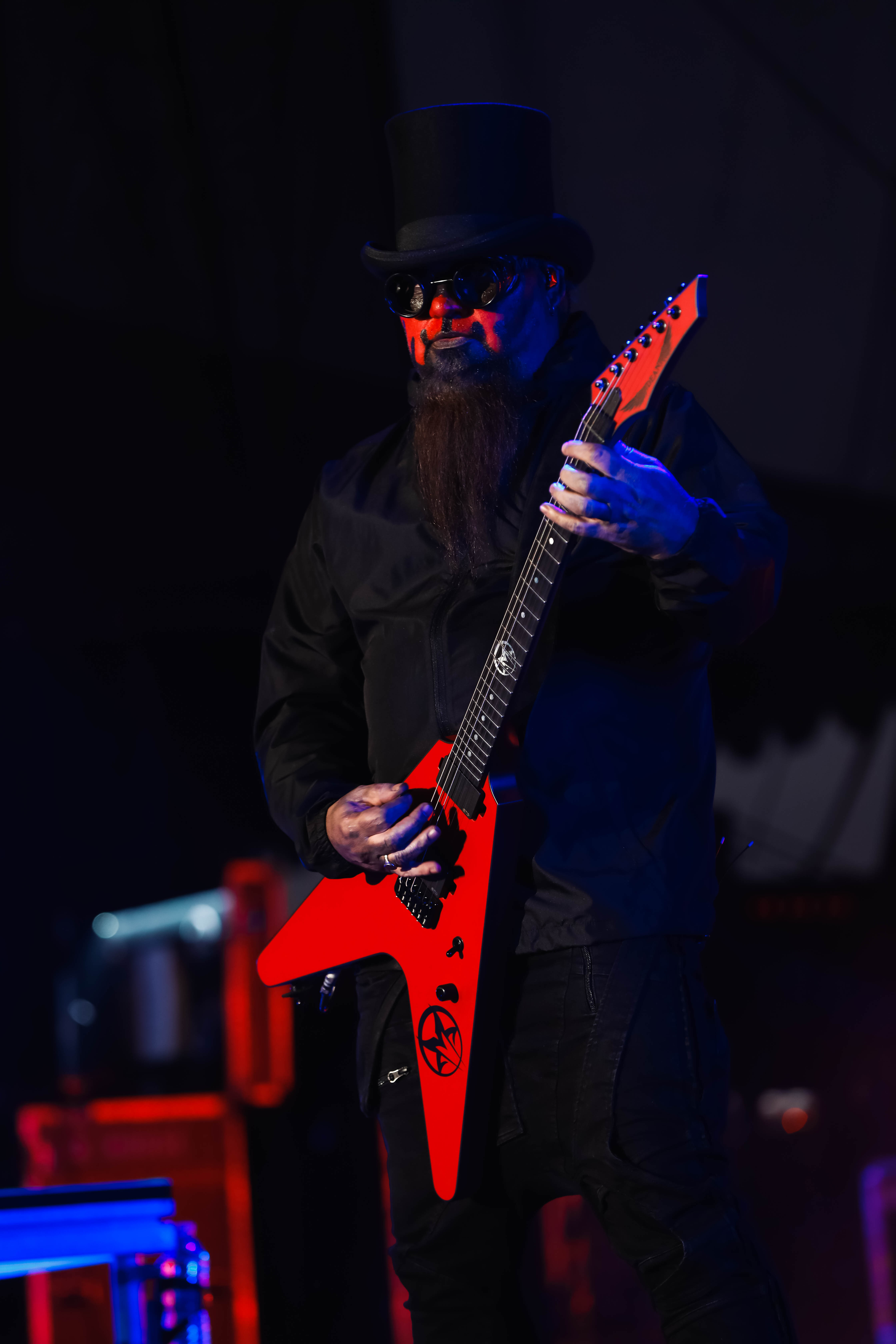 Second to last was the highly anticipated performance from Mudvayne for their first L.A. show in 12 years. Mudvayne were together for 14 years before taking a hiatus in 2010. Frontman Chad Gray and guitarist Greg Tribbett went on to continue with Hellyeah with former Pantera/Damageplan drummer Vinnie Paul of which they had joined when the group formed in 2006. Tribbett left the group in 2014/ With Paul’s passing in 2018, Hellyeah did one more tour with Stone Sour drummer Roy Mayorga honoring Paul’s life and legacy before disbanding in 2021 when Mudvayne reunited. Mudvayne is still three founding members Gray, Tribbett, drummer Matthew McDonough, however bassist Ryan Martinie joined in 1997 replacing original bassist Shawn Barclay who left just a year after the group formed. Also on guitar is touring member Marcus Rafferty who joined last year when the group reunited.