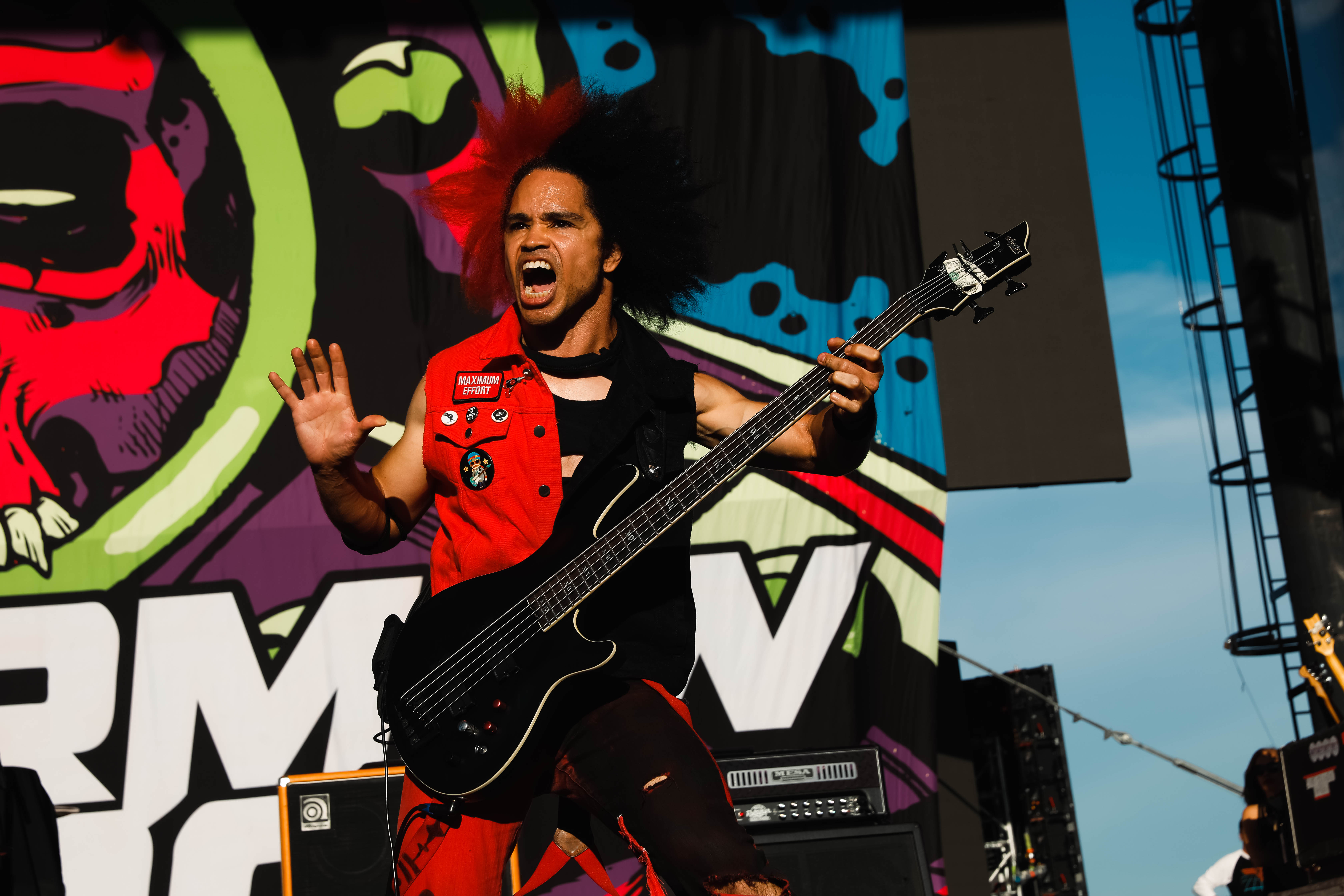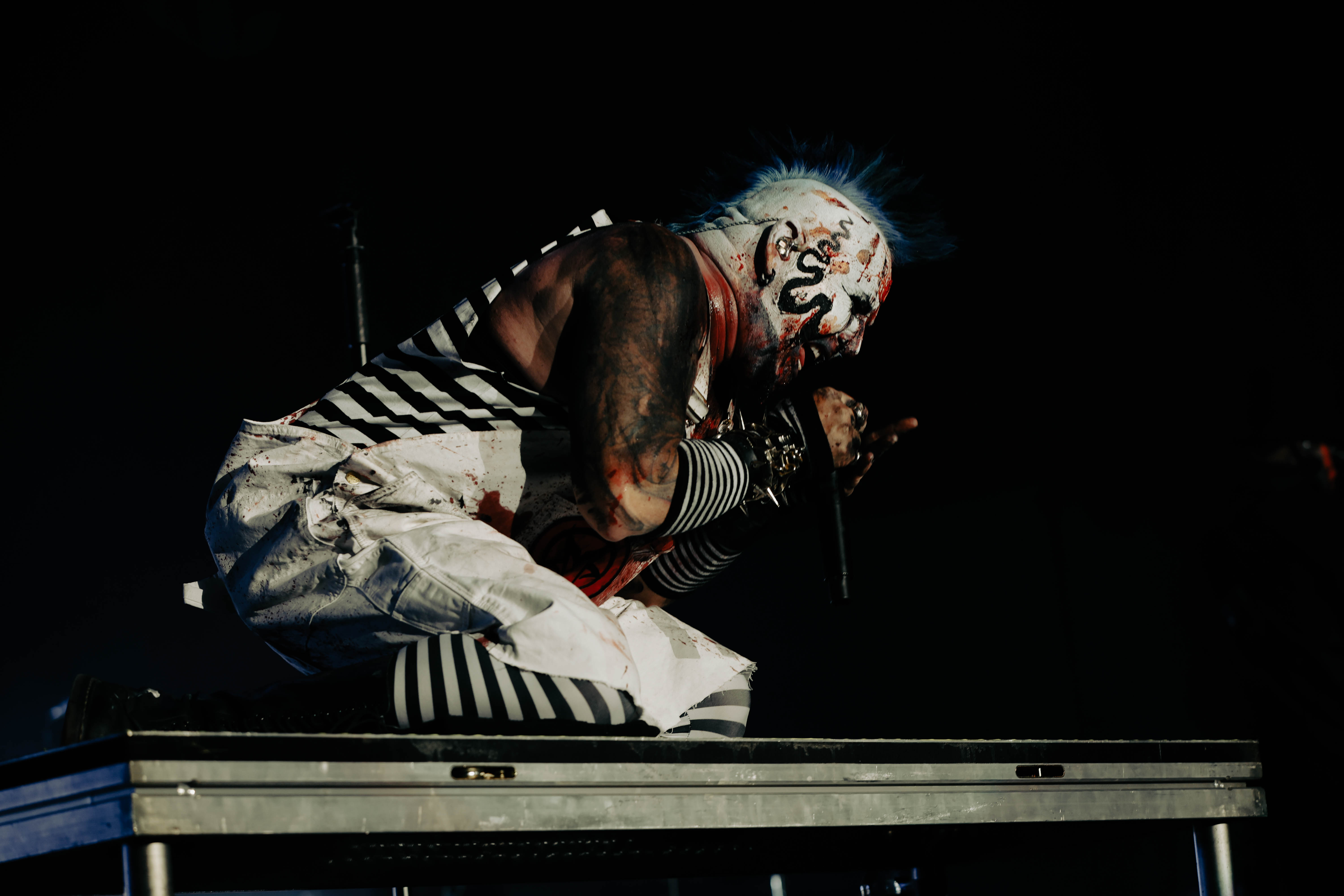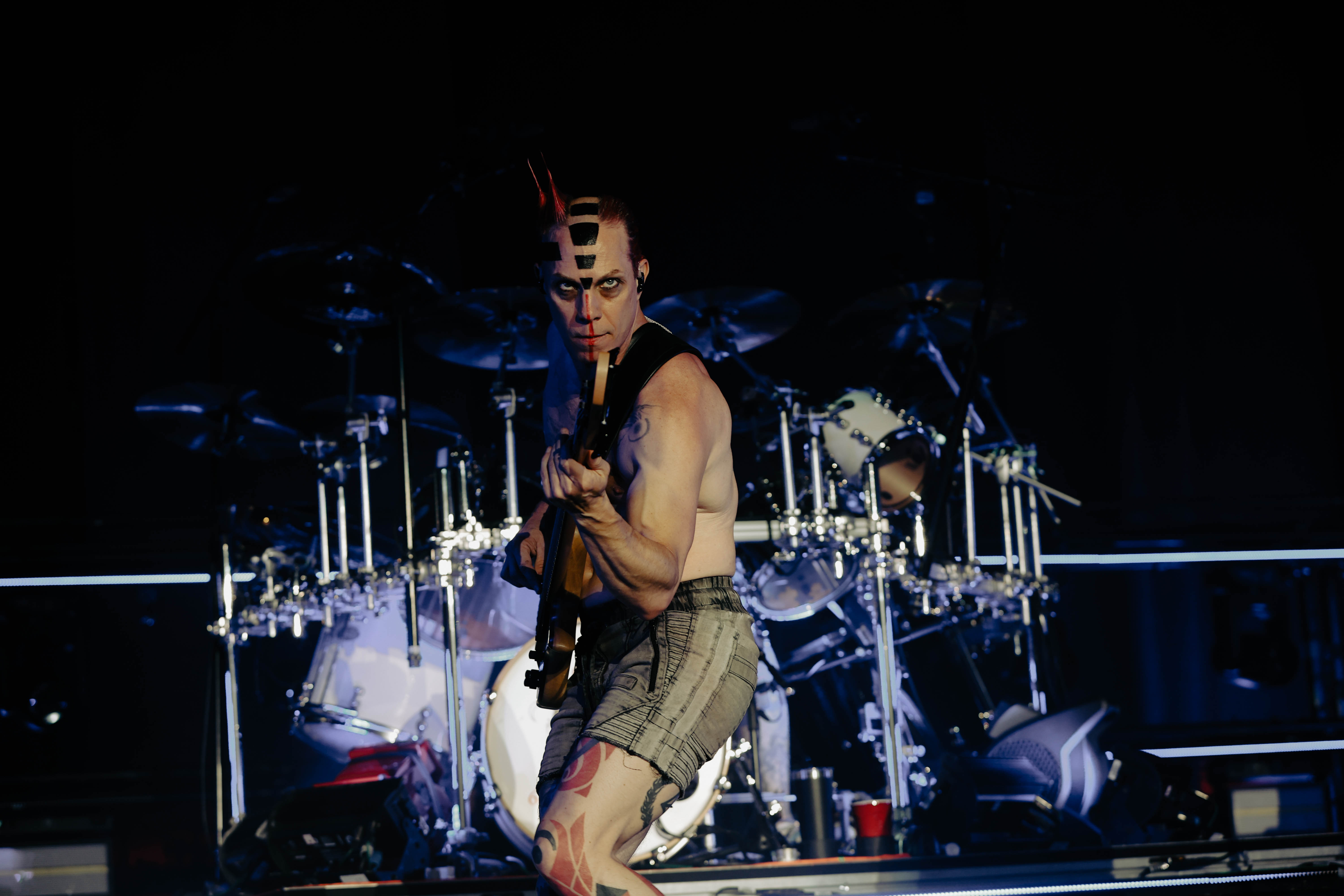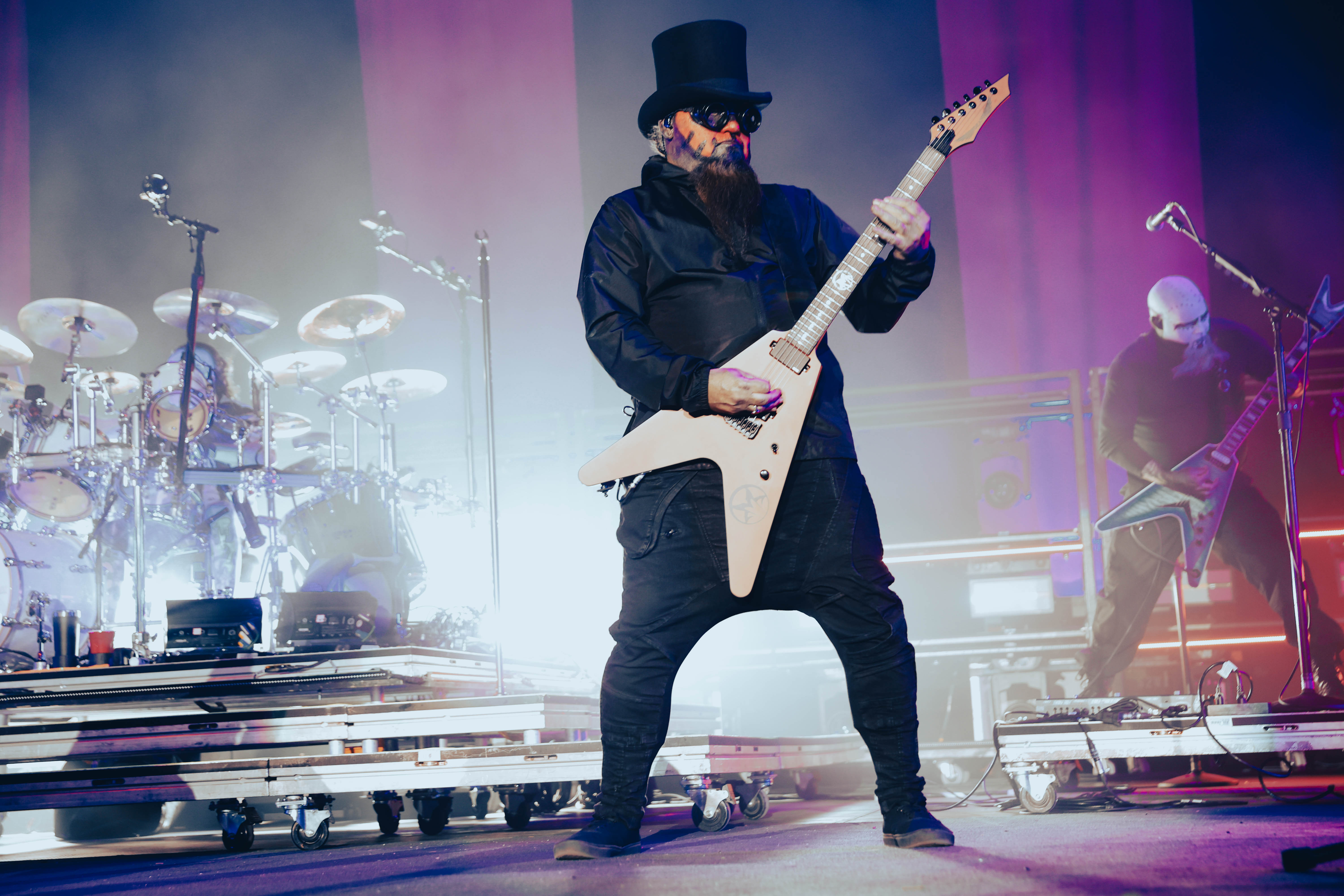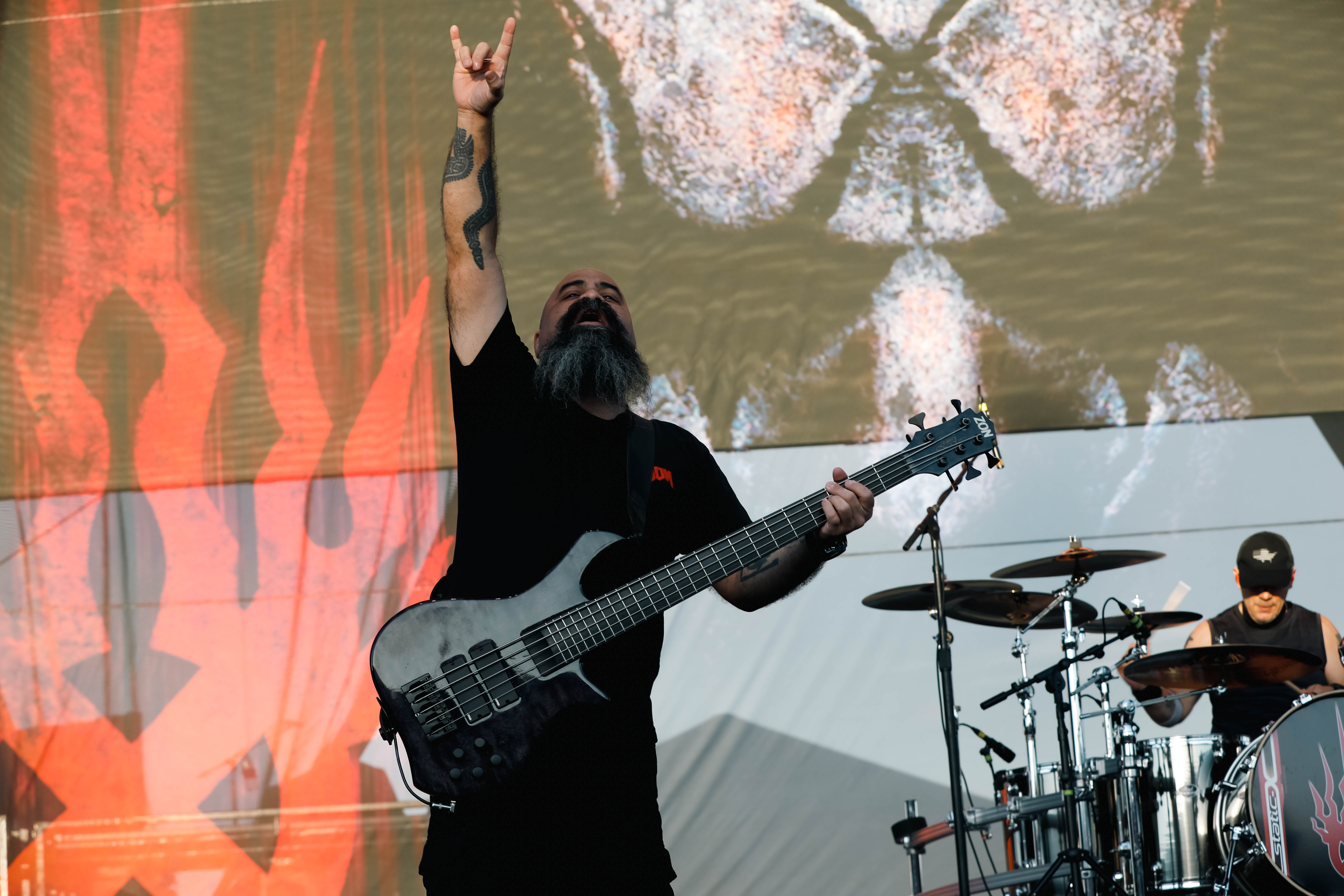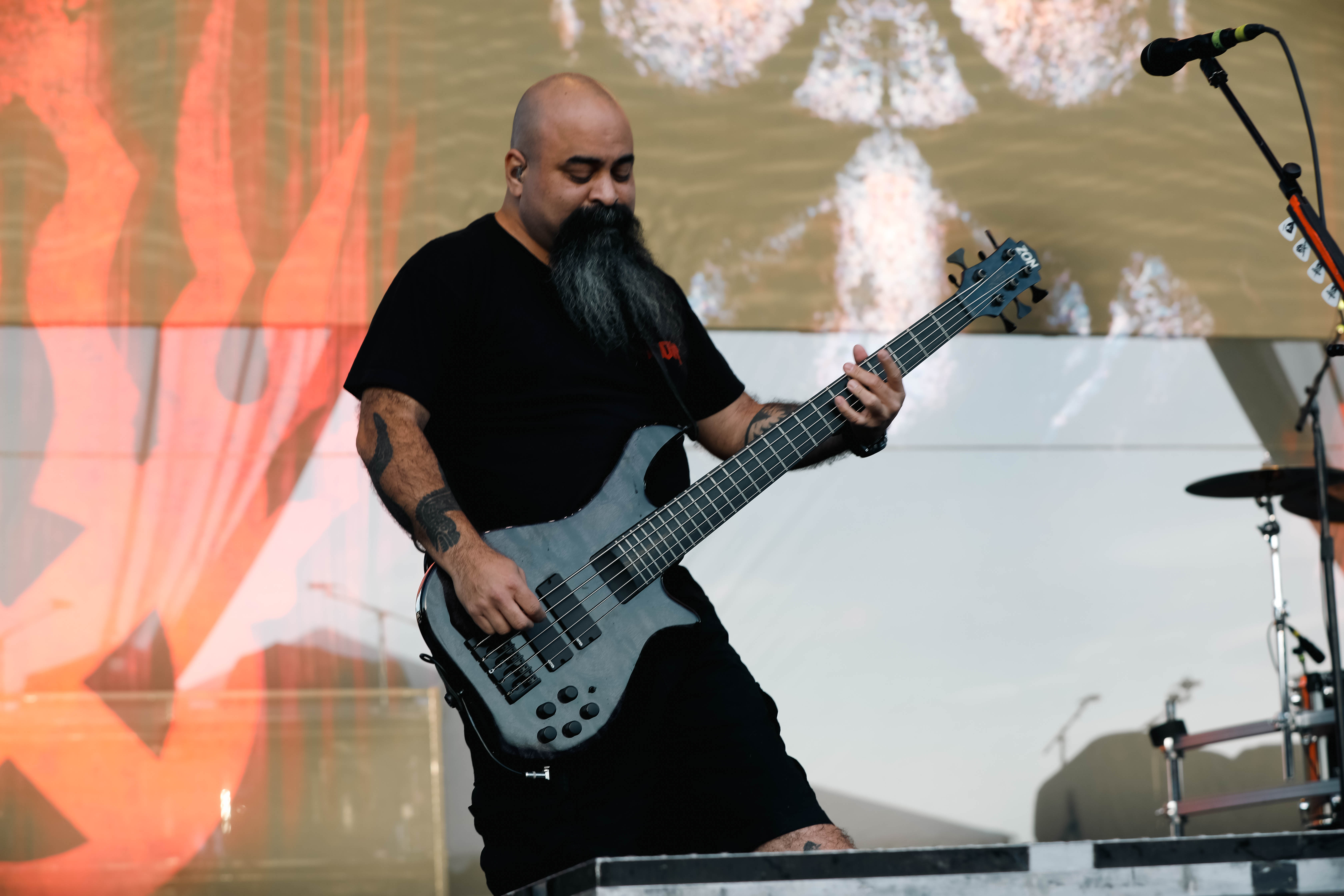 Second to last was the highly anticipated performance from Mudvayne for their first L.A. show in 12 years. Mudvayne were together for 14 years before taking a hiatus in 2010. Frontman Chad Gray and guitarist Greg Tribbett went on to continue with Hellyeah with former Pantera/Damageplan drummer Vinnie Paul of which they had joined when the group formed in 2006. Tribbett left the group in 2014/ With Paul’s passing in 2018, Hellyeah did one more tour with Stone Sour drummer Roy Mayorga honoring Paul’s life and legacy before disbanding in 2021 when Mudvayne reunited. Mudvayne is still three founding members Gray, Tribbett, drummer Matthew McDonough, however bassist Ryan Martinie joined in 1997 replacing original bassist Shawn Barclay who left just a year after the group formed. Also on guitar is touring member Marcus Rafferty who joined last year when the group reunited.