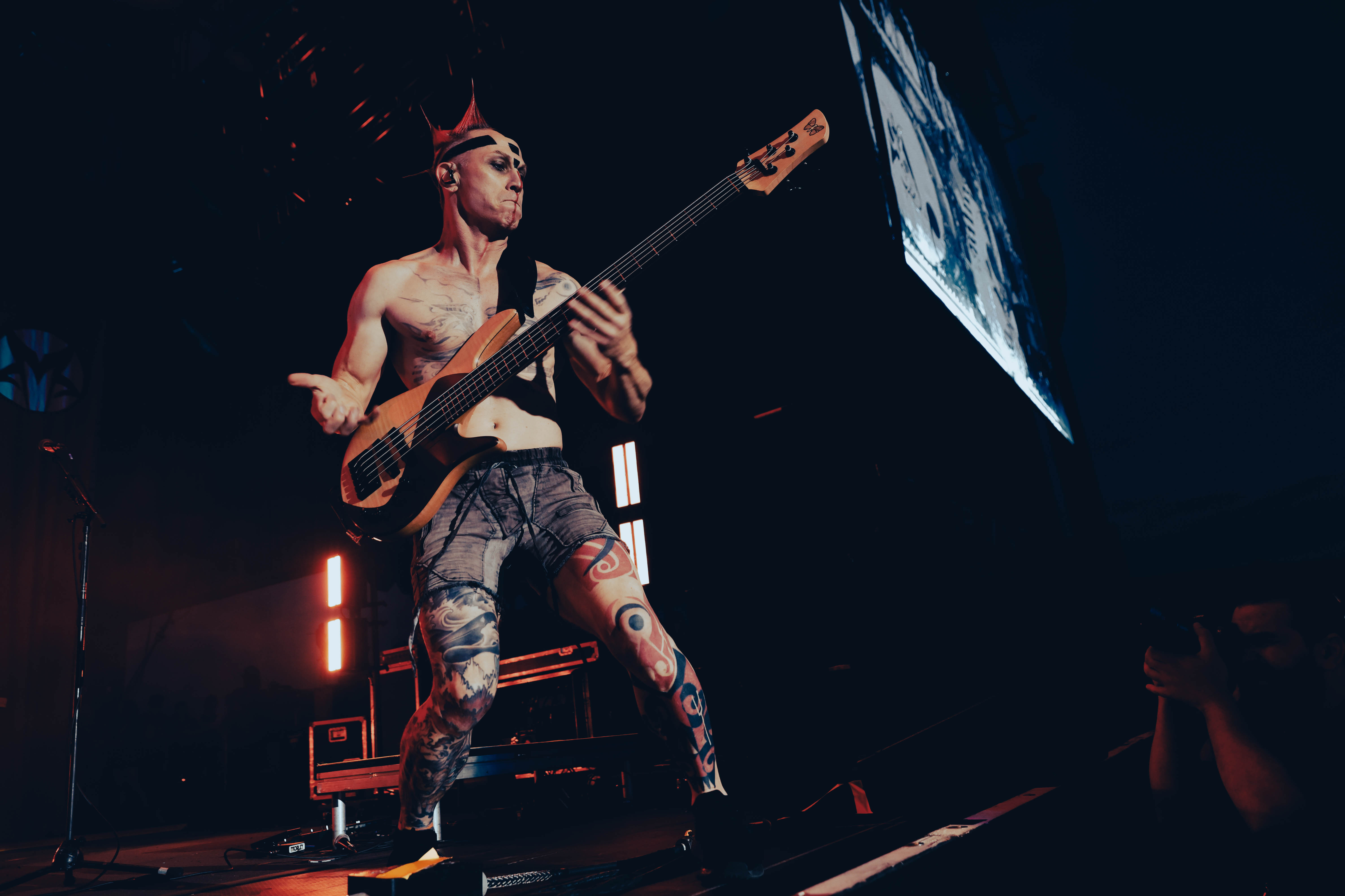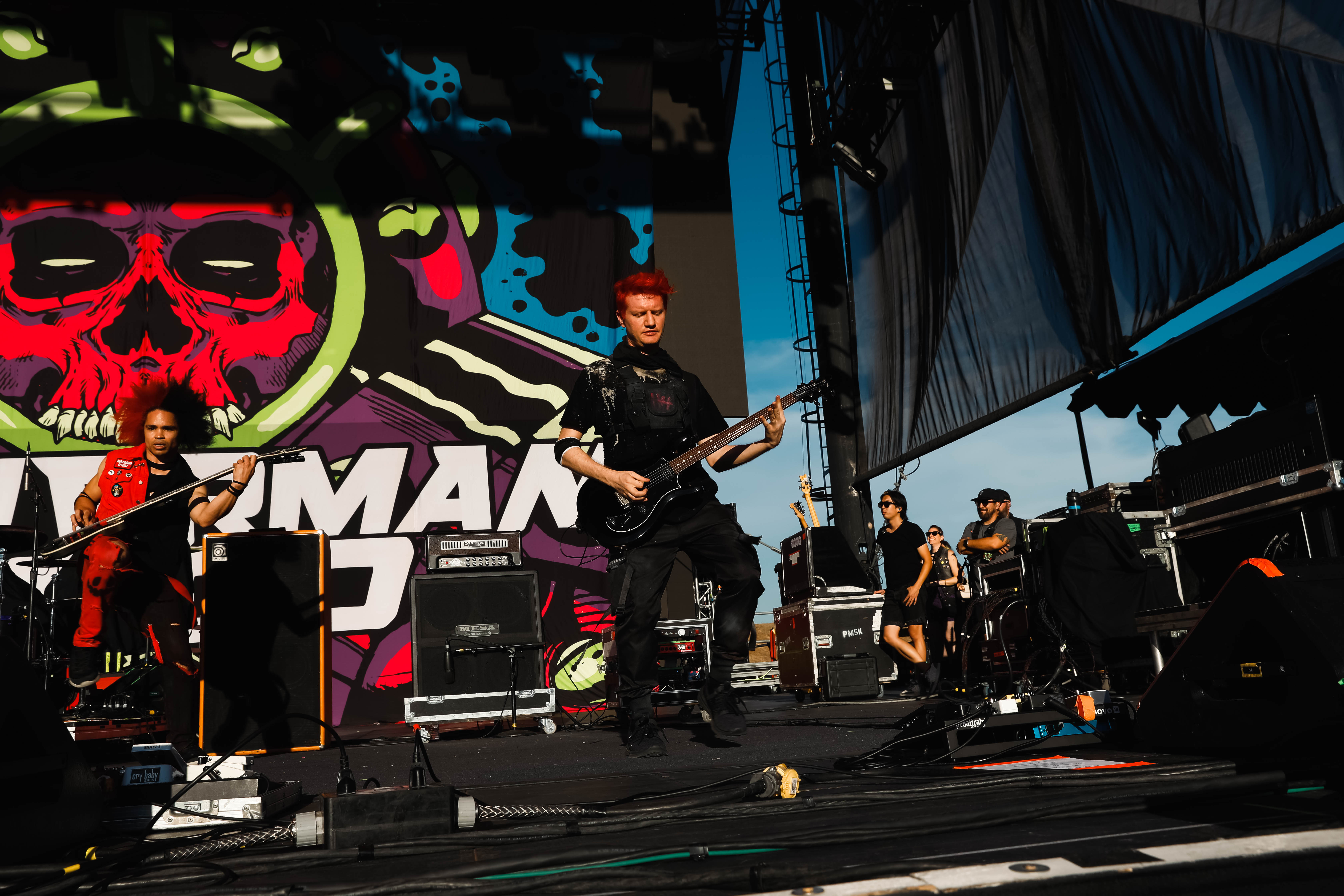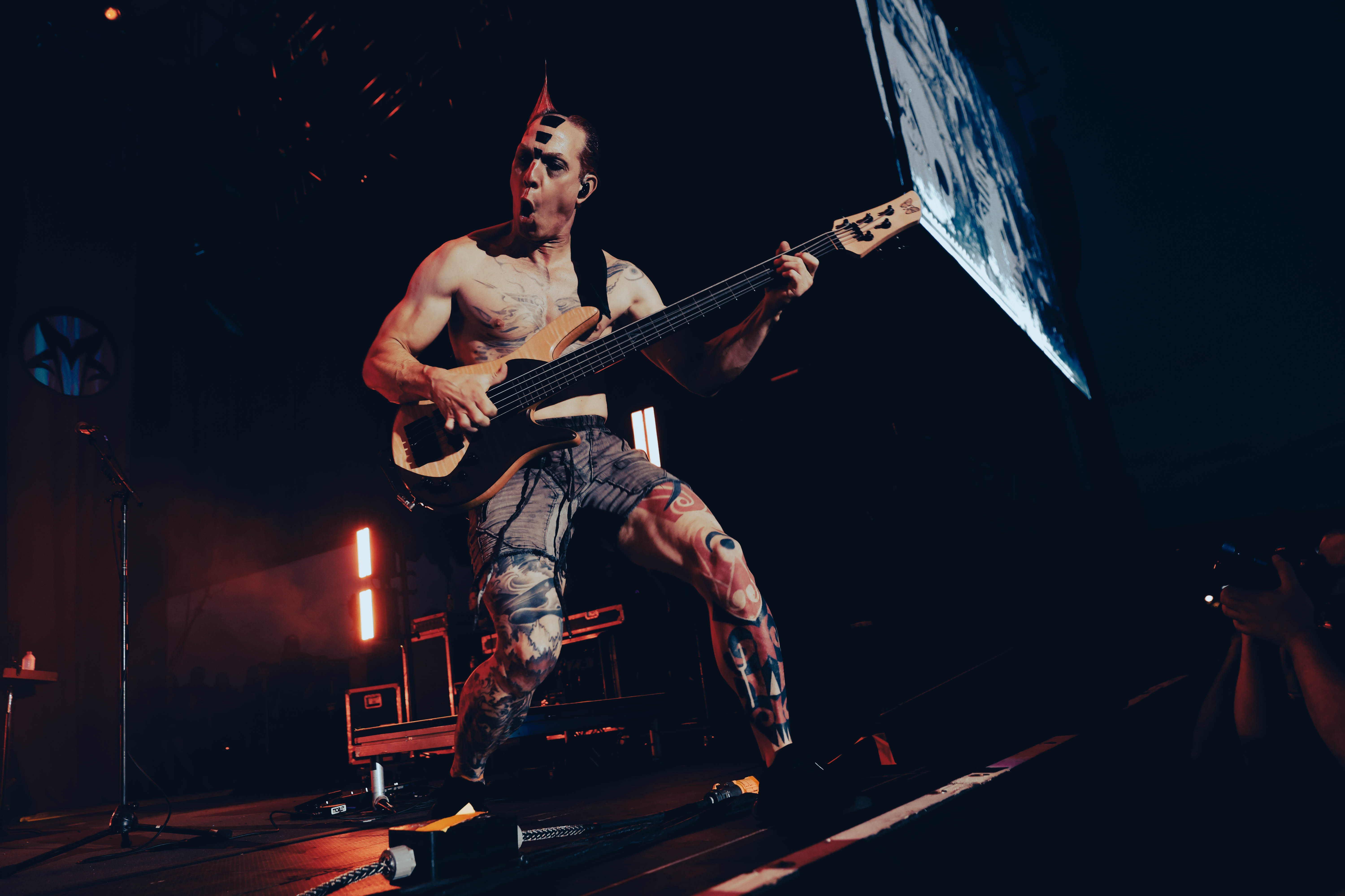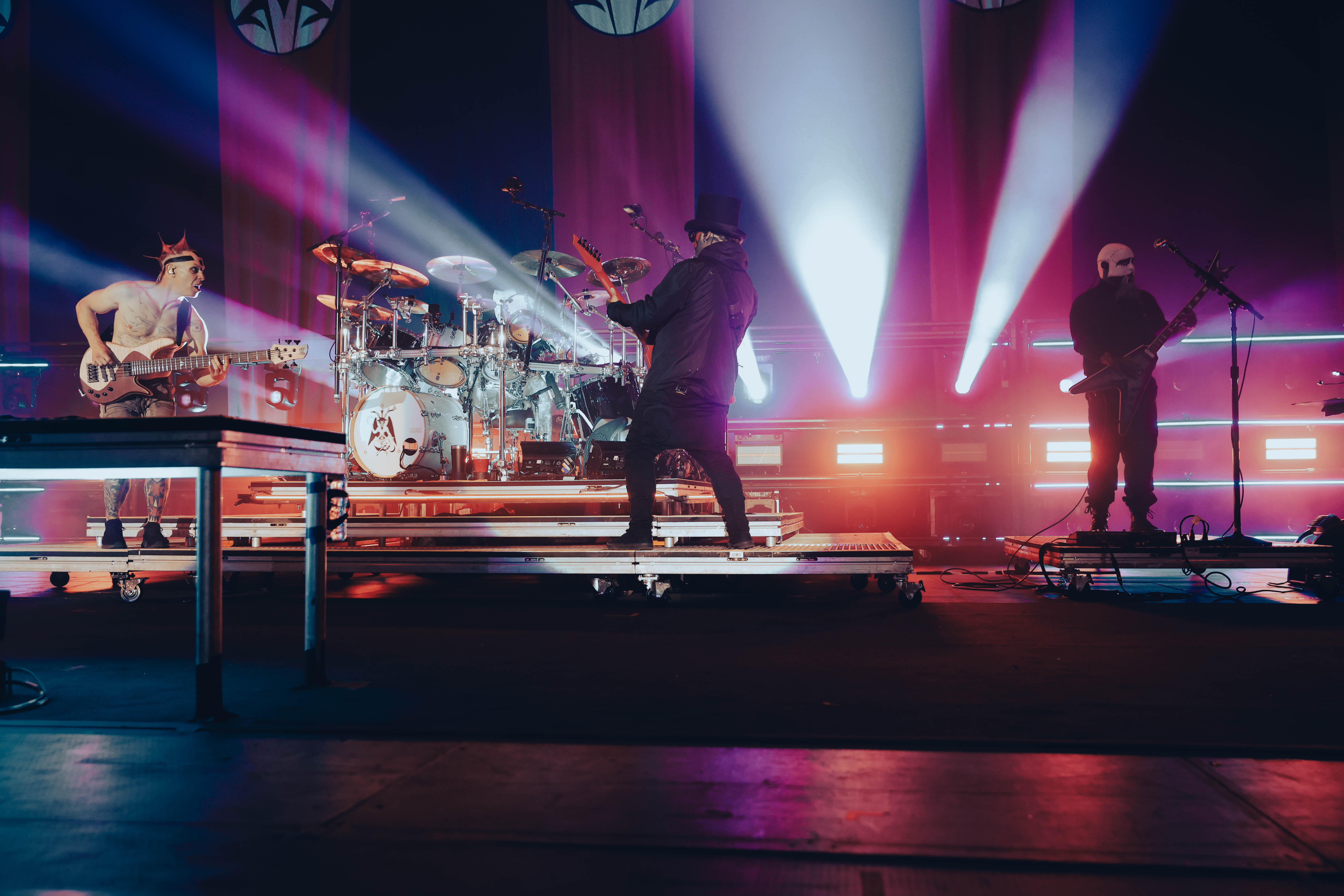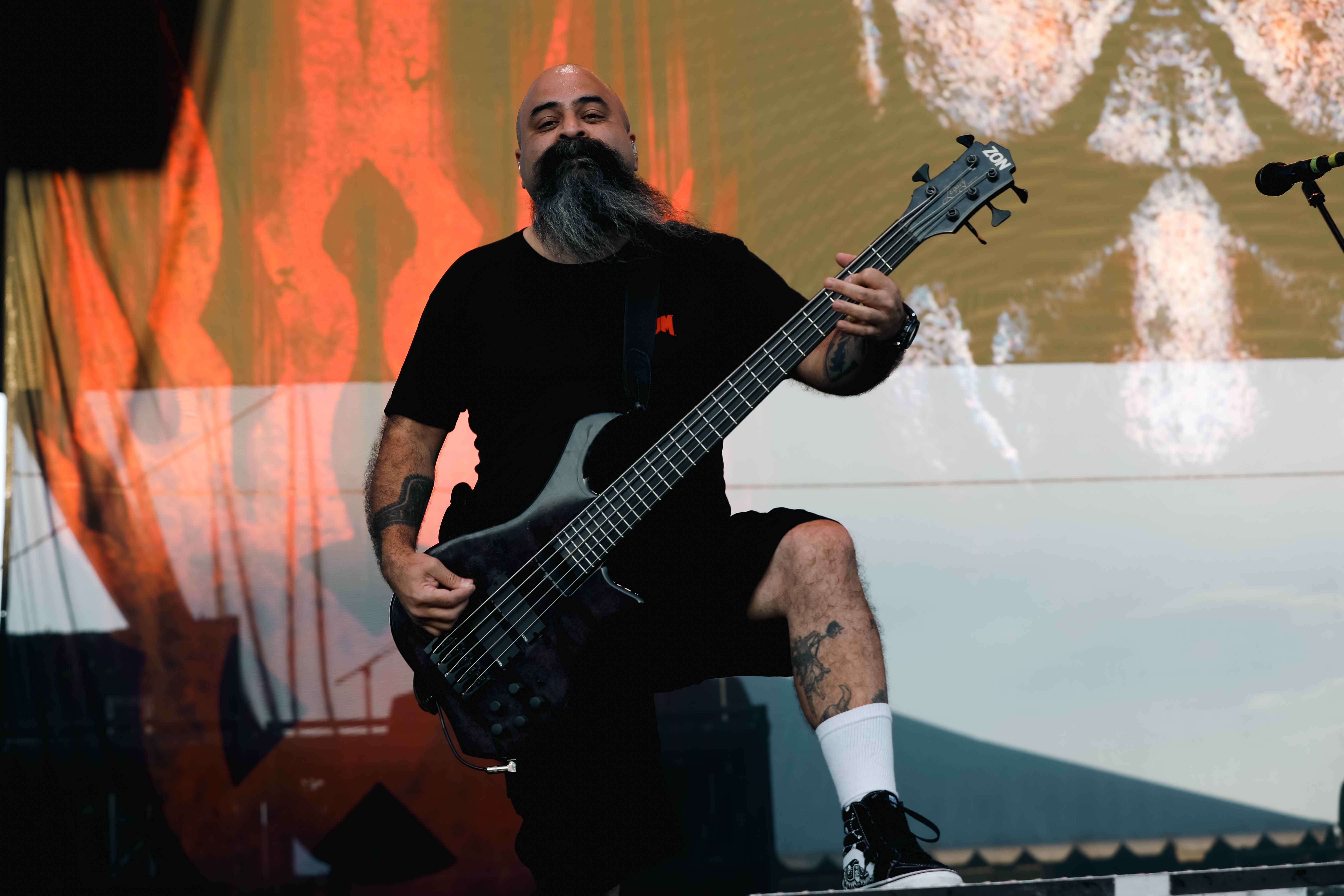 Second to last was the highly anticipated performance from Mudvayne for their first L.A. show in 12 years. Mudvayne were together for 14 years before taking a hiatus in 2010. Frontman Chad Gray and guitarist Greg Tribbett went on to continue with Hellyeah with former Pantera/Damageplan drummer Vinnie Paul of which they had joined when the group formed in 2006. Tribbett left the group in 2014/ With Paul’s passing in 2018, Hellyeah did one more tour with Stone Sour drummer Roy Mayorga honoring Paul’s life and legacy before disbanding in 2021 when Mudvayne reunited. Mudvayne is still three founding members Gray, Tribbett, drummer Matthew McDonough, however bassist Ryan Martinie joined in 1997 replacing original bassist Shawn Barclay who left just a year after the group formed. Also on guitar is touring member Marcus Rafferty who joined last year when the group reunited.