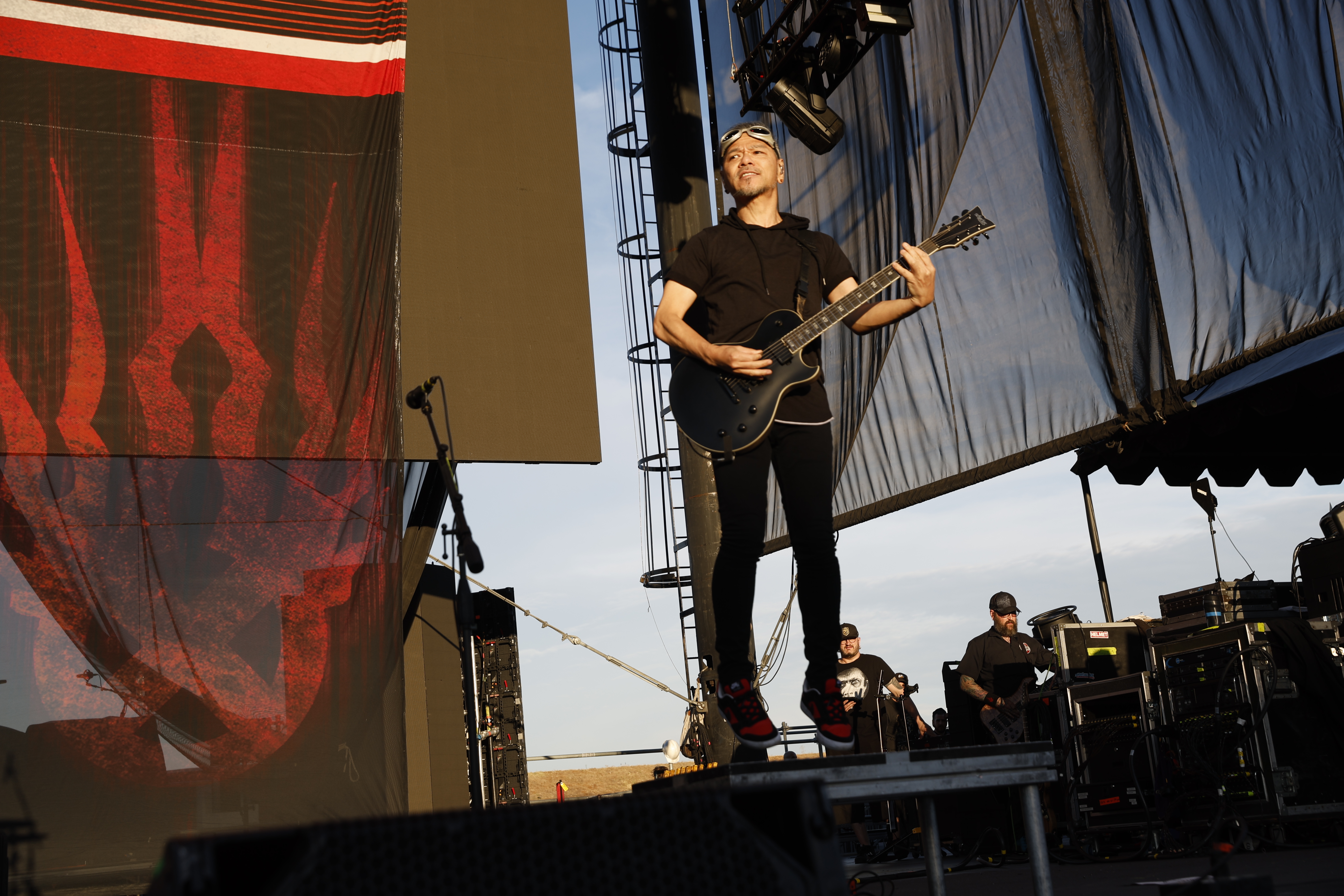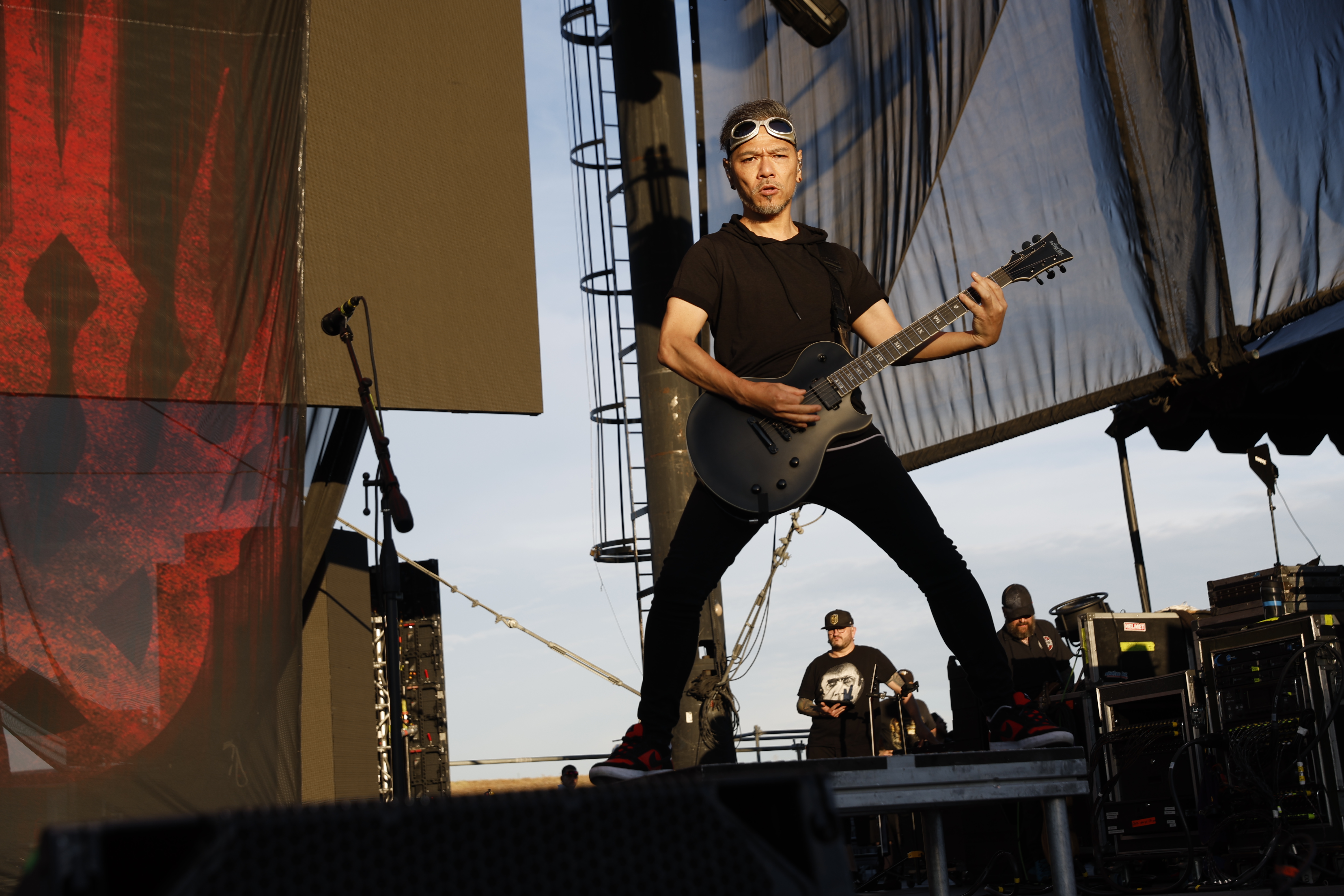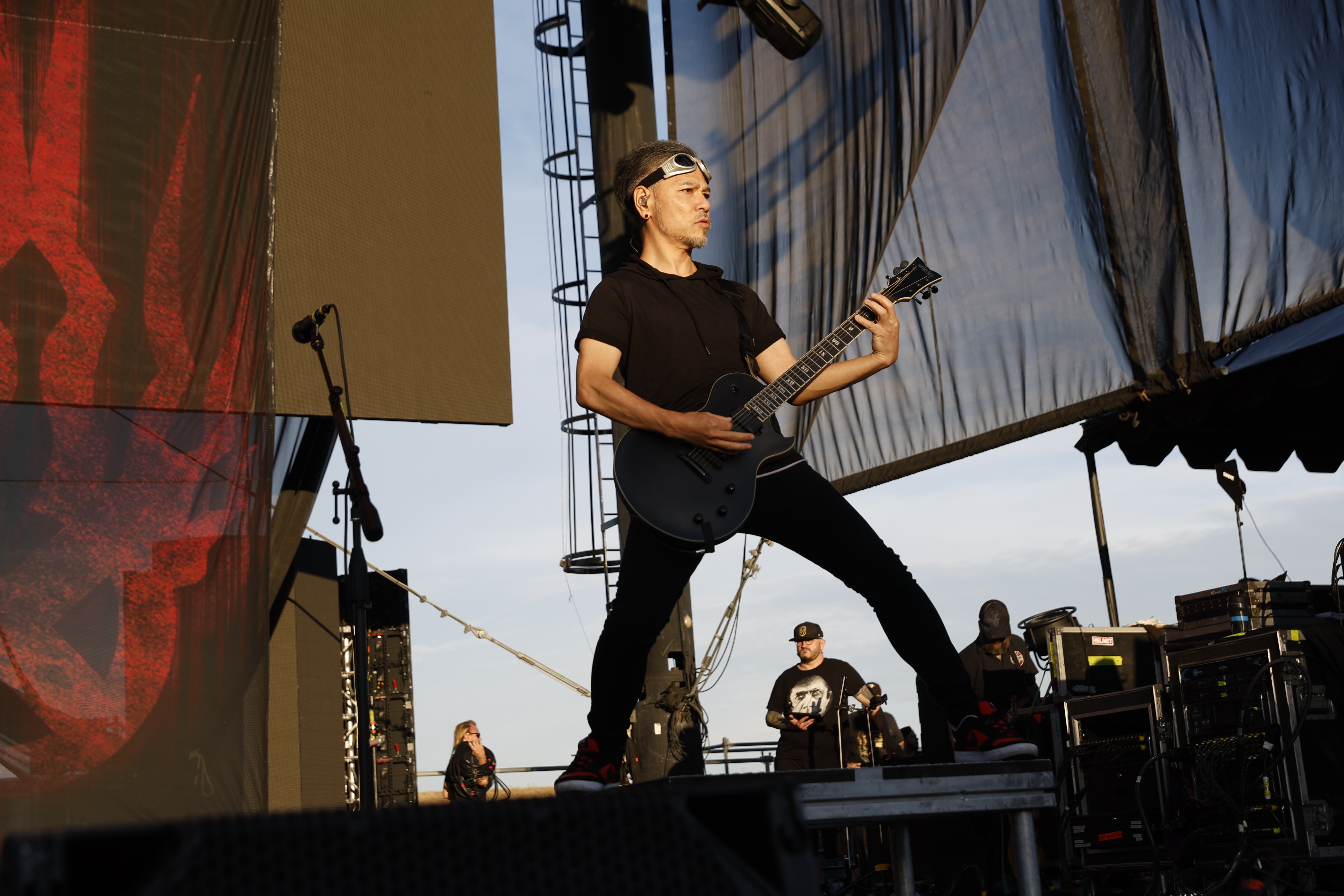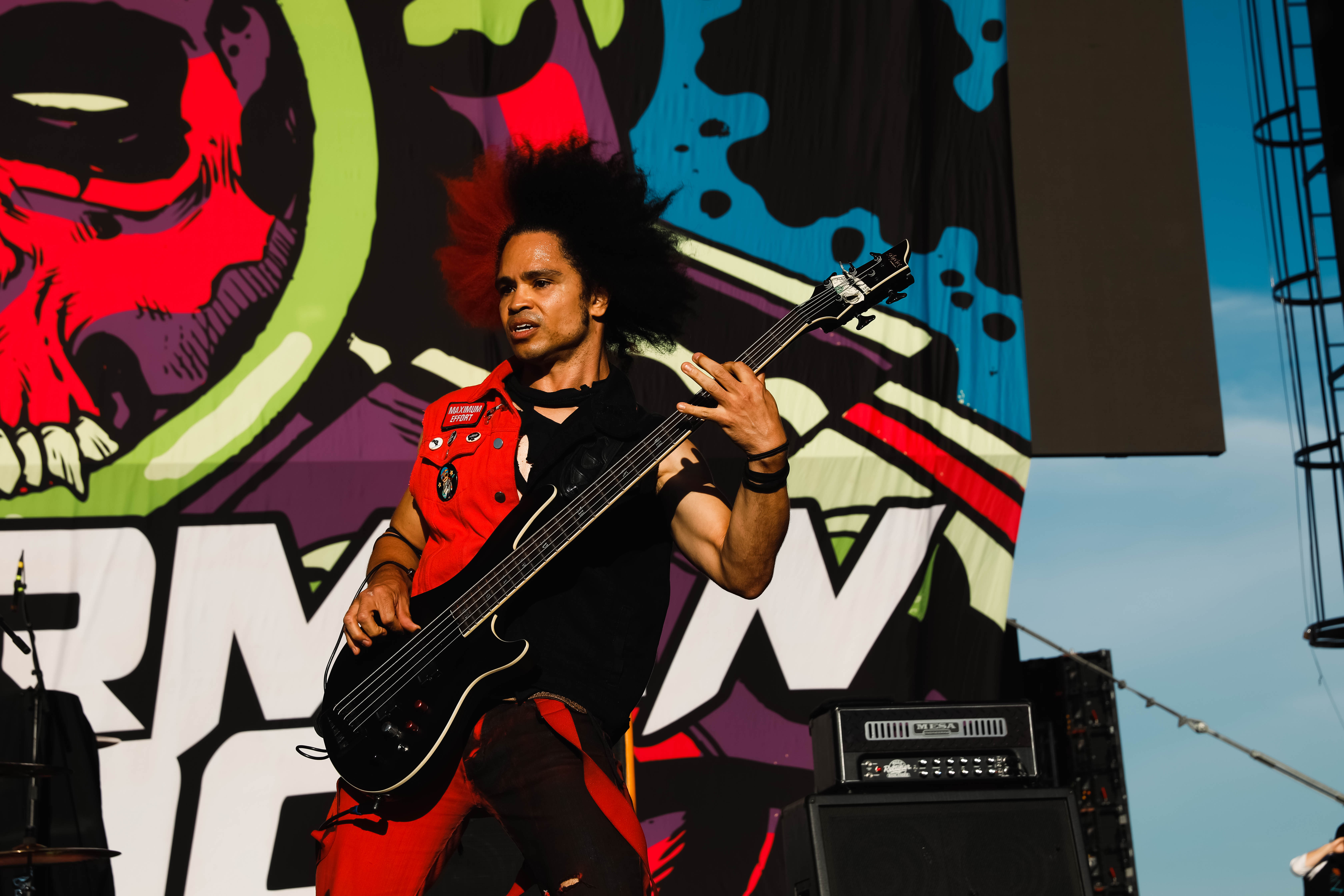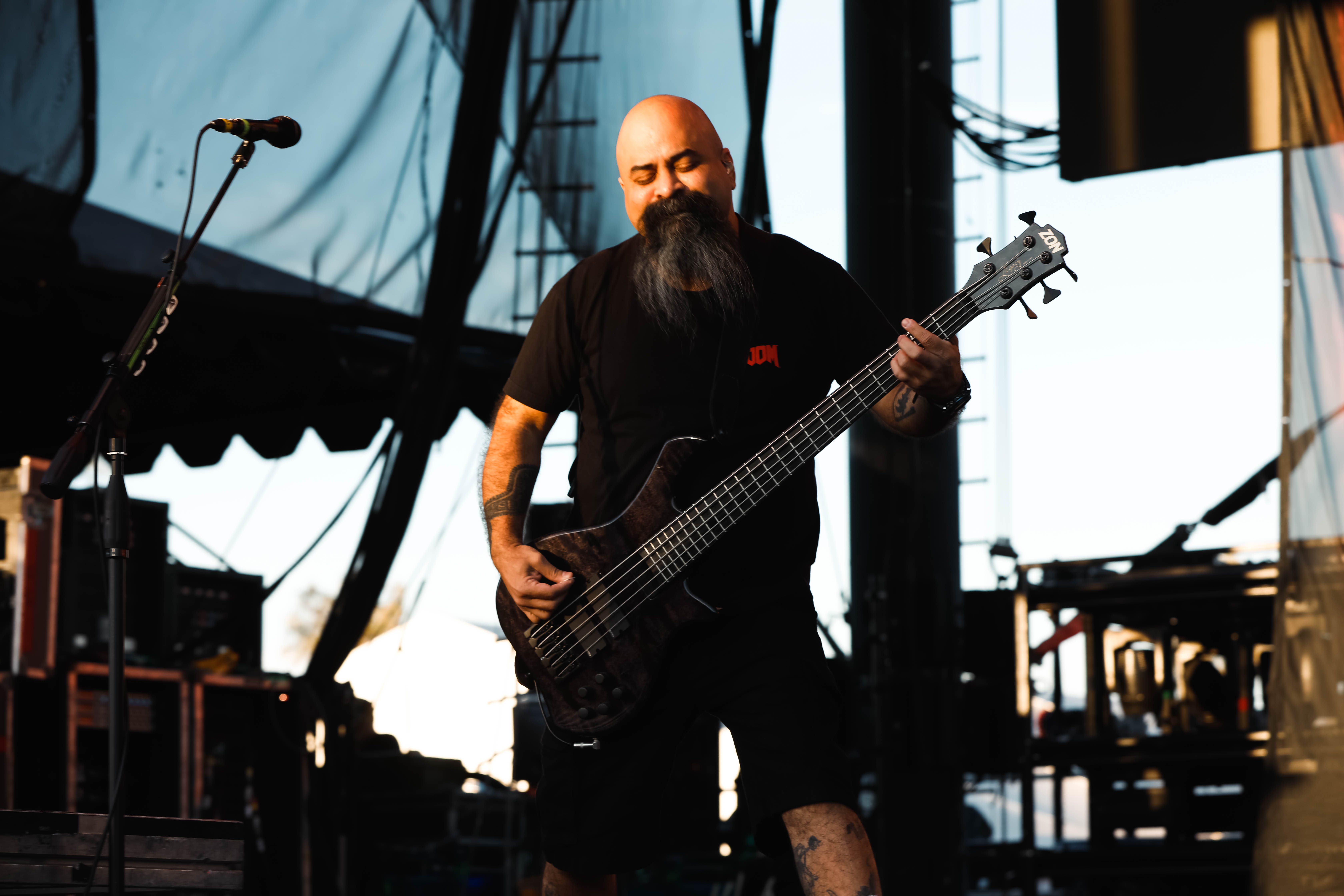 Second to last was the highly anticipated performance from Mudvayne for their first L.A. show in 12 years. Mudvayne were together for 14 years before taking a hiatus in 2010. Frontman Chad Gray and guitarist Greg Tribbett went on to continue with Hellyeah with former Pantera/Damageplan drummer Vinnie Paul of which they had joined when the group formed in 2006. Tribbett left the group in 2014/ With Paul’s passing in 2018, Hellyeah did one more tour with Stone Sour drummer Roy Mayorga honoring Paul’s life and legacy before disbanding in 2021 when Mudvayne reunited. Mudvayne is still three founding members Gray, Tribbett, drummer Matthew McDonough, however bassist Ryan Martinie joined in 1997 replacing original bassist Shawn Barclay who left just a year after the group formed. Also on guitar is touring member Marcus Rafferty who joined last year when the group reunited.