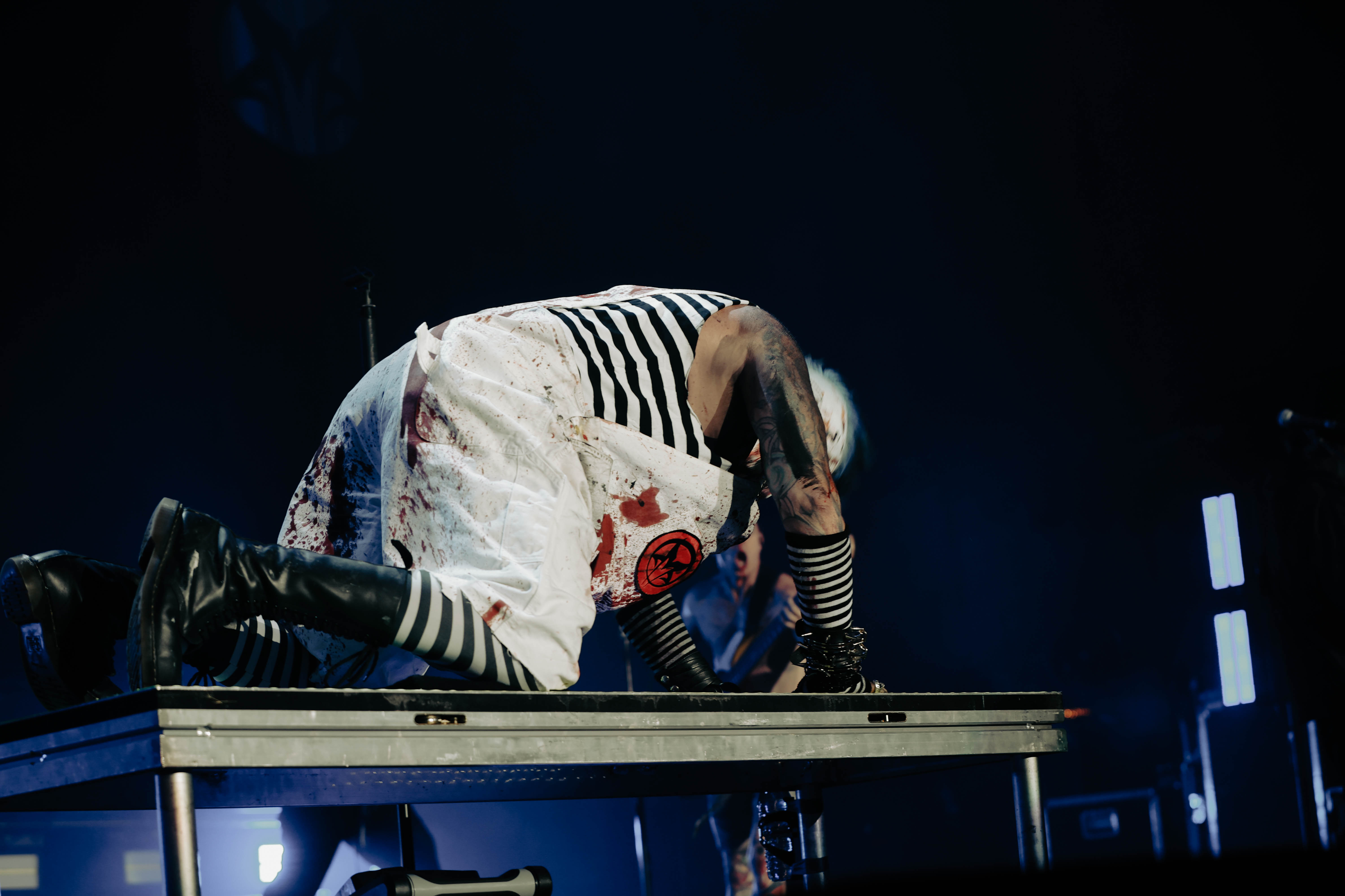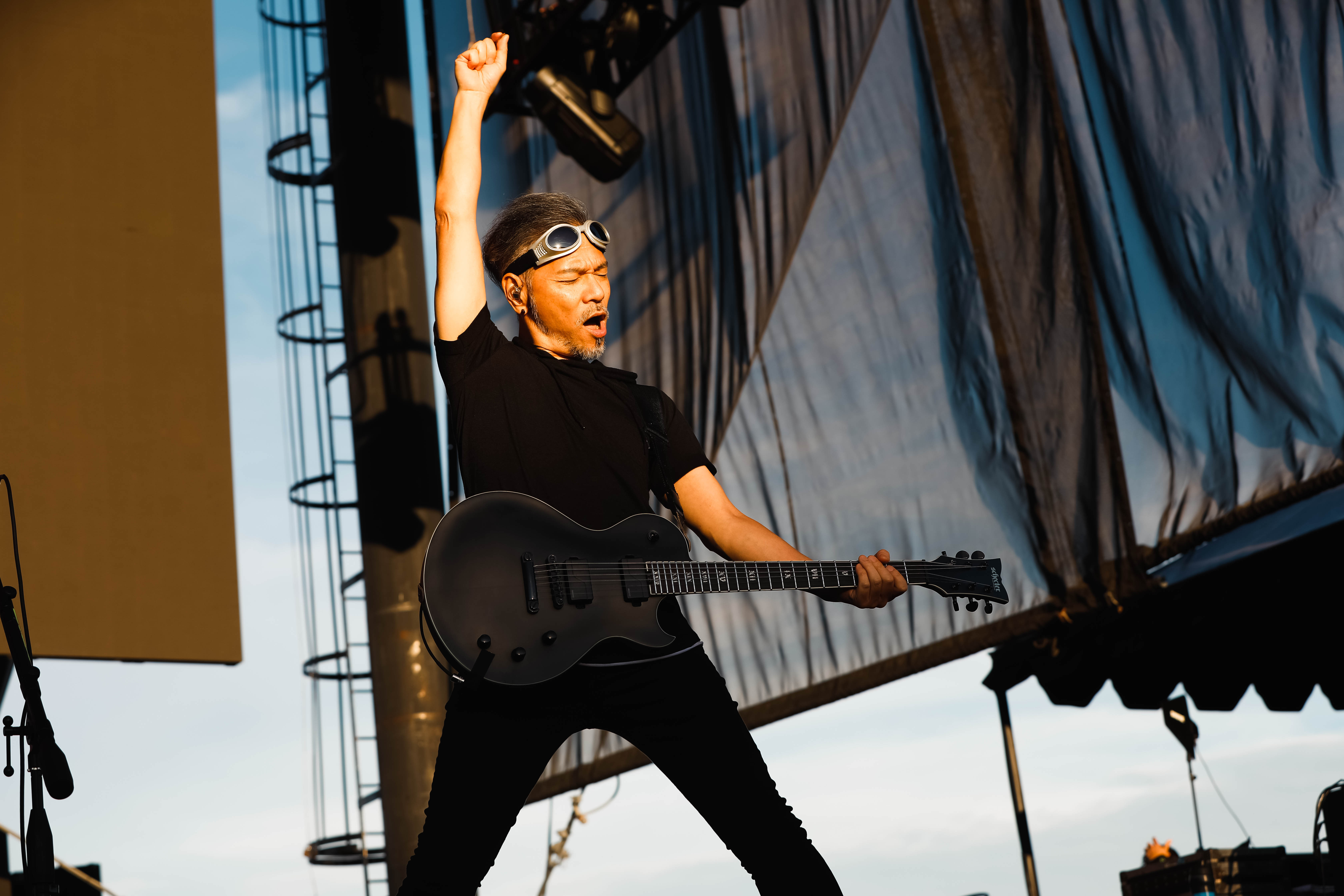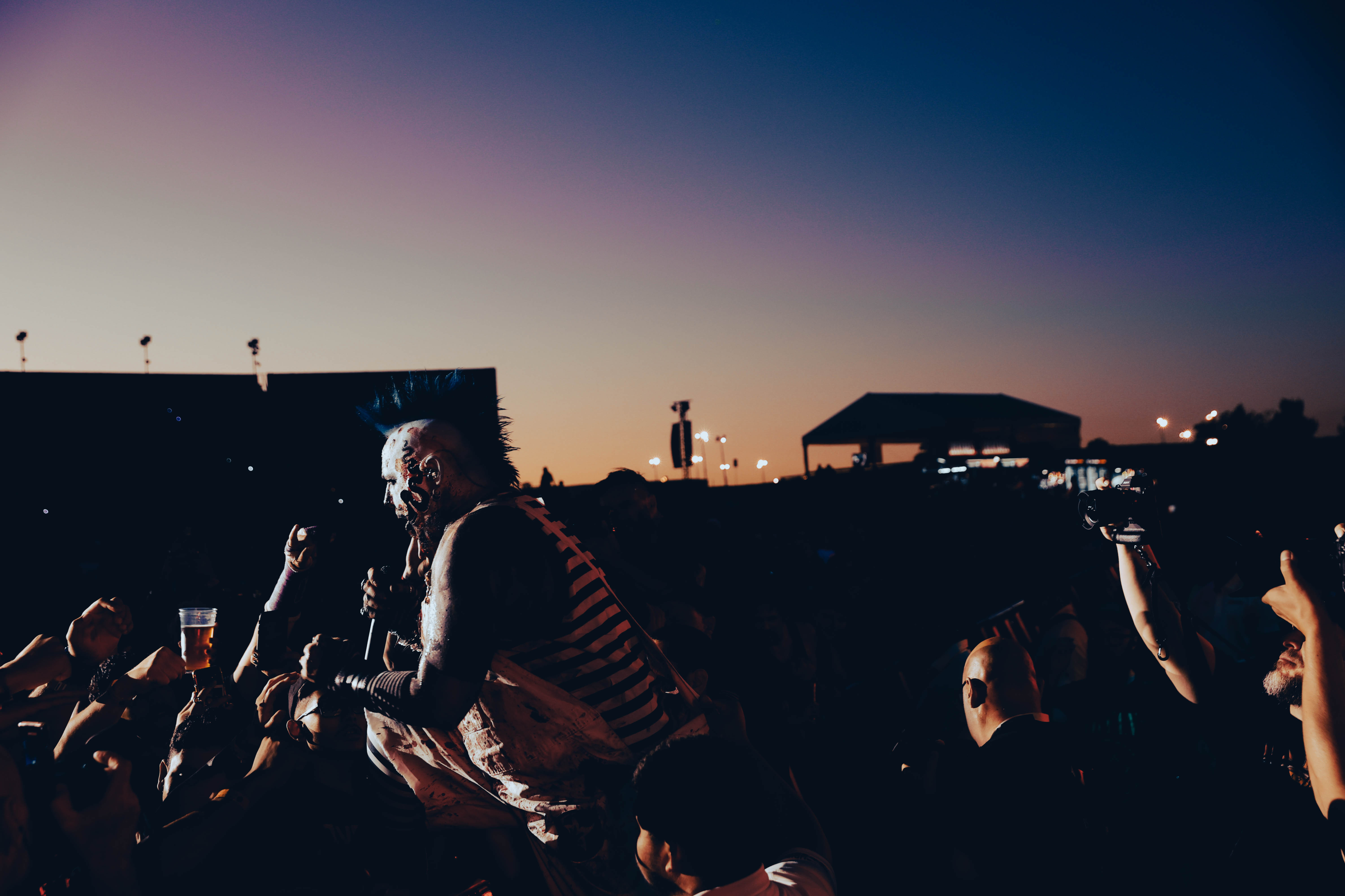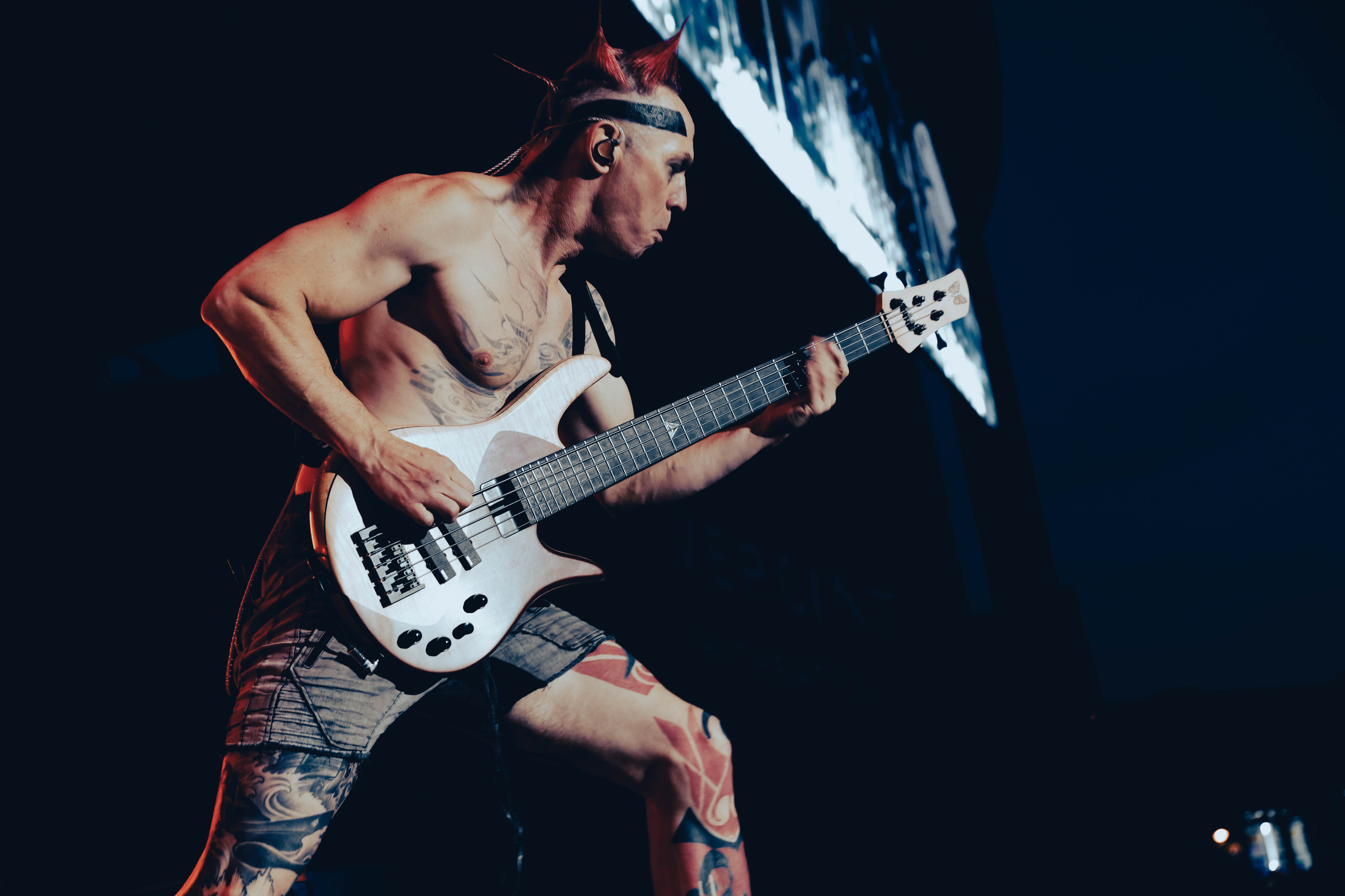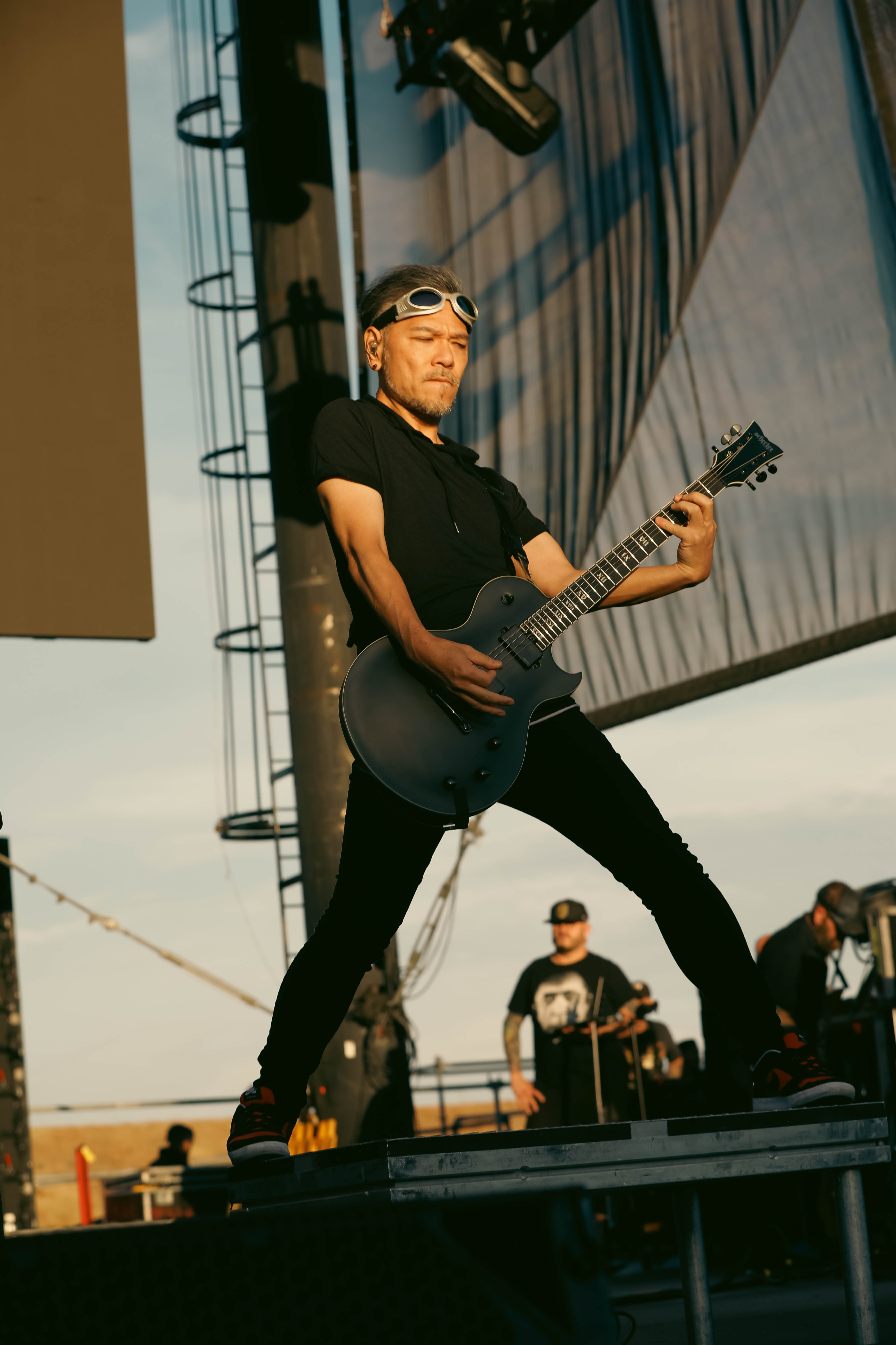 Second to last was the highly anticipated performance from Mudvayne for their first L.A. show in 12 years. Mudvayne were together for 14 years before taking a hiatus in 2010. Frontman Chad Gray and guitarist Greg Tribbett went on to continue with Hellyeah with former Pantera/Damageplan drummer Vinnie Paul of which they had joined when the group formed in 2006. Tribbett left the group in 2014/ With Paul’s passing in 2018, Hellyeah did one more tour with Stone Sour drummer Roy Mayorga honoring Paul’s life and legacy before disbanding in 2021 when Mudvayne reunited. Mudvayne is still three founding members Gray, Tribbett, drummer Matthew McDonough, however bassist Ryan Martinie joined in 1997 replacing original bassist Shawn Barclay who left just a year after the group formed. Also on guitar is touring member Marcus Rafferty who joined last year when the group reunited.