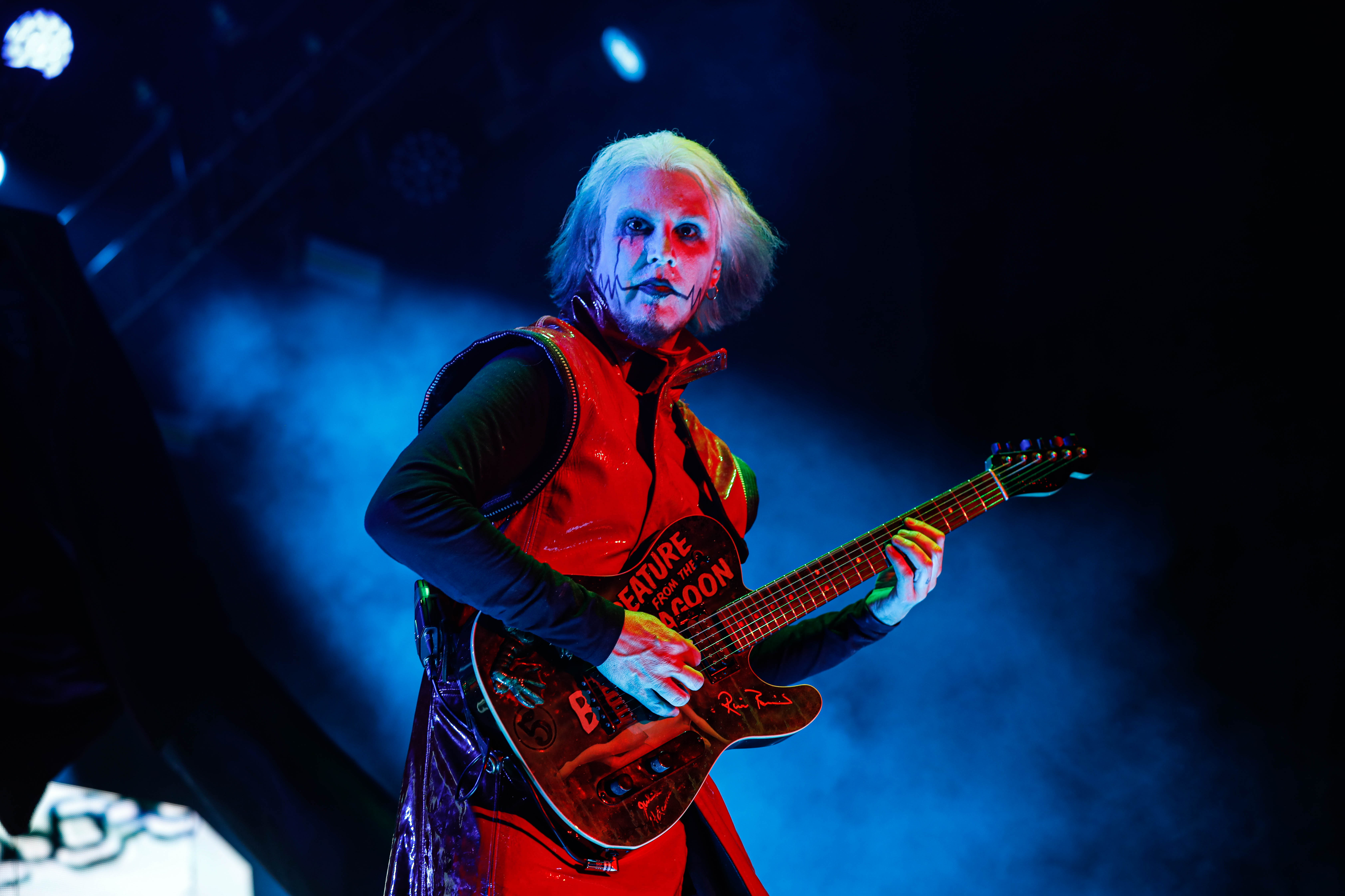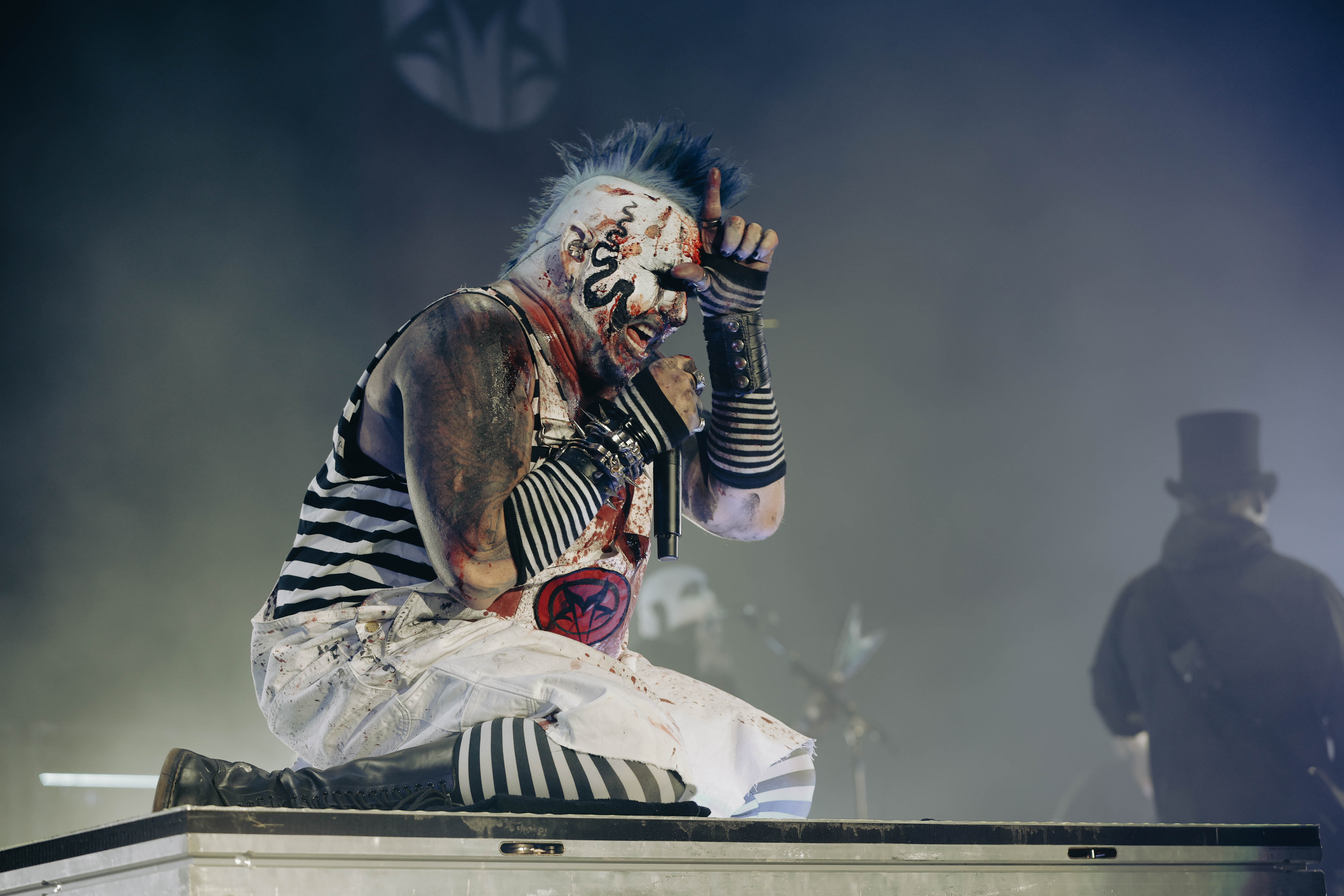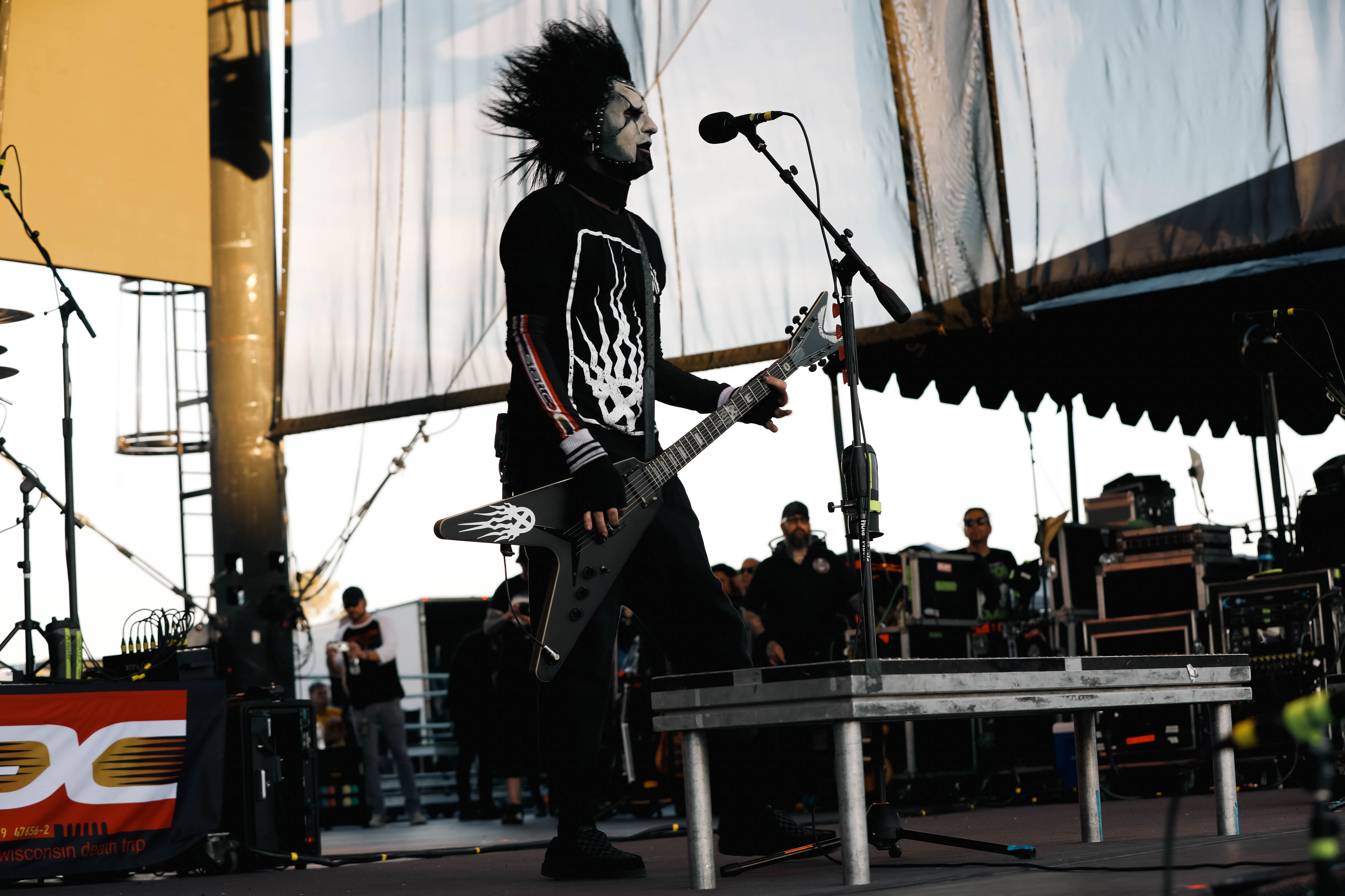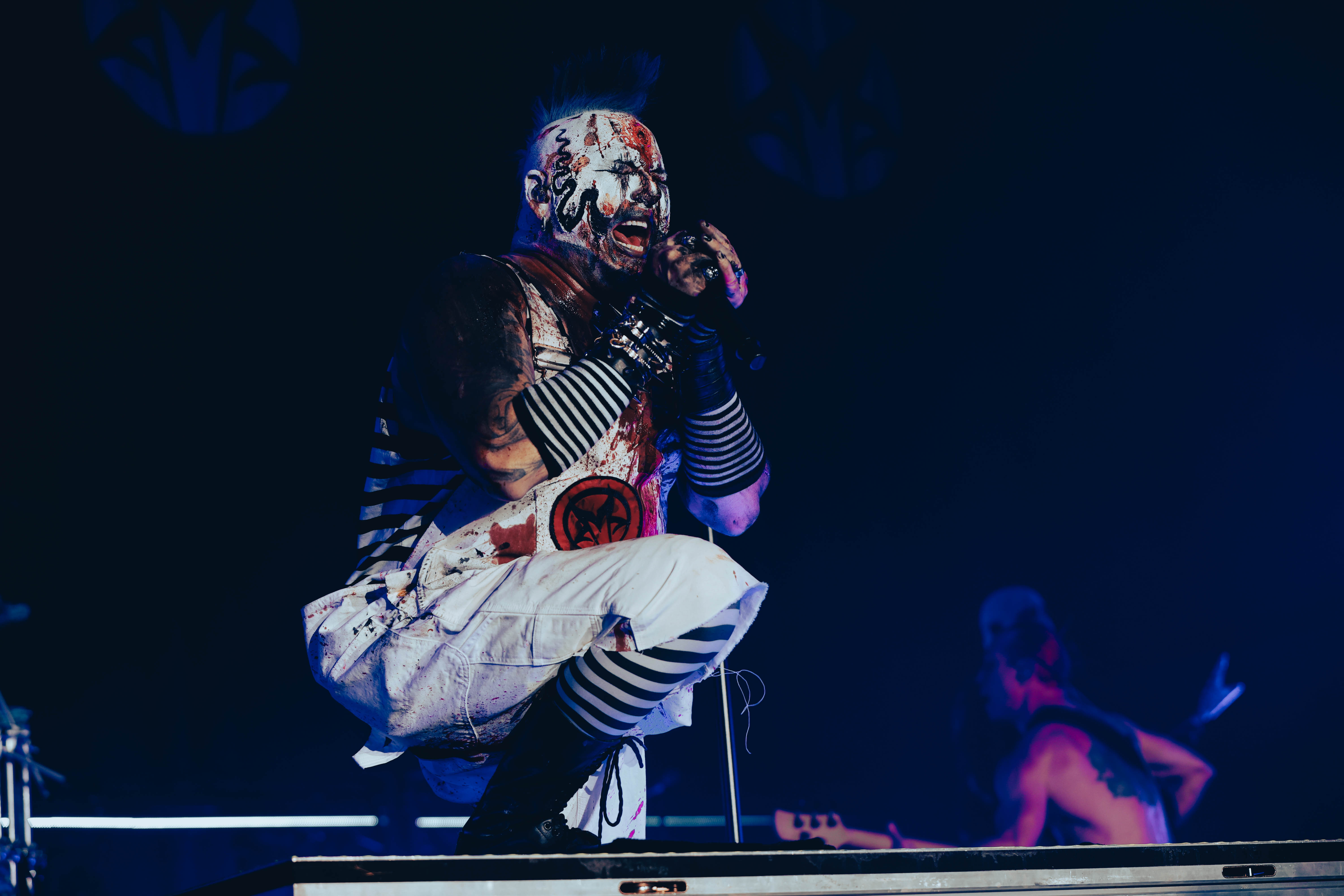 Mudvayne performs dressed in horror-movie style outfits. The 12-song set opened with “Dig,” and included “Death Blooms,” “World So Cold,” and “Happy?”