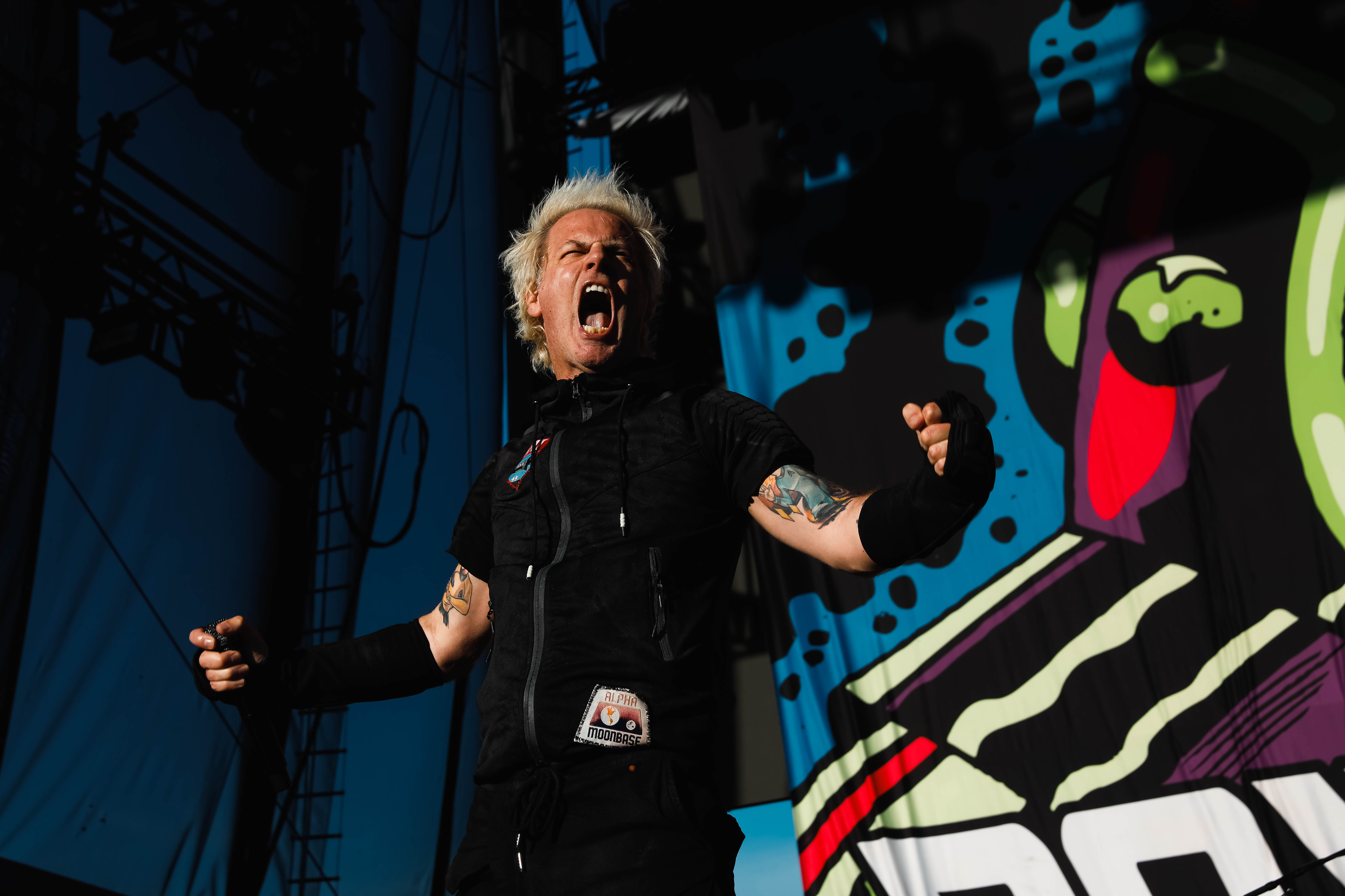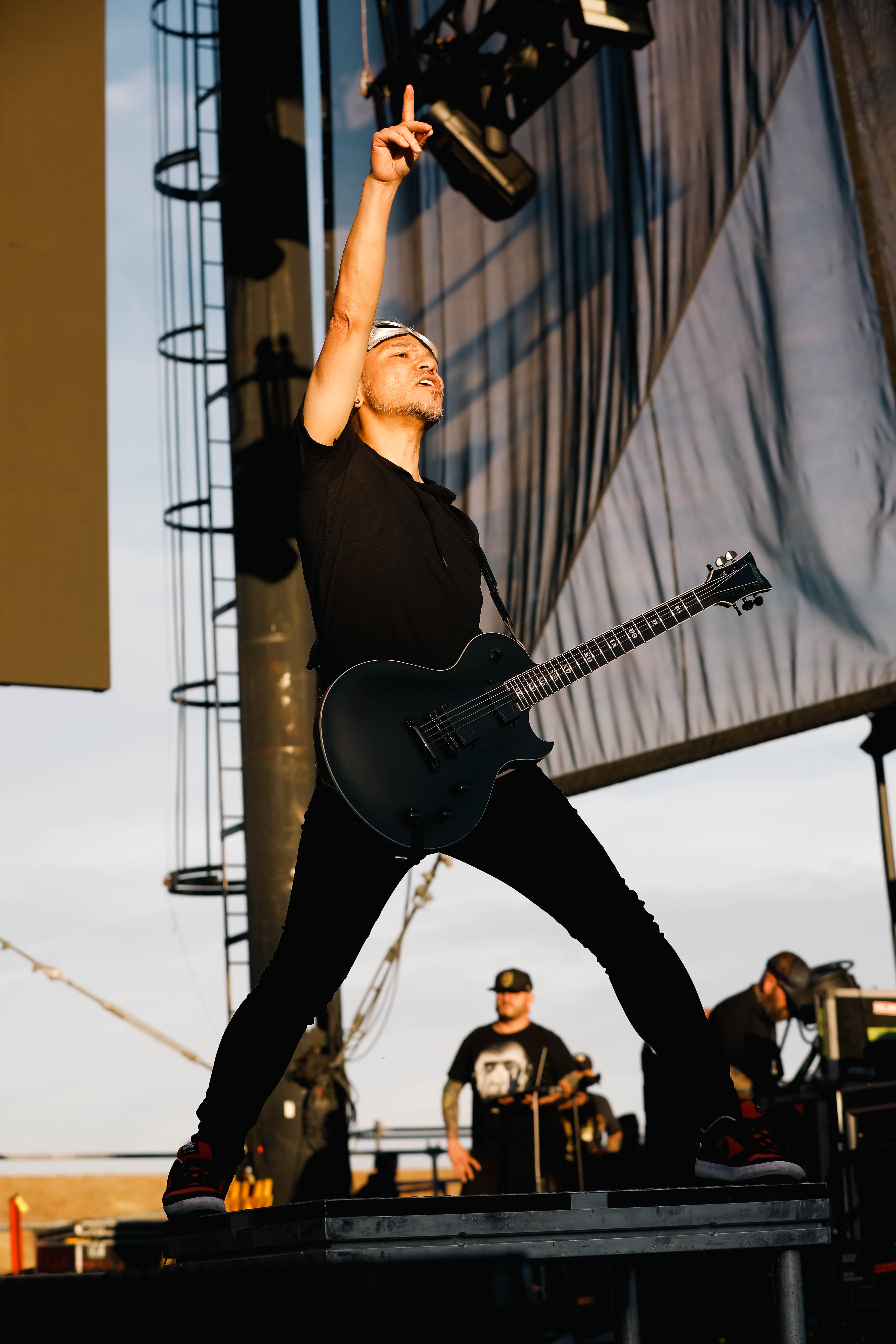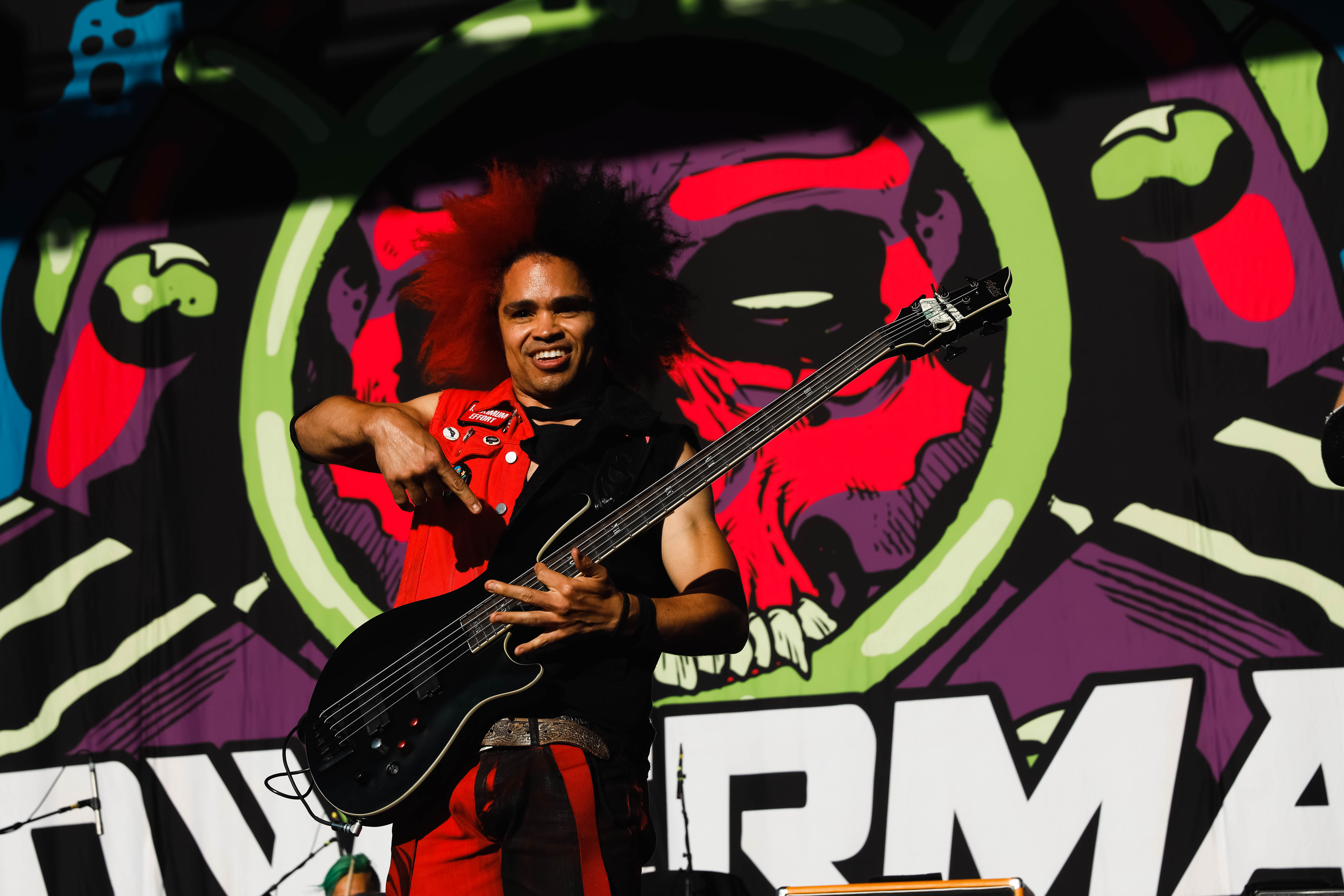 Next up was Static-X. Static-X formed in 1994 with Wayne Static (Lead vocals/ Guitar), bassists Tony Campos, guitarist Koichi Fukuda, and drummer Ken Jay. The original lineup remained together for six years. From 2010-2012 the group was on hiatus then Static reformed the group with new members before going solo until his passing in 2014. In 2018/19 the surviving founding members reformed the band with a new singer/guitarist Xer0 to keep Static’s legacy and music alive. Xer0 recreates Static’s signature look with a mask and similar hair style. Static-X played a set of seven songs including “Love Dump,” “I’m With Stupid,” and “Push It.”