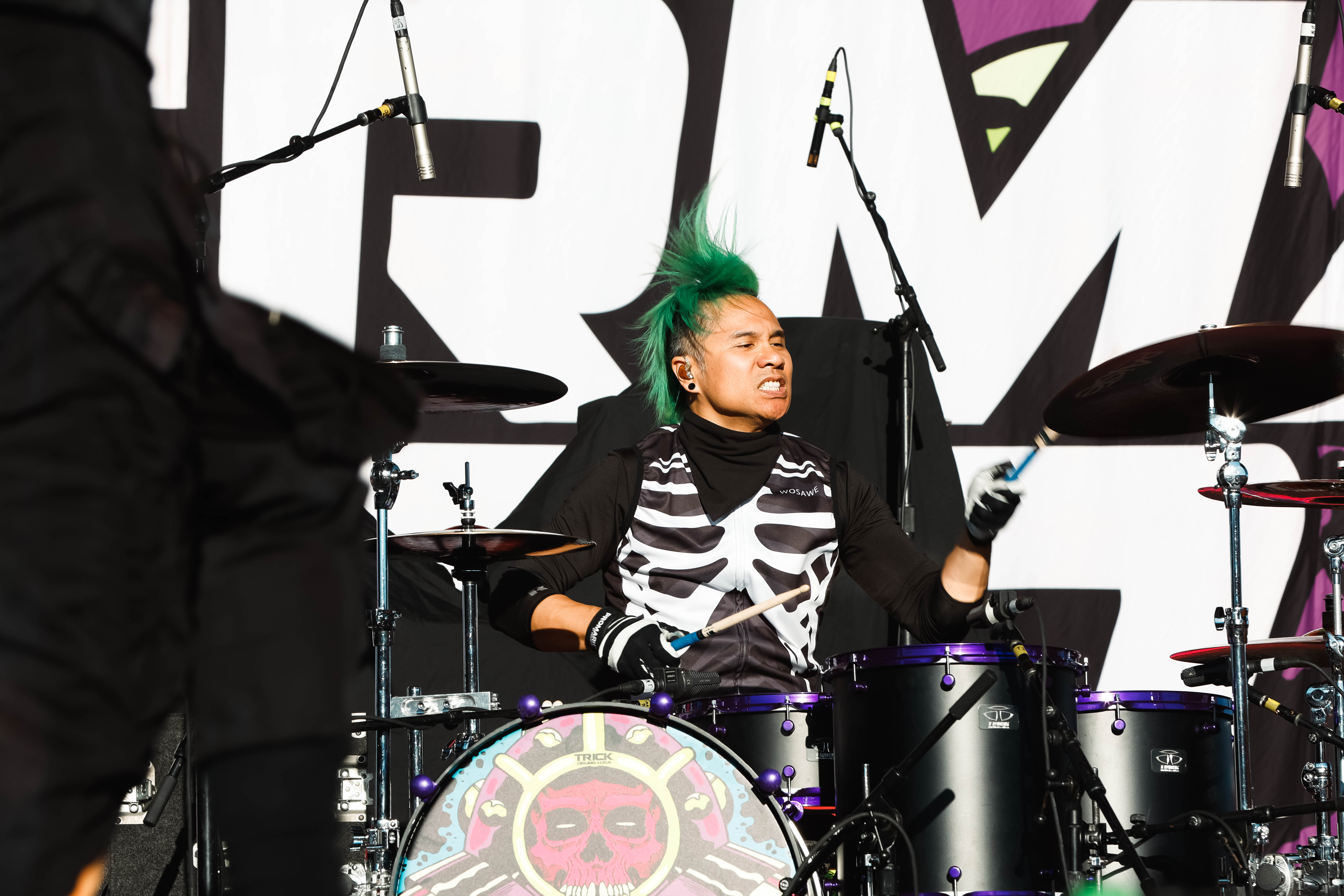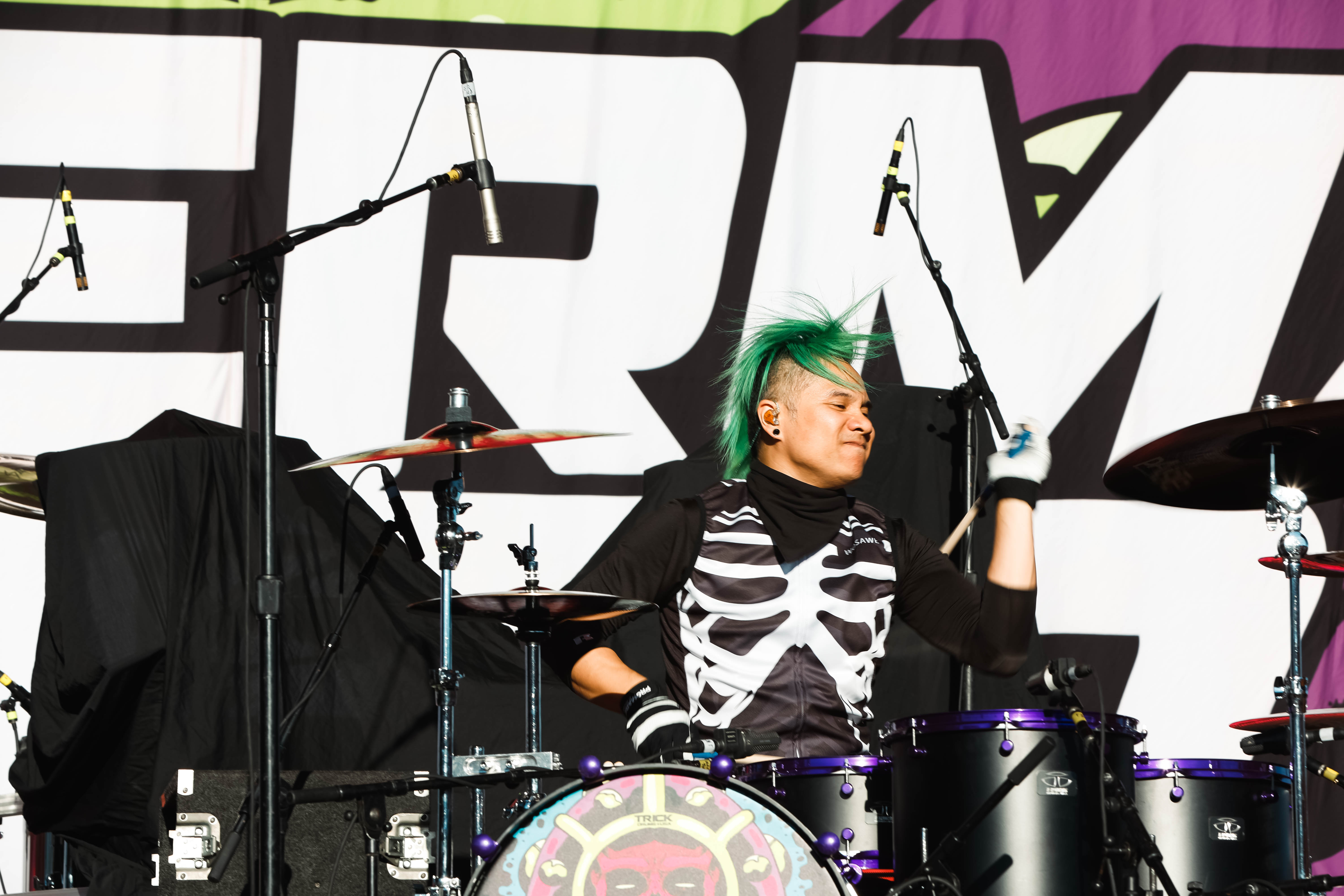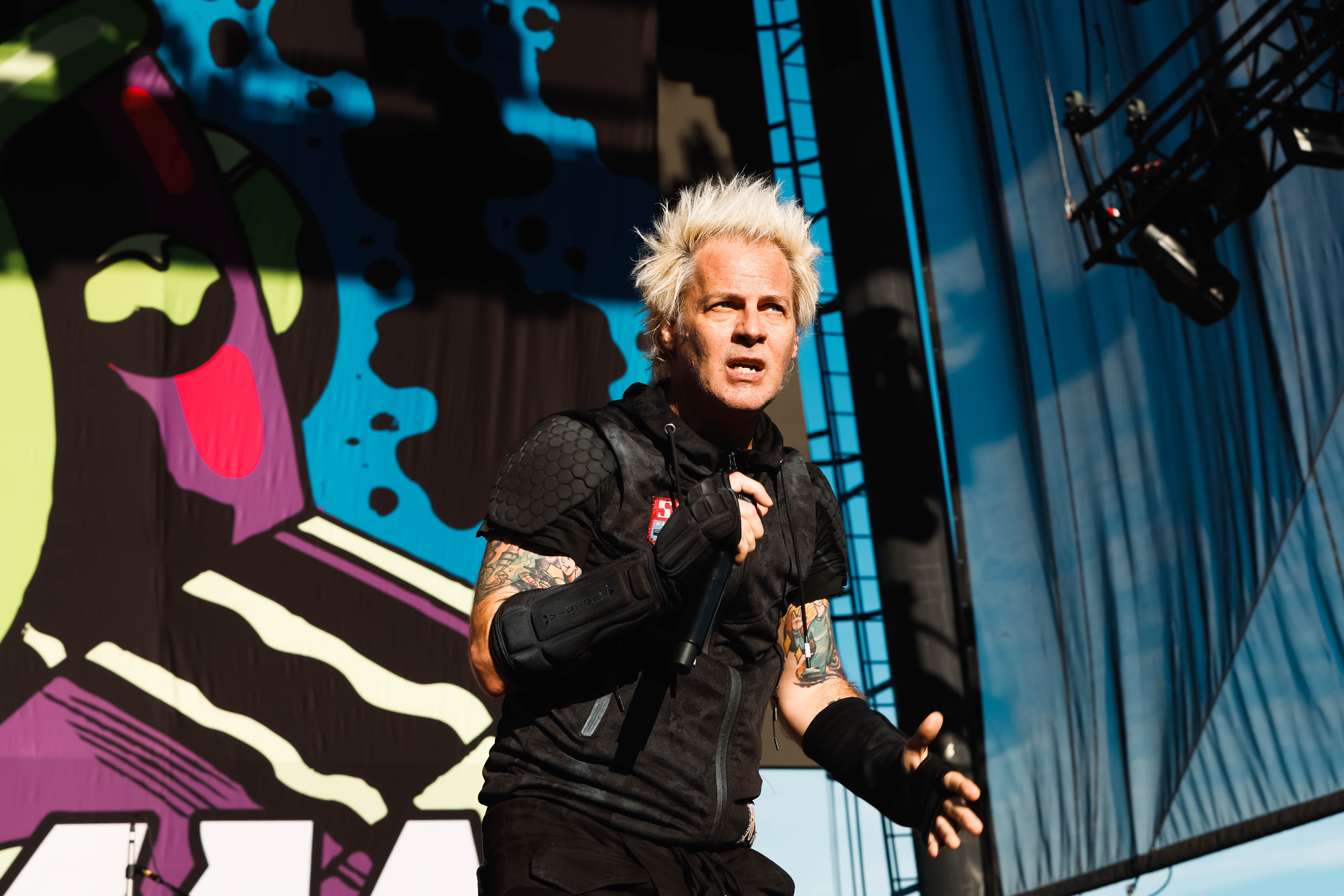Next up was Static-X. Static-X formed in 1994 with Wayne Static (Lead vocals/ Guitar), bassists Tony Campos, guitarist Koichi Fukuda, and drummer Ken Jay. The original lineup remained together for six years. From 2010-2012 the group was on hiatus then Static reformed the group with new members before going solo until his passing in 2014. In 2018/19 the surviving founding members reformed the band with a new singer/guitarist Xer0 to keep Static’s legacy and music alive. Xer0 recreates Static’s signature look with a mask and similar hair style. Static-X played a set of seven songs including “Love Dump,” “I’m With Stupid,” and “Push It.”