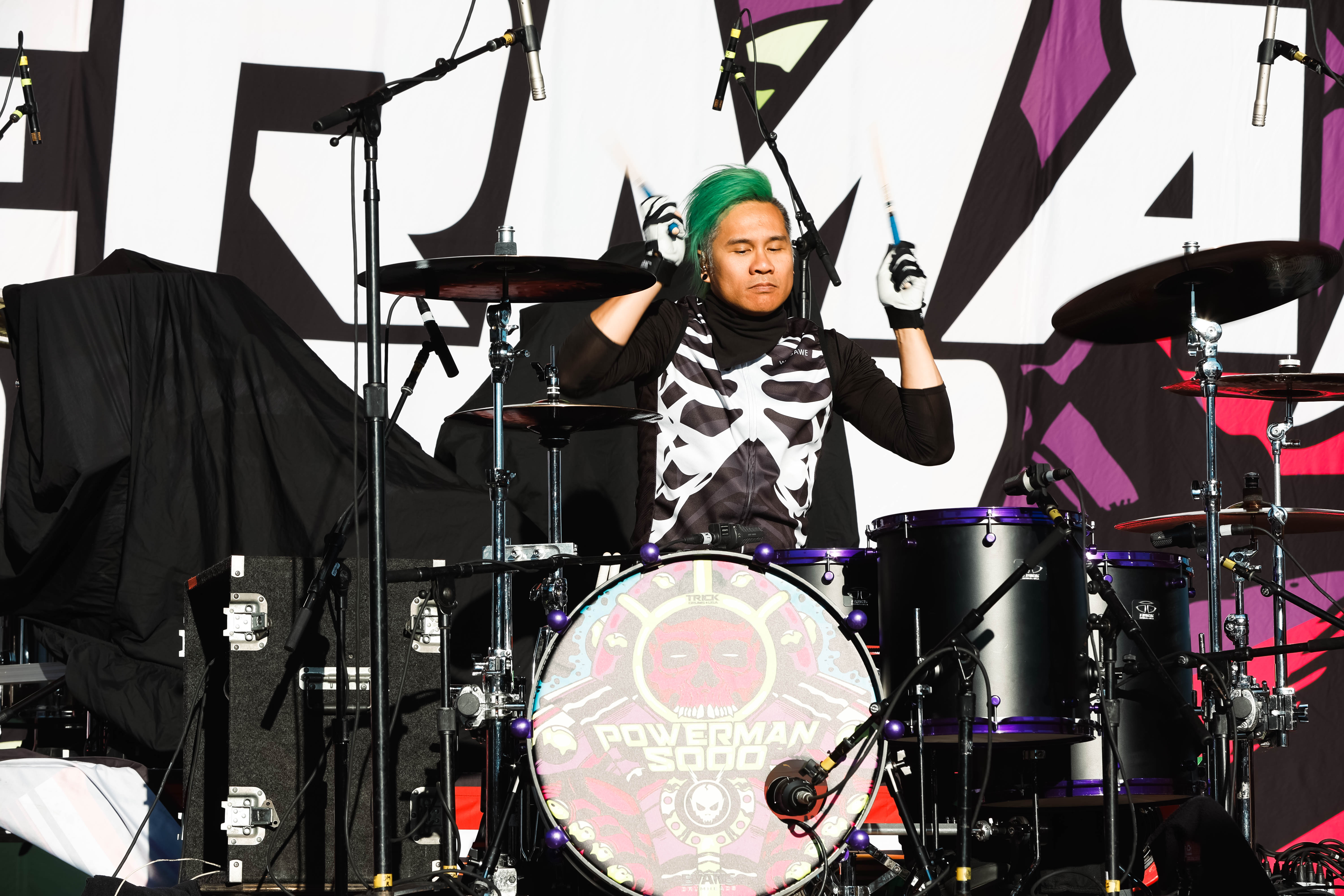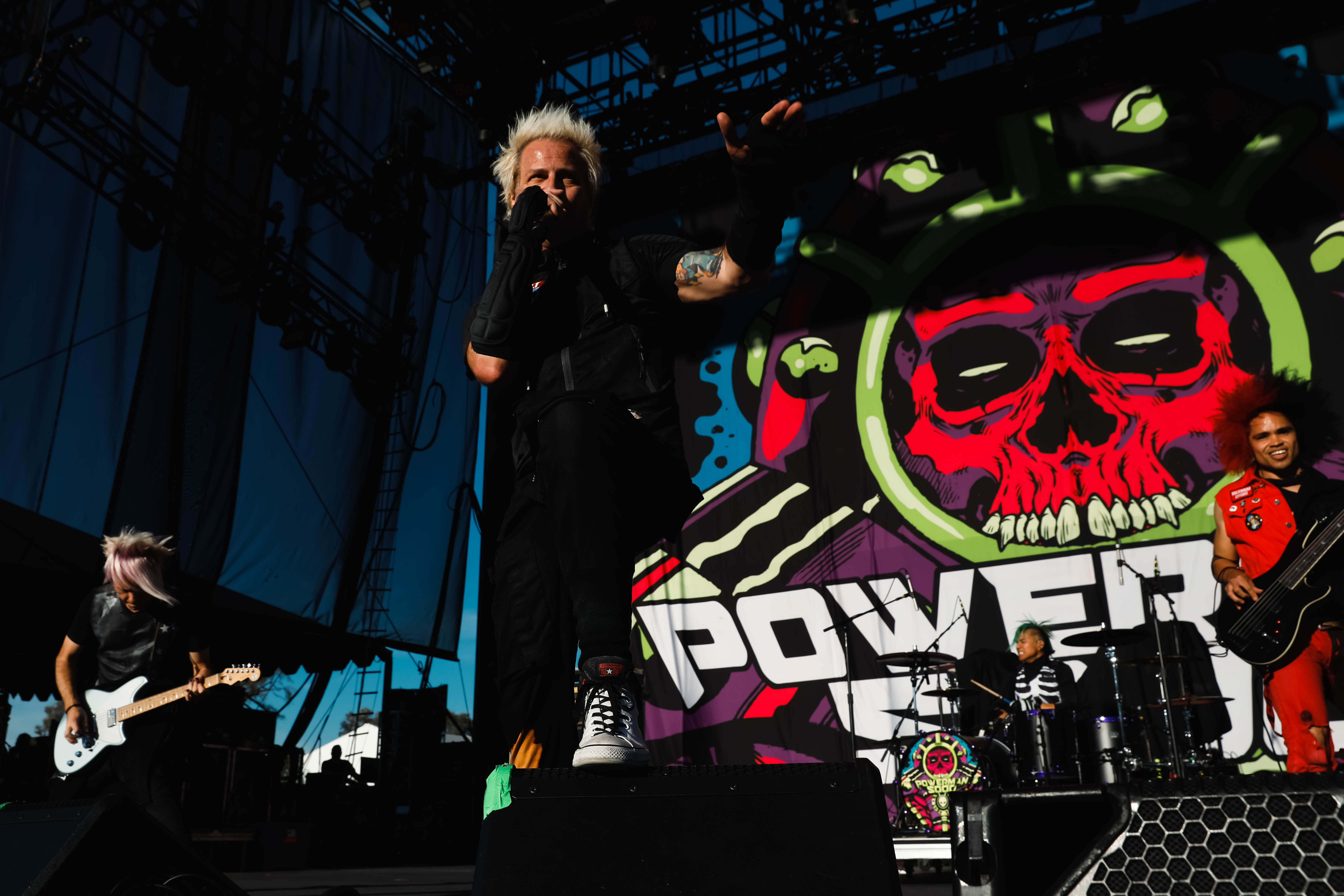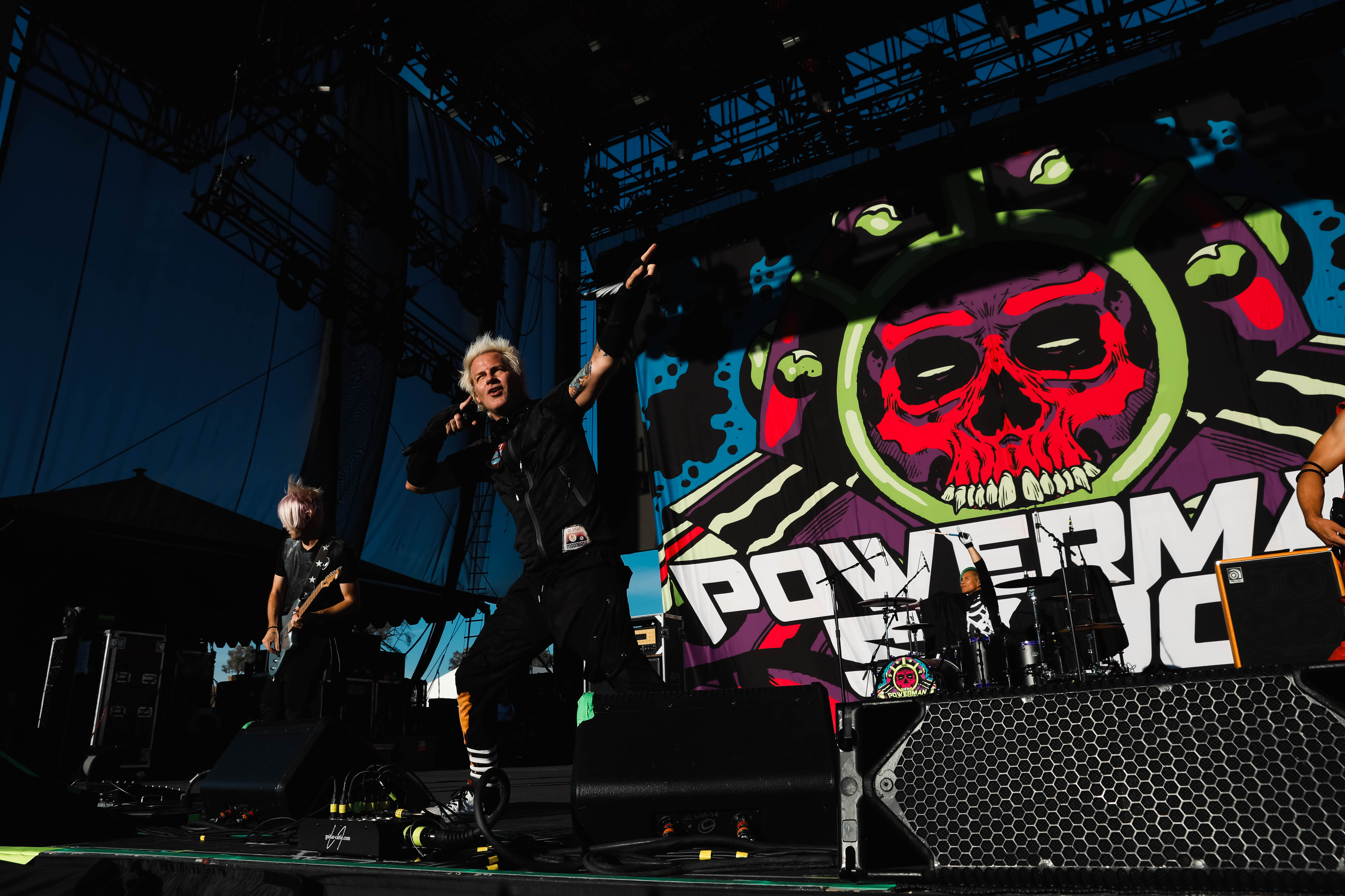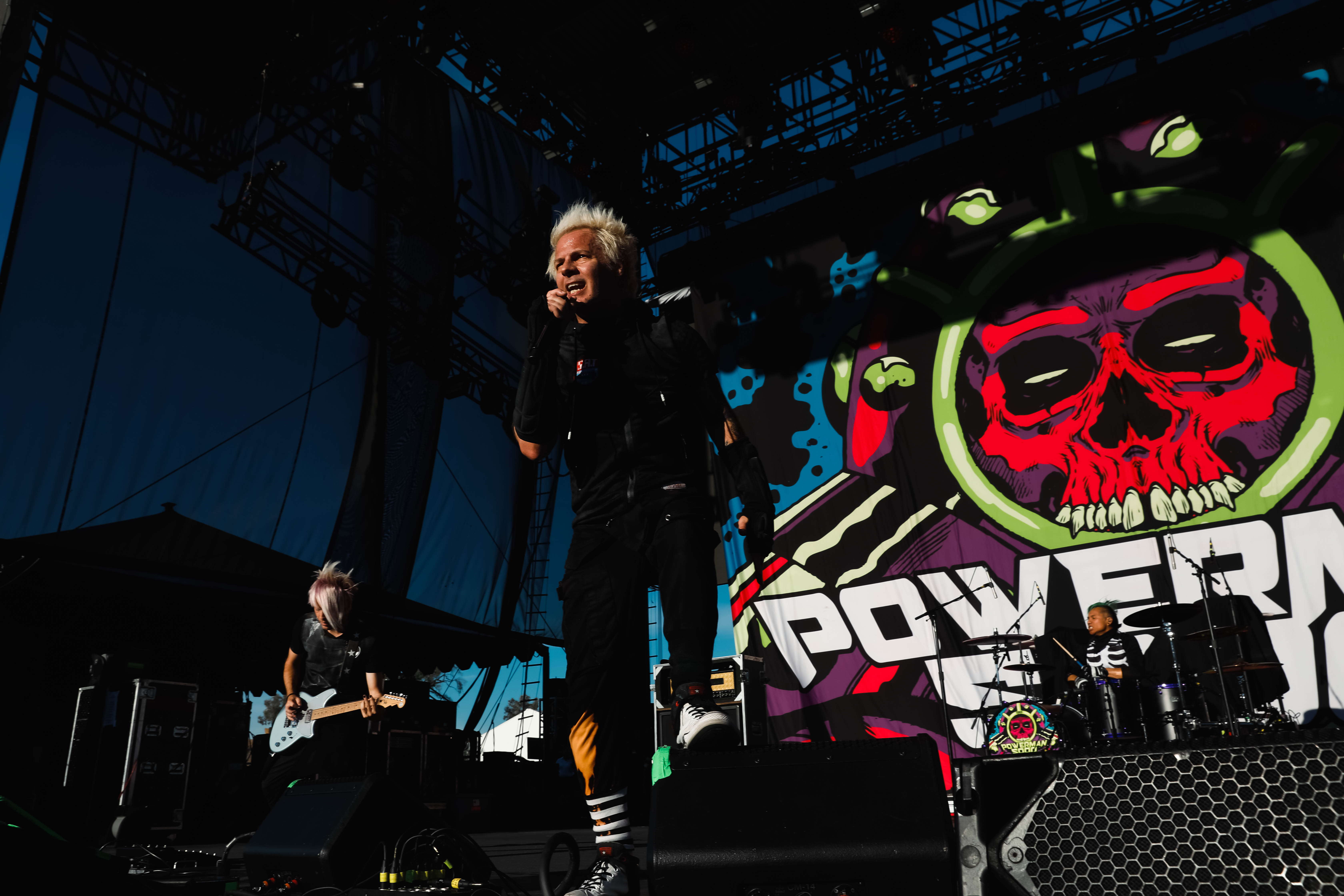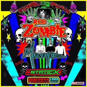 The Shock-Rock/ Hard-Rock tour of a lifetime came to the Five Point Amphitheater in Irvine, CA last night. The Freaks on Parade Tour features a headline set from Rob Zombie and performances from Mudvayne, Static-X, and Powerman 5000. This nearly 5 hour show began with Powerman 5000 led by Zombie’s younger brother Spider One, the only member of the group through each lineup since forming in 1991. The current band is lead vocalists Spider One, drummer DJ Rattan, bassist Murv3, rhythm guitarist Taylor Haycraft, and lead guitarist Dan Schiz. Their electrifying set of eight songs included “Bombshell,” “Supernova Goes Pop,” “When Worlds Collide,” and a cover of The White Stripes “Seven Nation Army.”