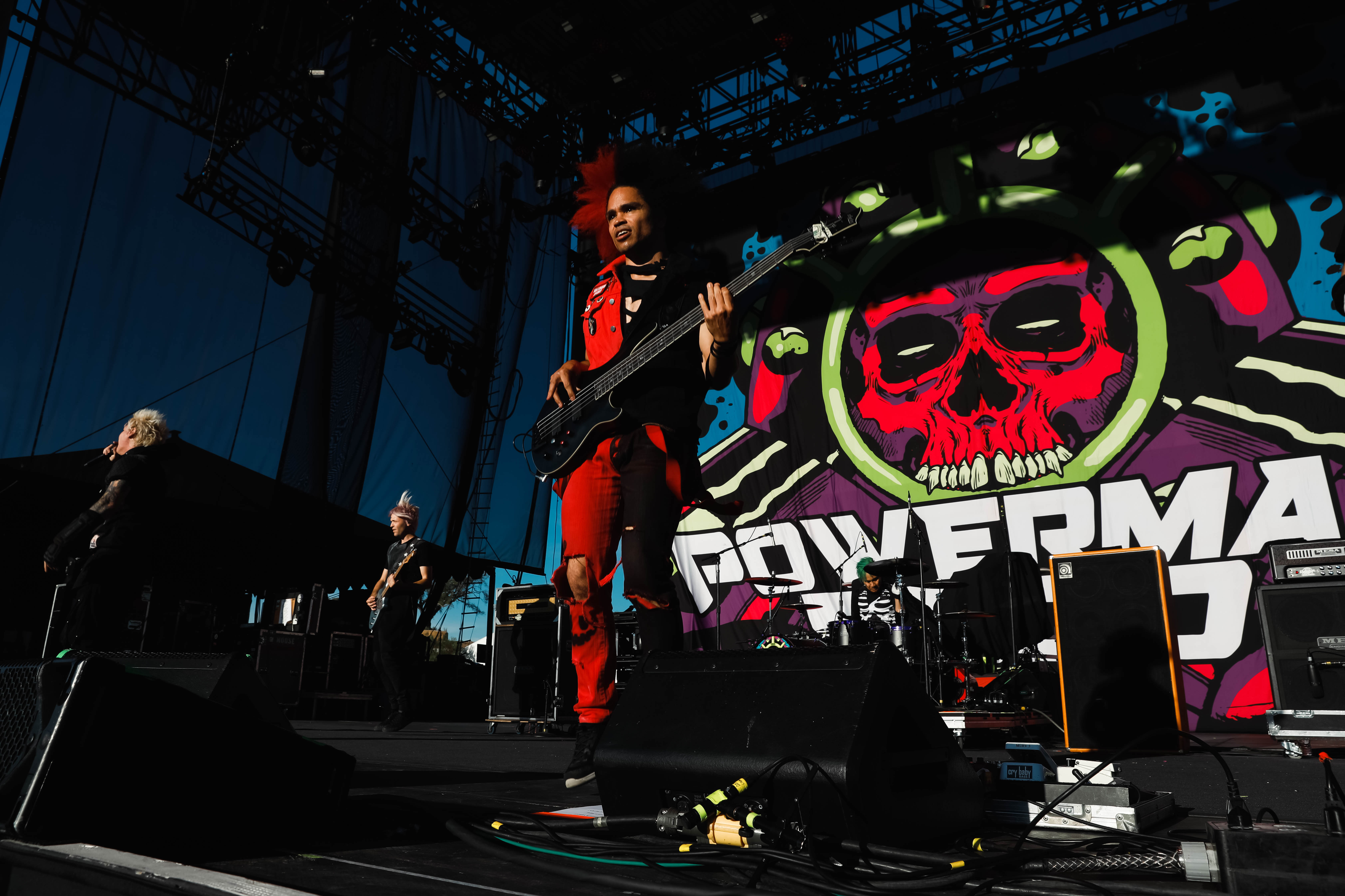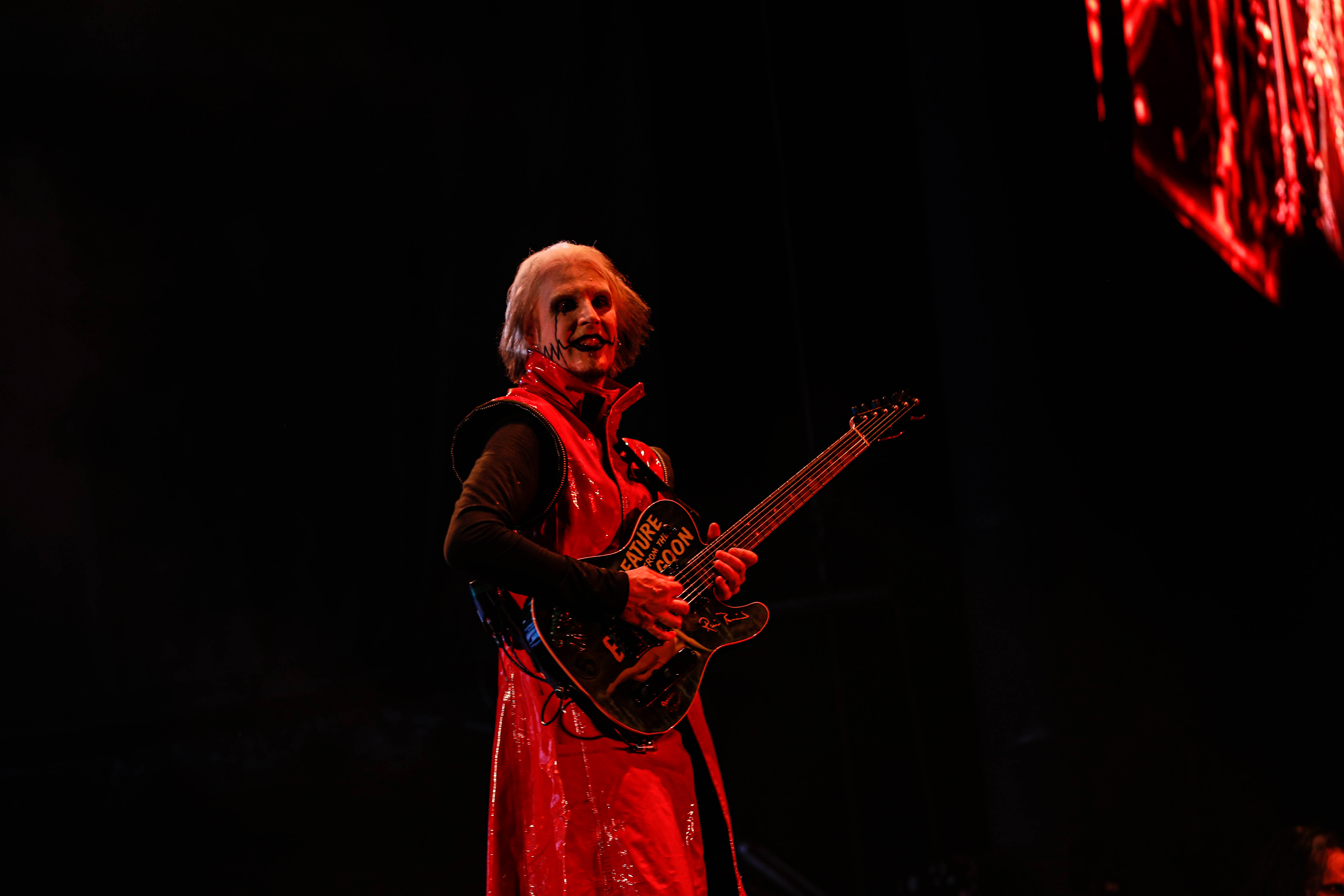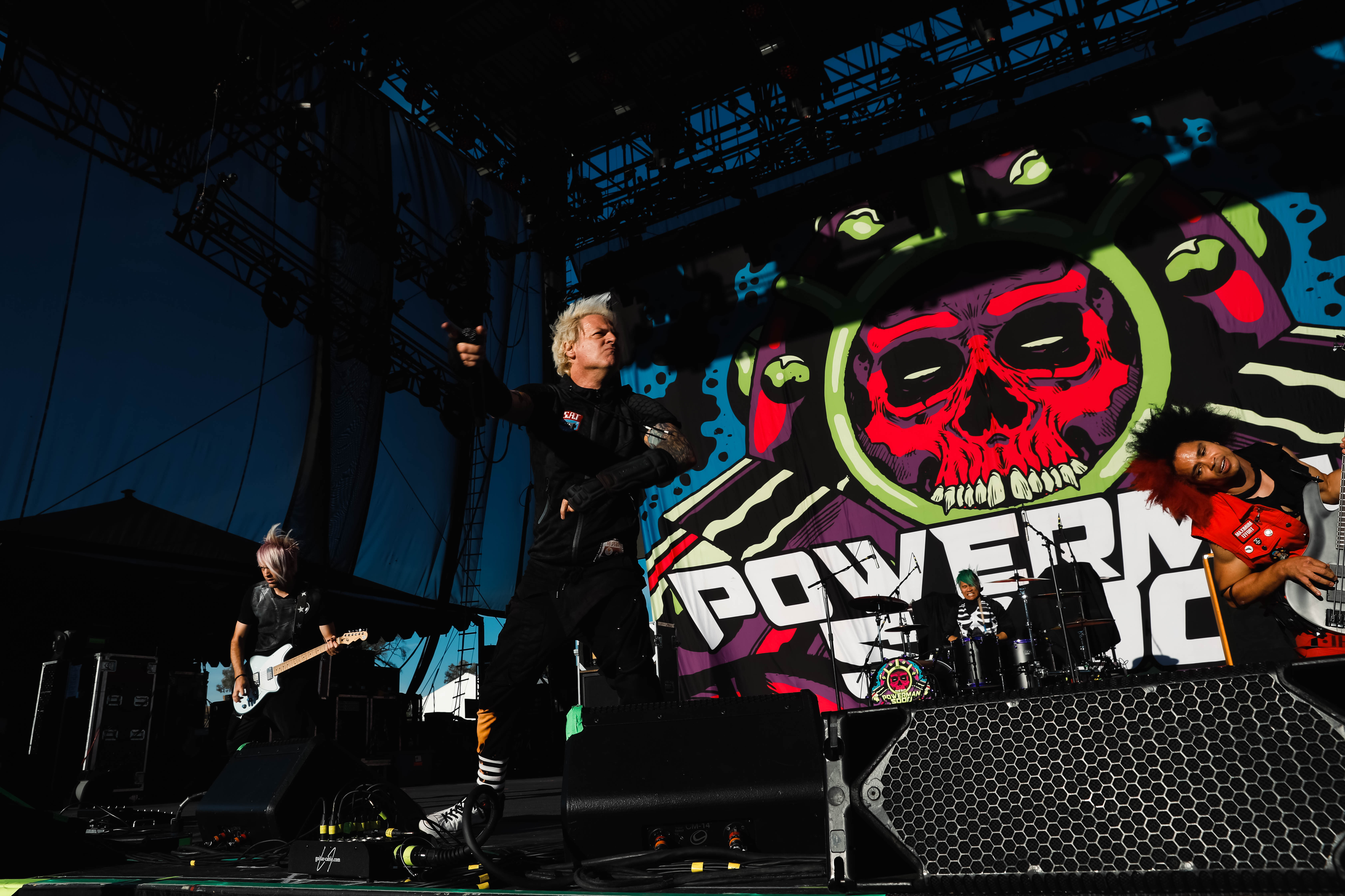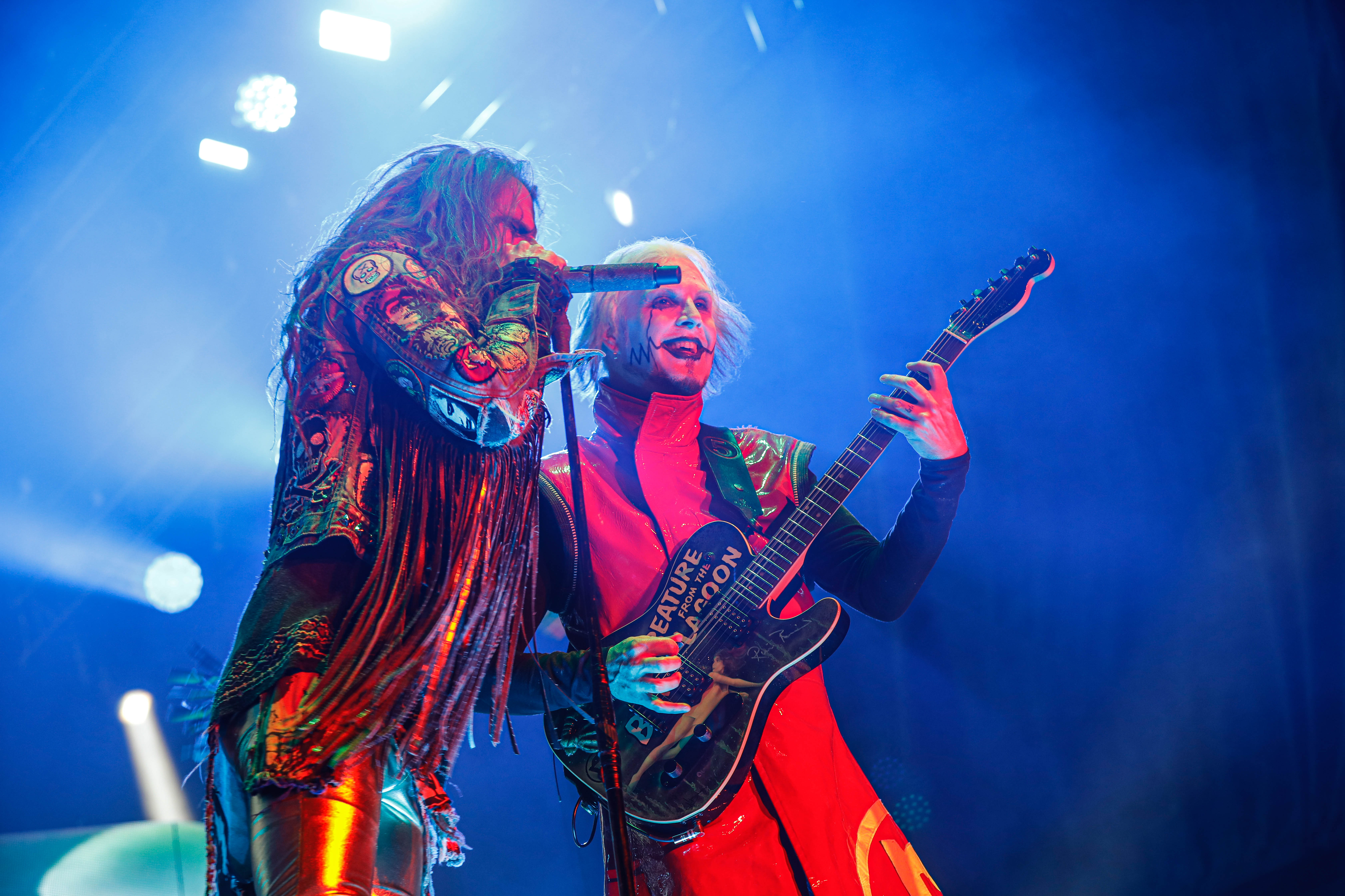 The Shock-Rock/ Hard-Rock tour of a lifetime came to the Five Point Amphitheater in Irvine, CA last night. The Freaks on Parade Tour features a headline set from Rob Zombie and performances from Mudvayne, Static-X, and Powerman 5000. This nearly 5 hour show began with Powerman 5000 led by Zombie’s younger brother Spider One, the only member of the group through each lineup since forming in 1991. The current band is lead vocalists Spider One, drummer DJ Rattan, bassist Murv3, rhythm guitarist Taylor Haycraft, and lead guitarist Dan Schiz. Their electrifying set of eight songs included “Bombshell,” “Supernova Goes Pop,” “When Worlds Collide,” and a cover of The White Stripes “Seven Nation Army.”