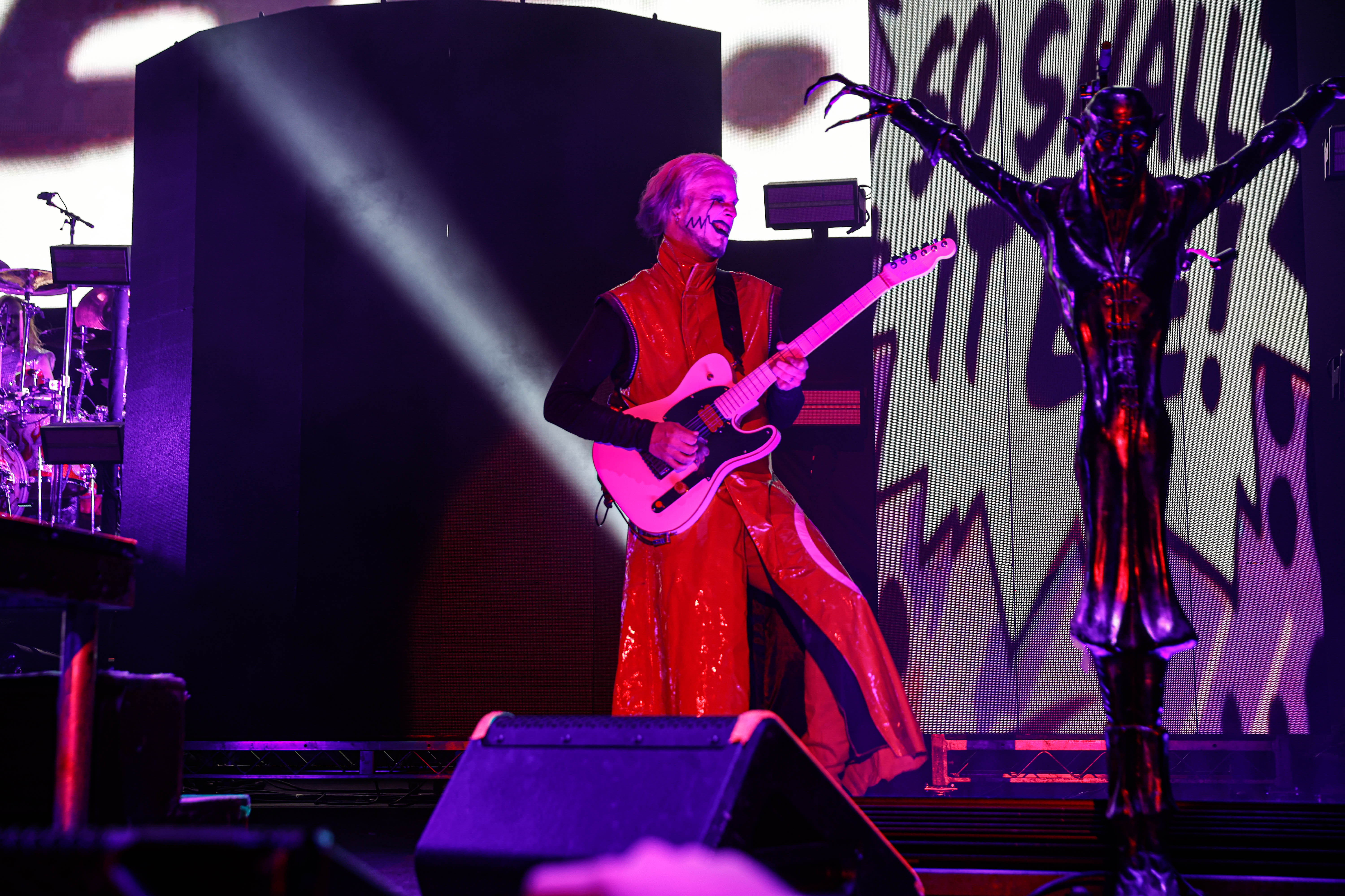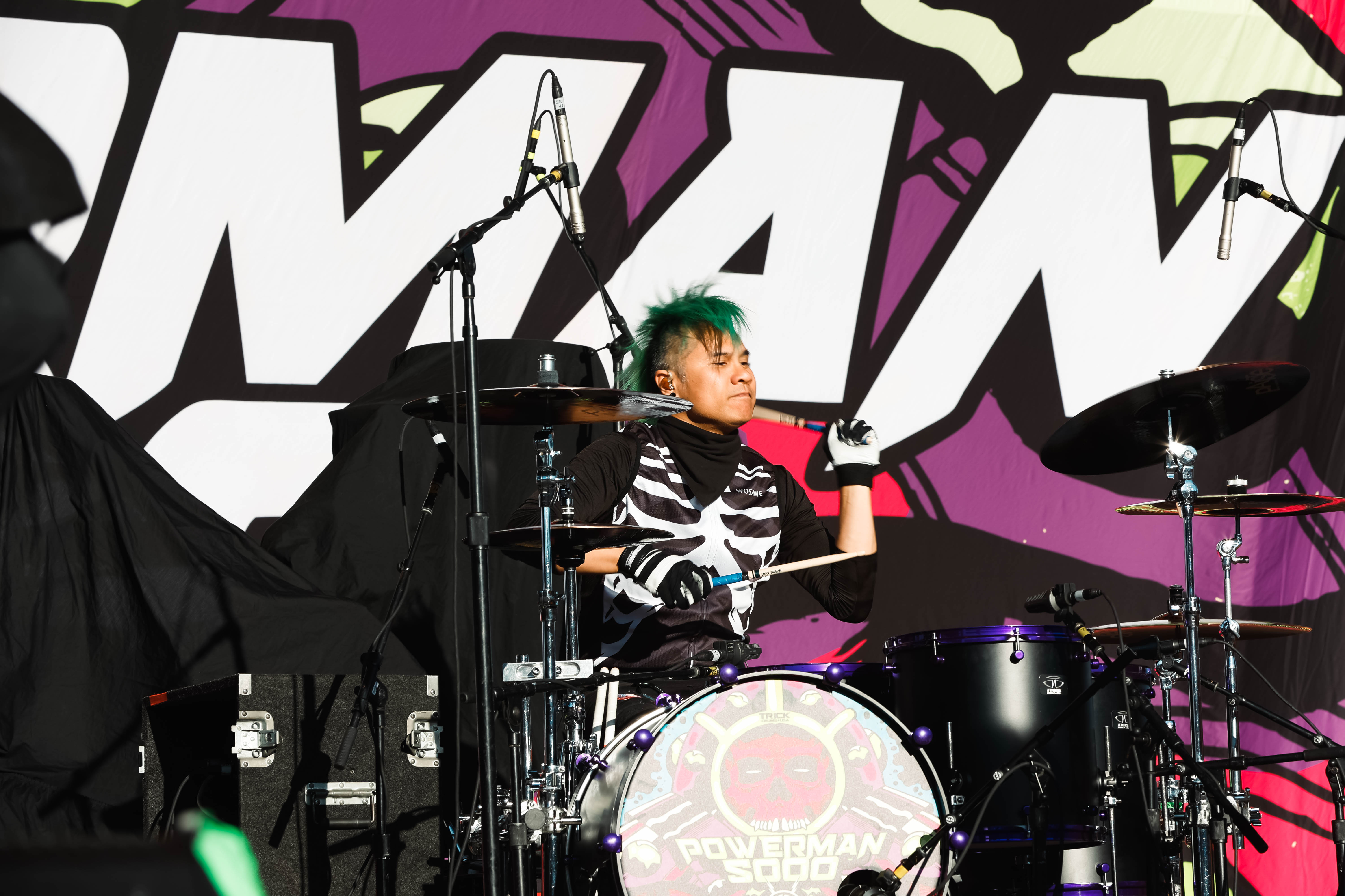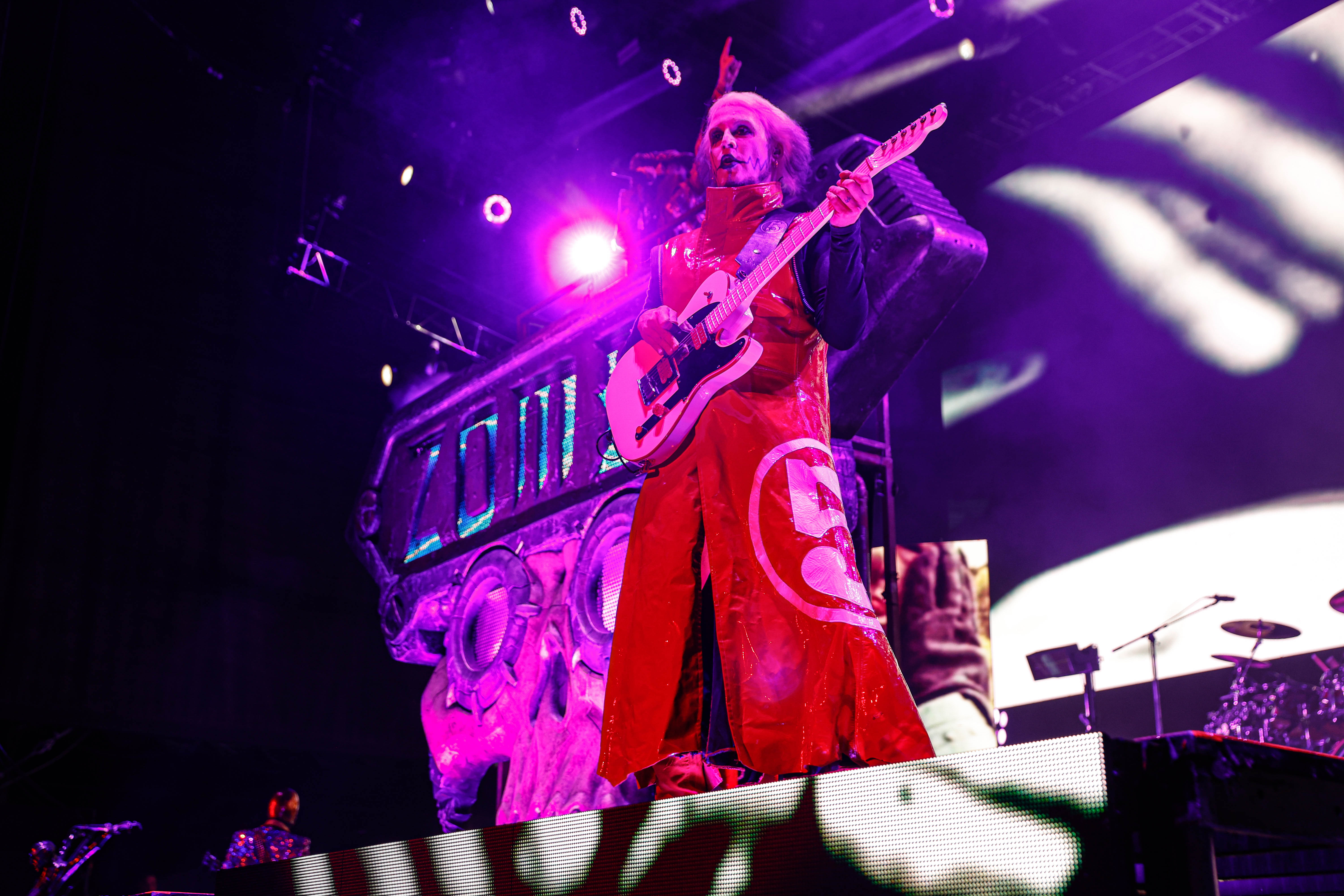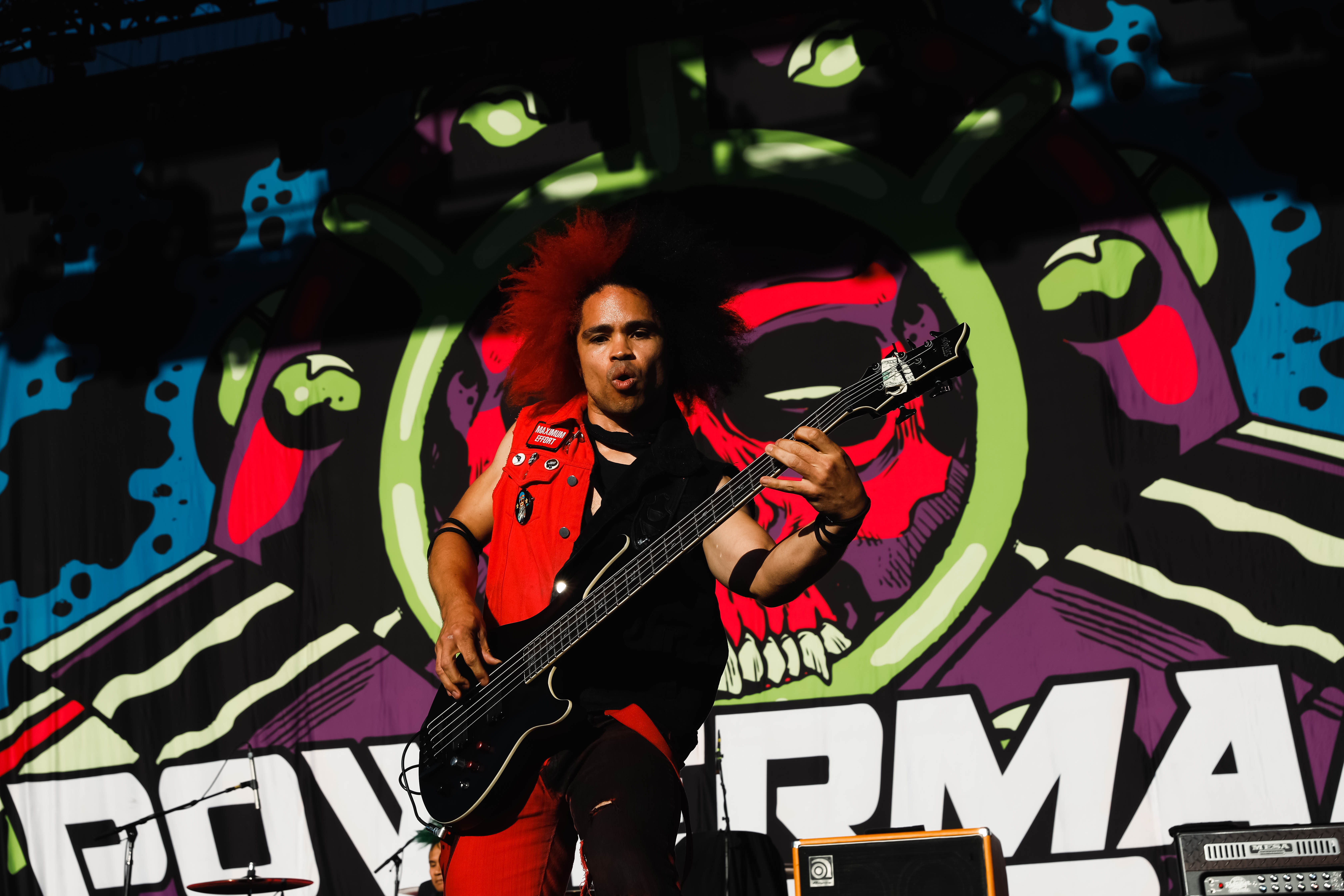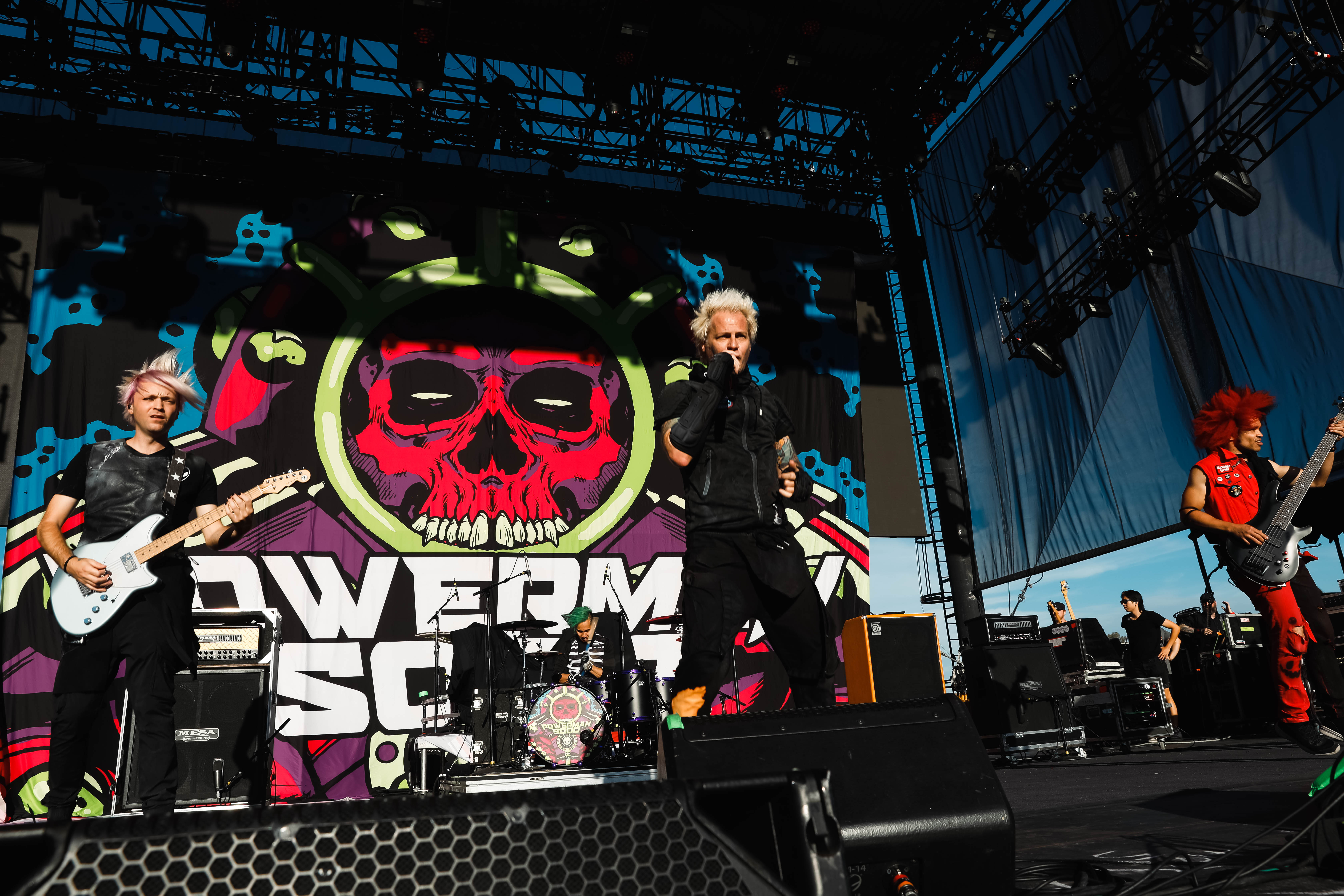 The Shock-Rock/ Hard-Rock tour of a lifetime came to the Five Point Amphitheater in Irvine, CA last night. The Freaks on Parade Tour features a headline set from Rob Zombie and performances from Mudvayne, Static-X, and Powerman 5000. This nearly 5 hour show began with Powerman 5000 led by Zombie’s younger brother Spider One, the only member of the group through each lineup since forming in 1991. The current band is lead vocalists Spider One, drummer DJ Rattan, bassist Murv3, rhythm guitarist Taylor Haycraft, and lead guitarist Dan Schiz. Their electrifying set of eight songs included “Bombshell,” “Supernova Goes Pop,” “When Worlds Collide,” and a cover of The White Stripes “Seven Nation Army.”
