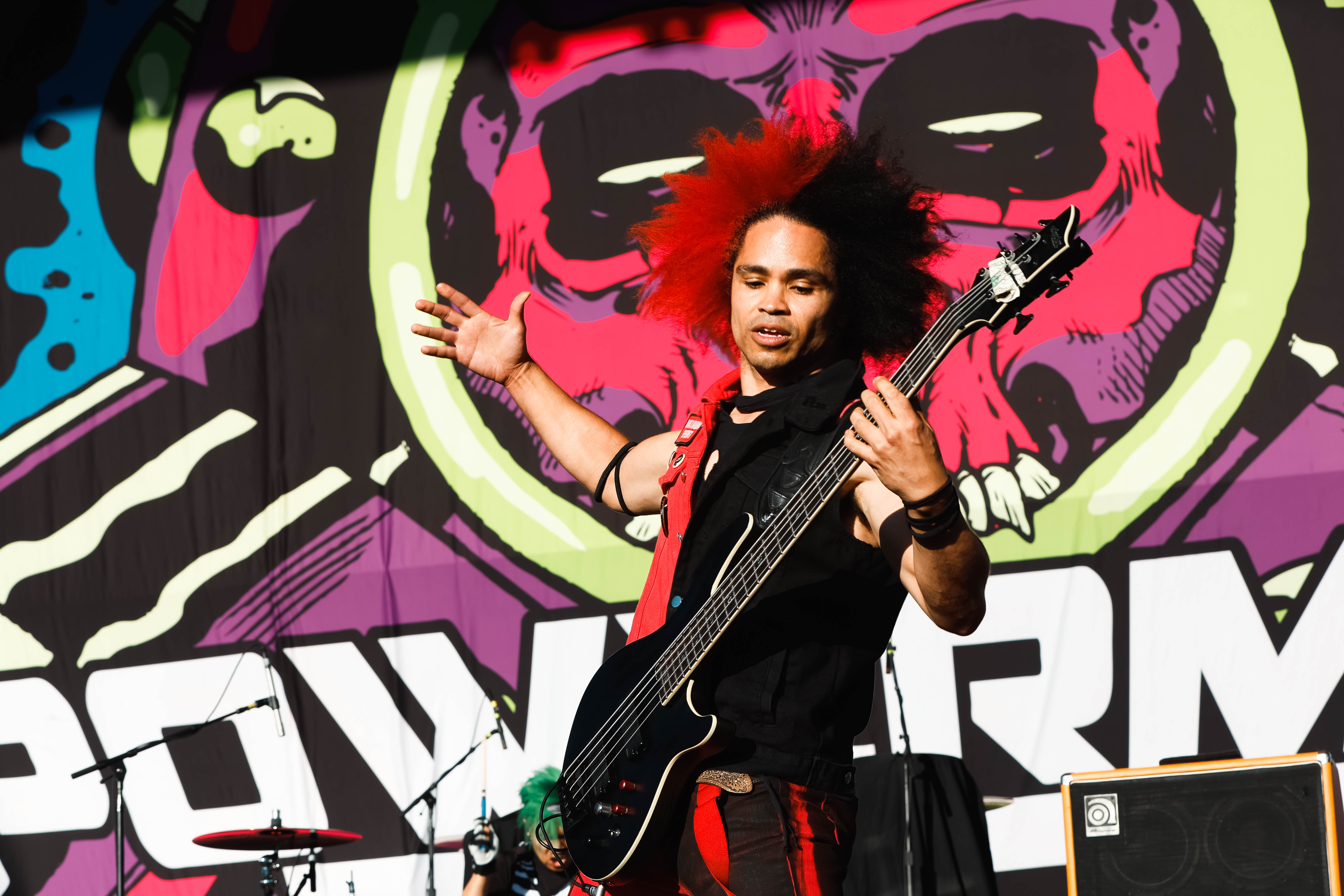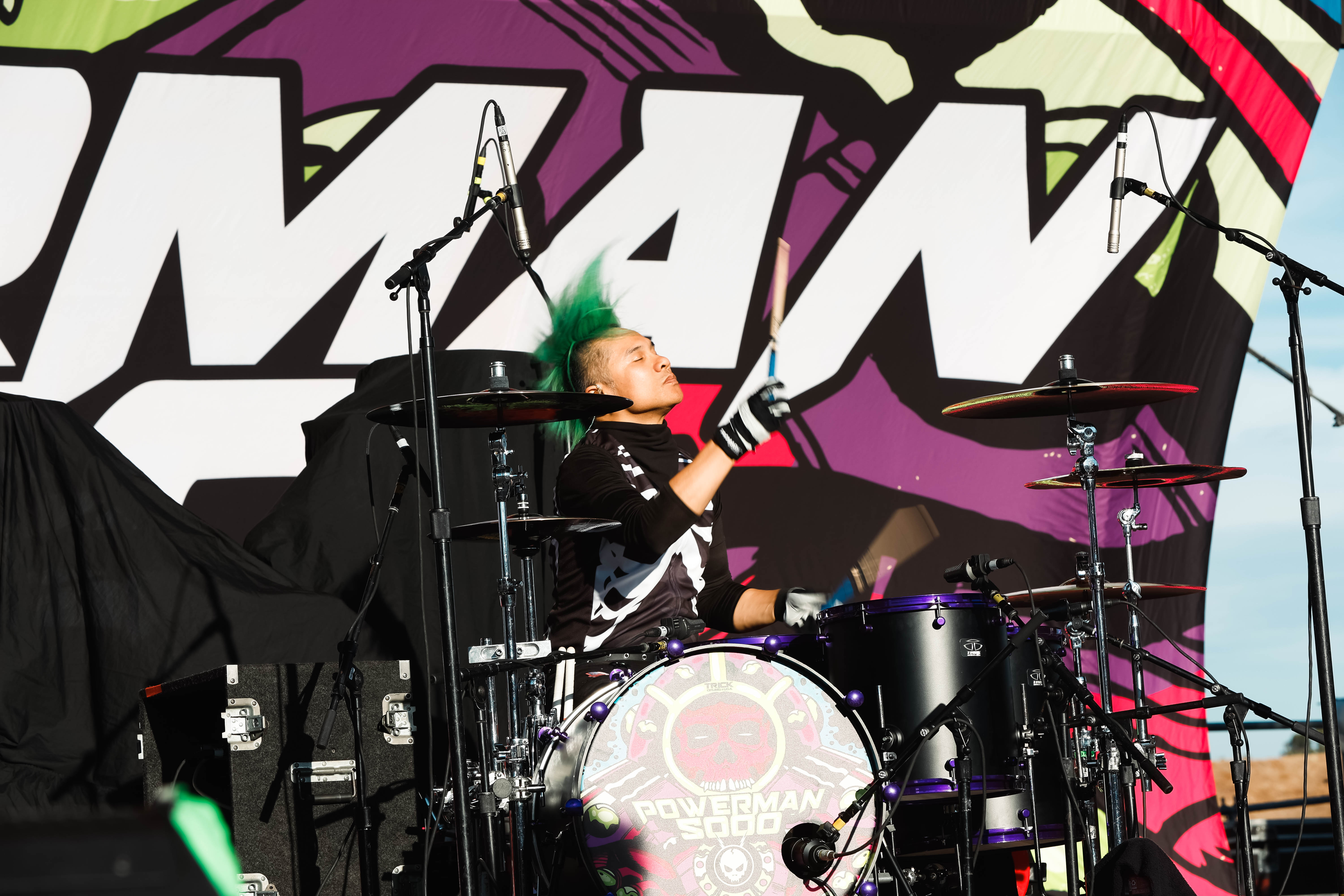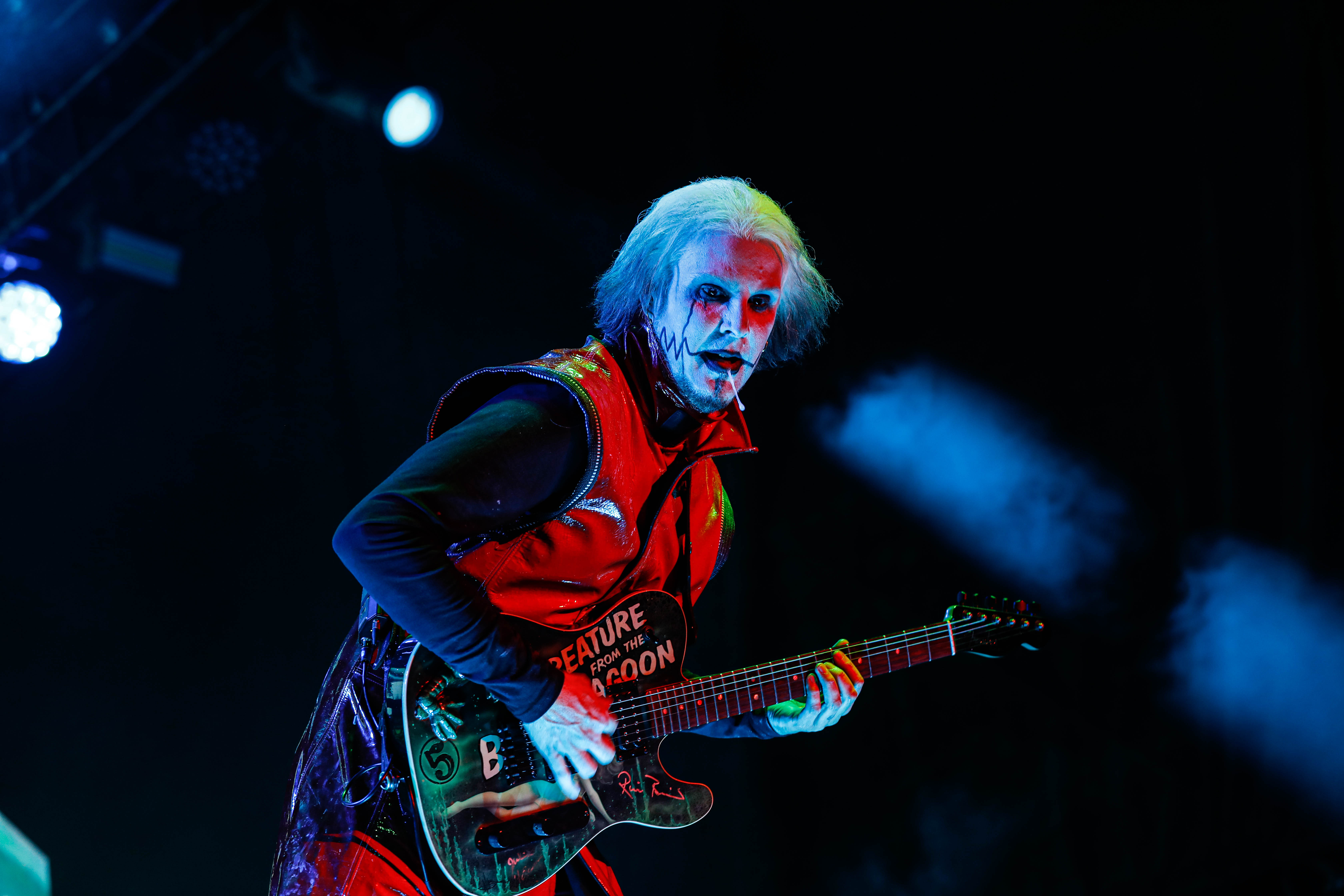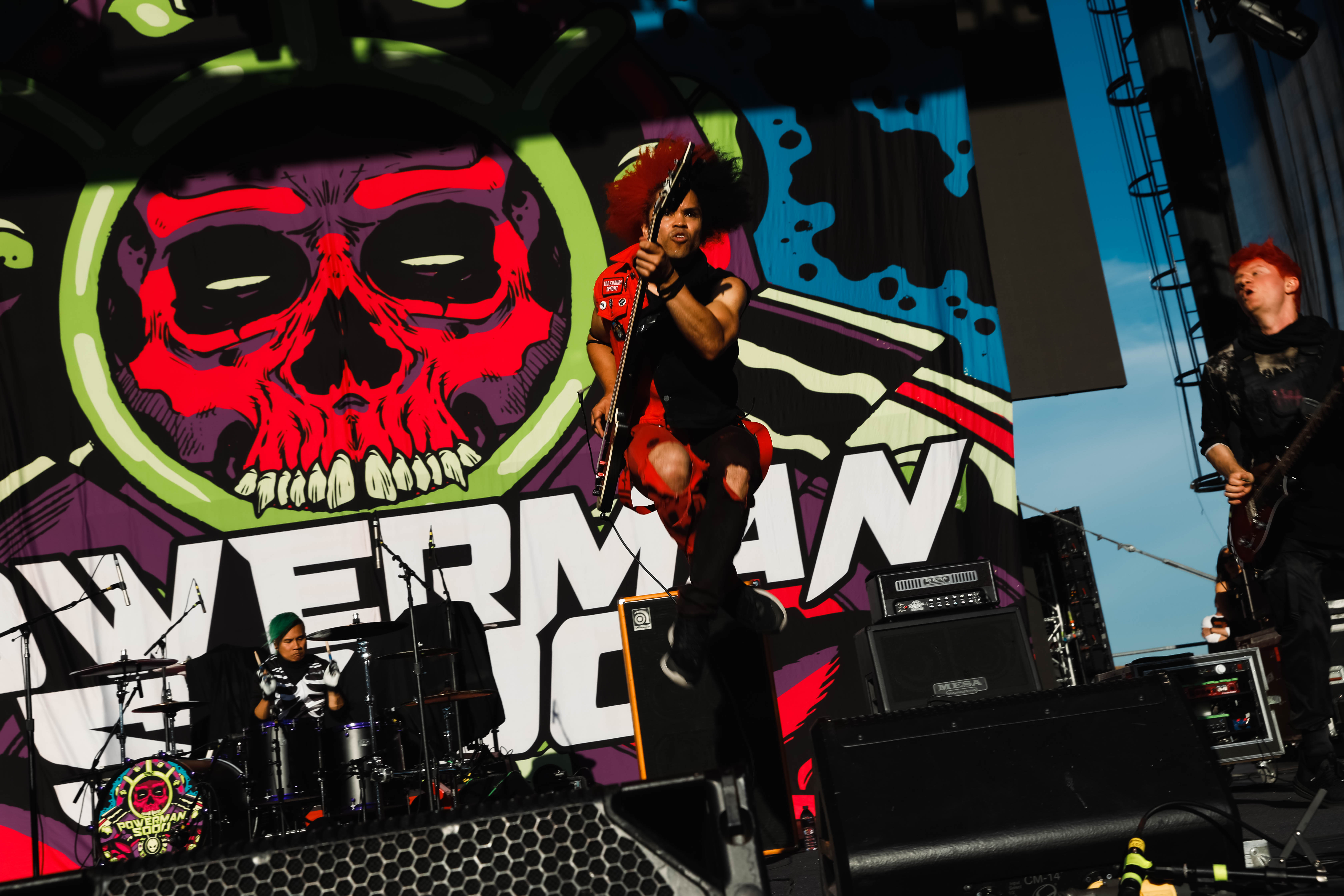 The Shock-Rock/ Hard-Rock tour of a lifetime came to the Five Point Amphitheater in Irvine, CA last night. The Freaks on Parade Tour features a headline set from Rob Zombie and performances from Mudvayne, Static-X, and Powerman 5000. This nearly 5 hour show began with Powerman 5000 led by Zombie’s younger brother Spider One, the only member of the group through each lineup since forming in 1991. The current band is lead vocalists Spider One, drummer DJ Rattan, bassist Murv3, rhythm guitarist Taylor Haycraft, and lead guitarist Dan Schiz. Their electrifying set of eight songs included “Bombshell,” “Supernova Goes Pop,” “When Worlds Collide,” and a cover of The White Stripes “Seven Nation Army.”