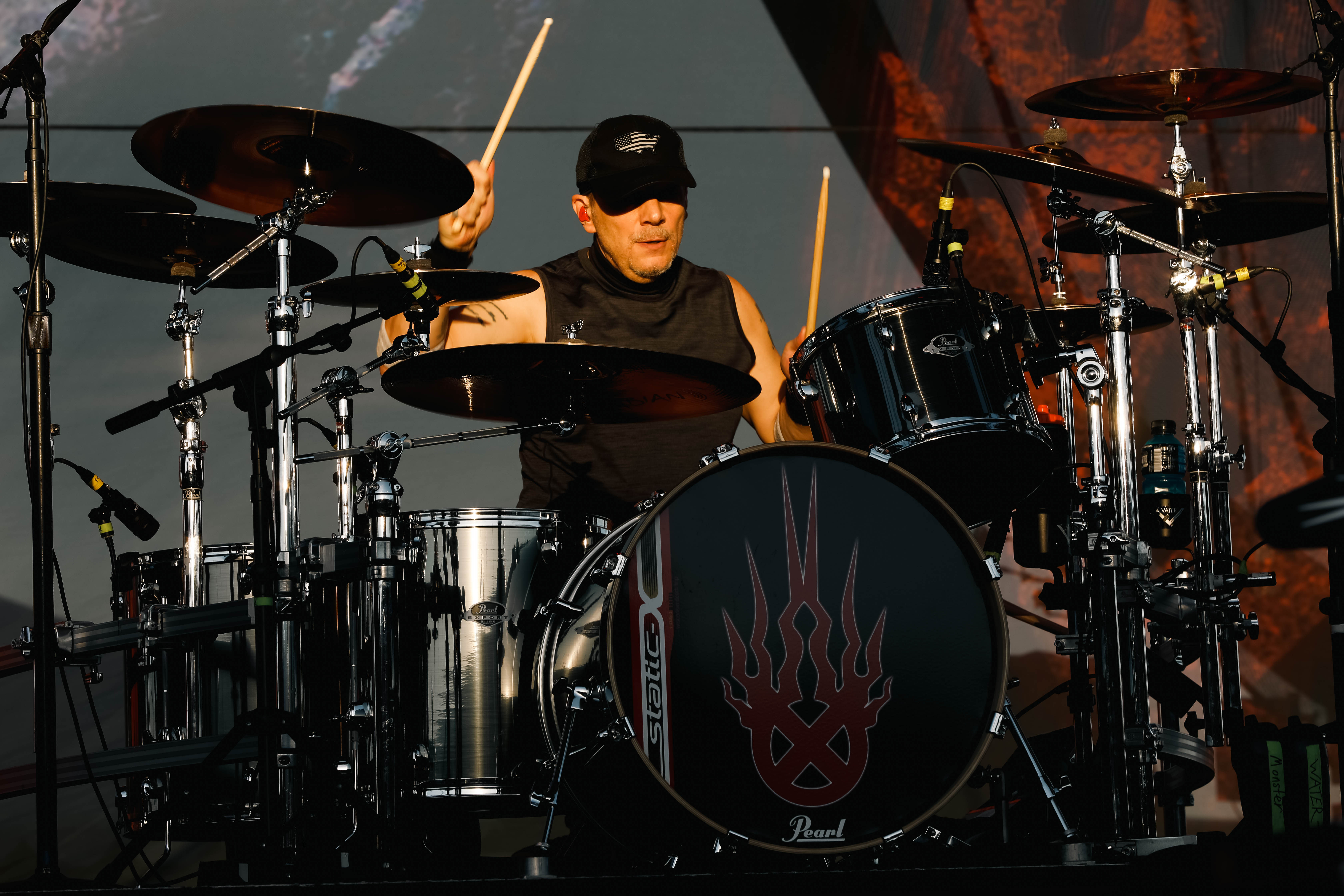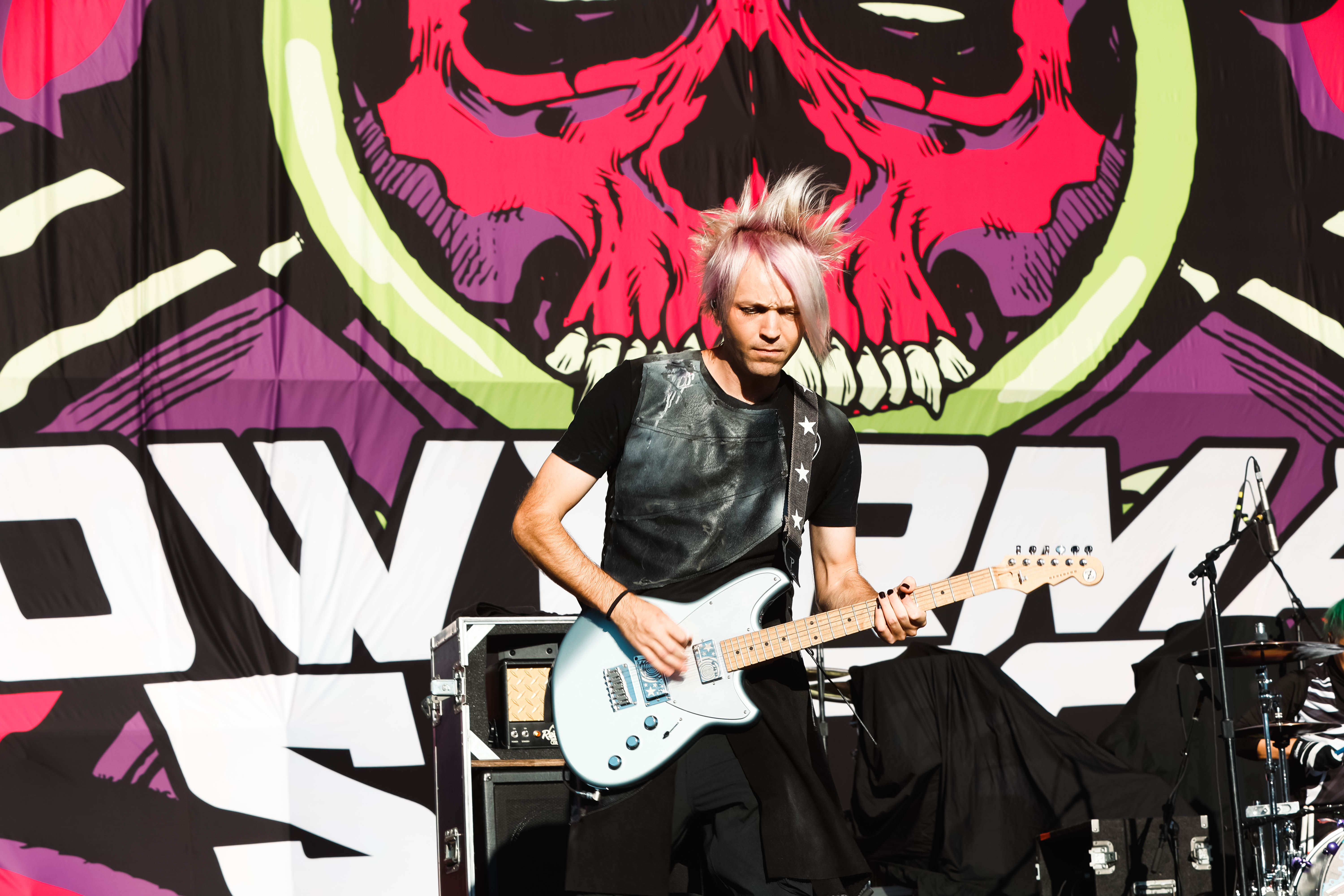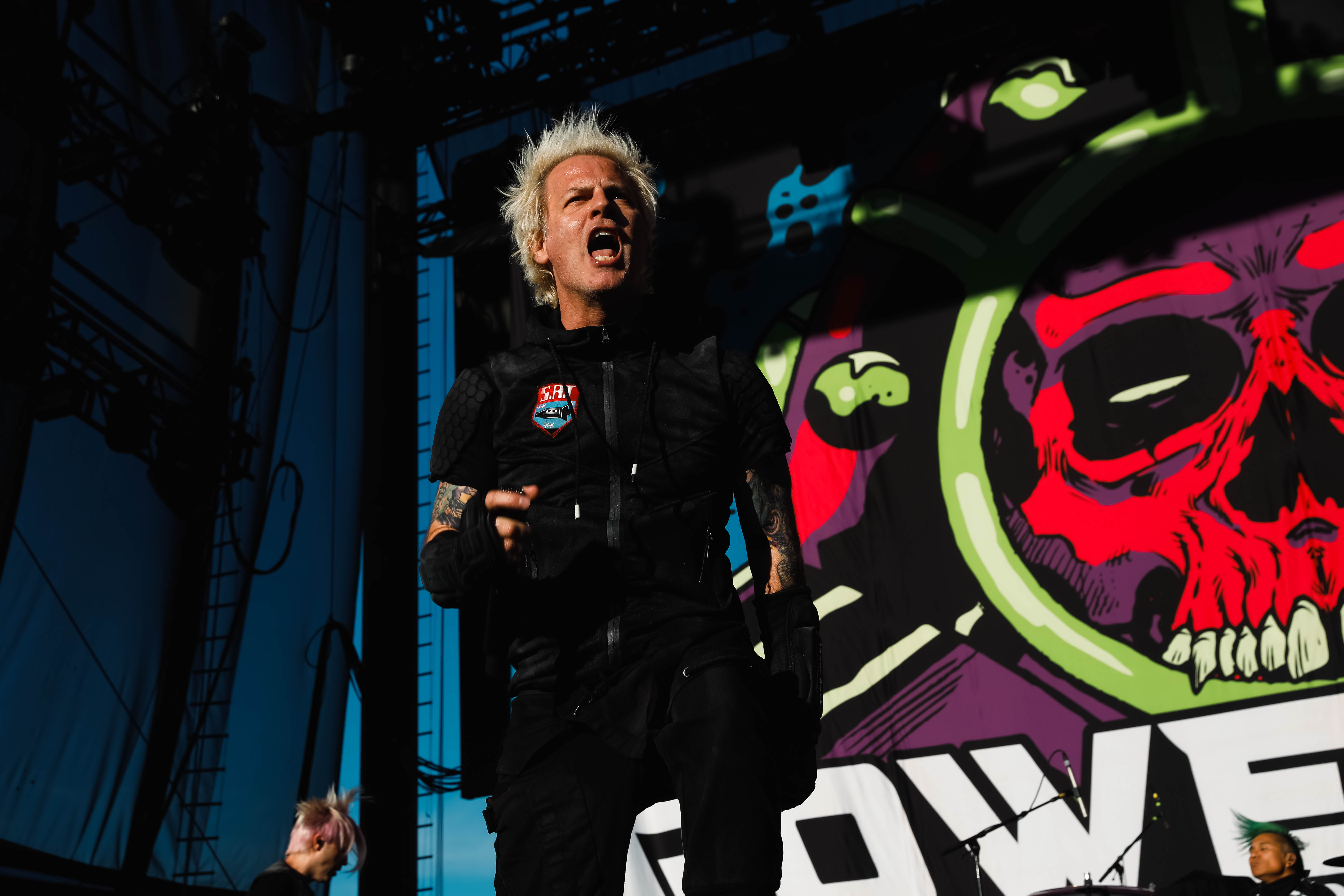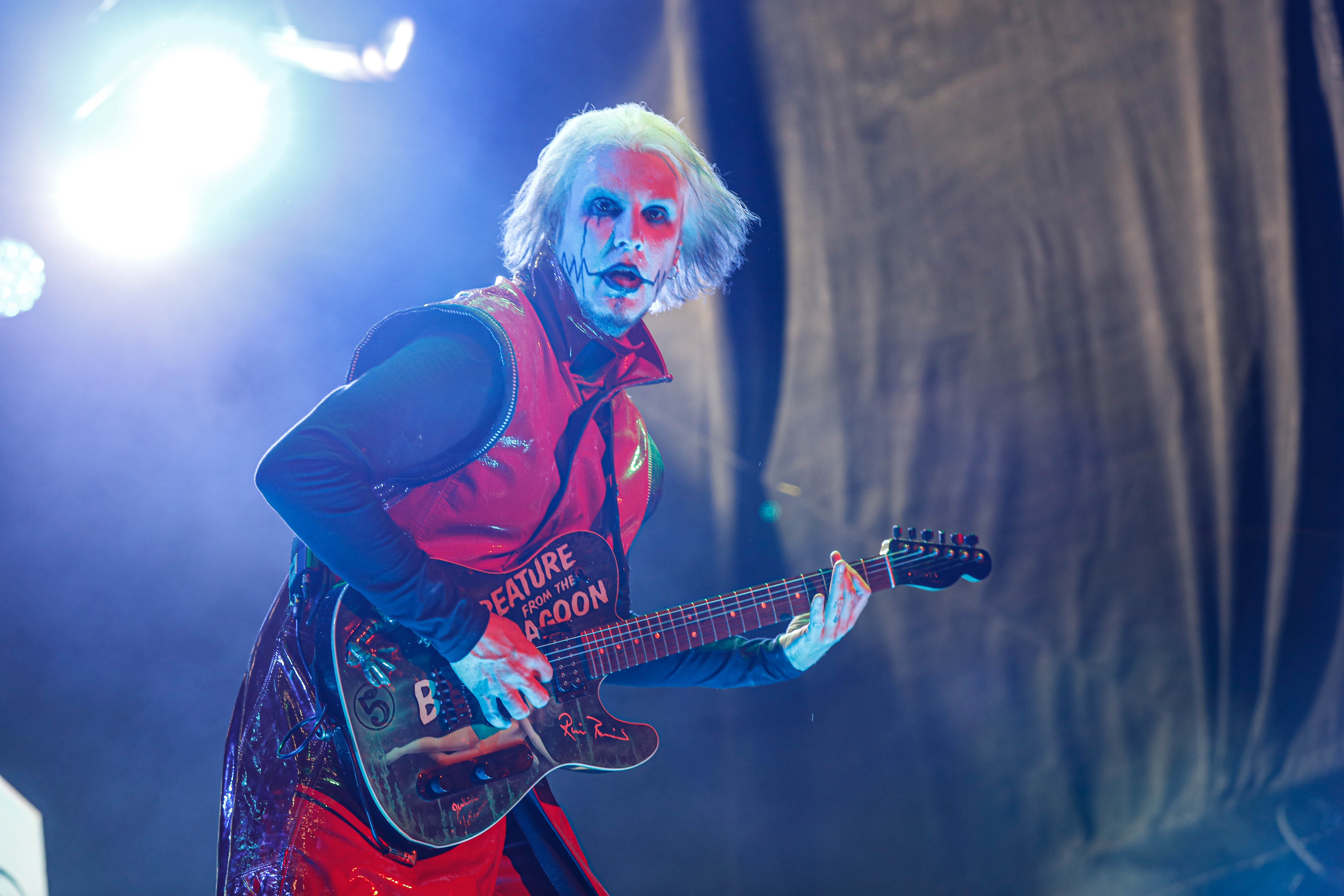 The Shock-Rock/ Hard-Rock tour of a lifetime came to the Five Point Amphitheater in Irvine, CA last night. The Freaks on Parade Tour features a headline set from Rob Zombie and performances from Mudvayne, Static-X, and Powerman 5000. This nearly 5 hour show began with Powerman 5000 led by Zombie’s younger brother Spider One, the only member of the group through each lineup since forming in 1991. The current band is lead vocalists Spider One, drummer DJ Rattan, bassist Murv3, rhythm guitarist Taylor Haycraft, and lead guitarist Dan Schiz. Their electrifying set of eight songs included “Bombshell,” “Supernova Goes Pop,” “When Worlds Collide,” and a cover of The White Stripes “Seven Nation Army.”
